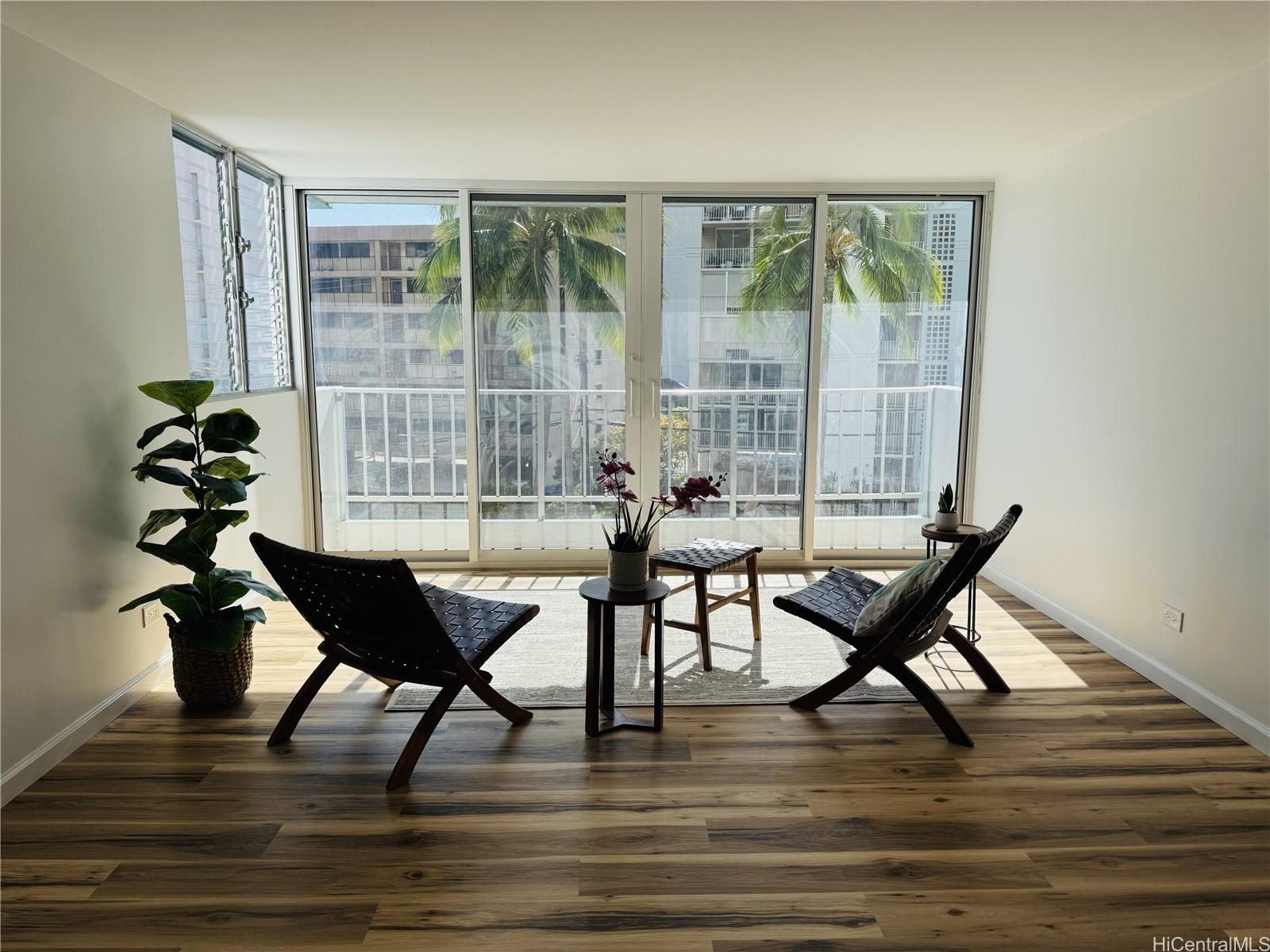 Experience elevated living in this stunningly renovated 2-bedroom, 2-bathroom corner end unit. No detail was spared in this “down-to-the-studs” style refresh, featuring brand-new cabinetry, fixtures, flooring, and appliances. With a fresh ceiling, crisp interior paint, and two dedicated parking spaces, this posh residence is truly move-in ready.Makiki Manor is a secure, well-maintained building that recently underwent its own upgrades, including a fresh exterior and new vertical drain lines. Enjoy premium amenities like a sparkling pool, on-site management, and a secured lobby—all just minutes from freeway access, top-tier schools, and the vibrant dining scene of Honolulu.