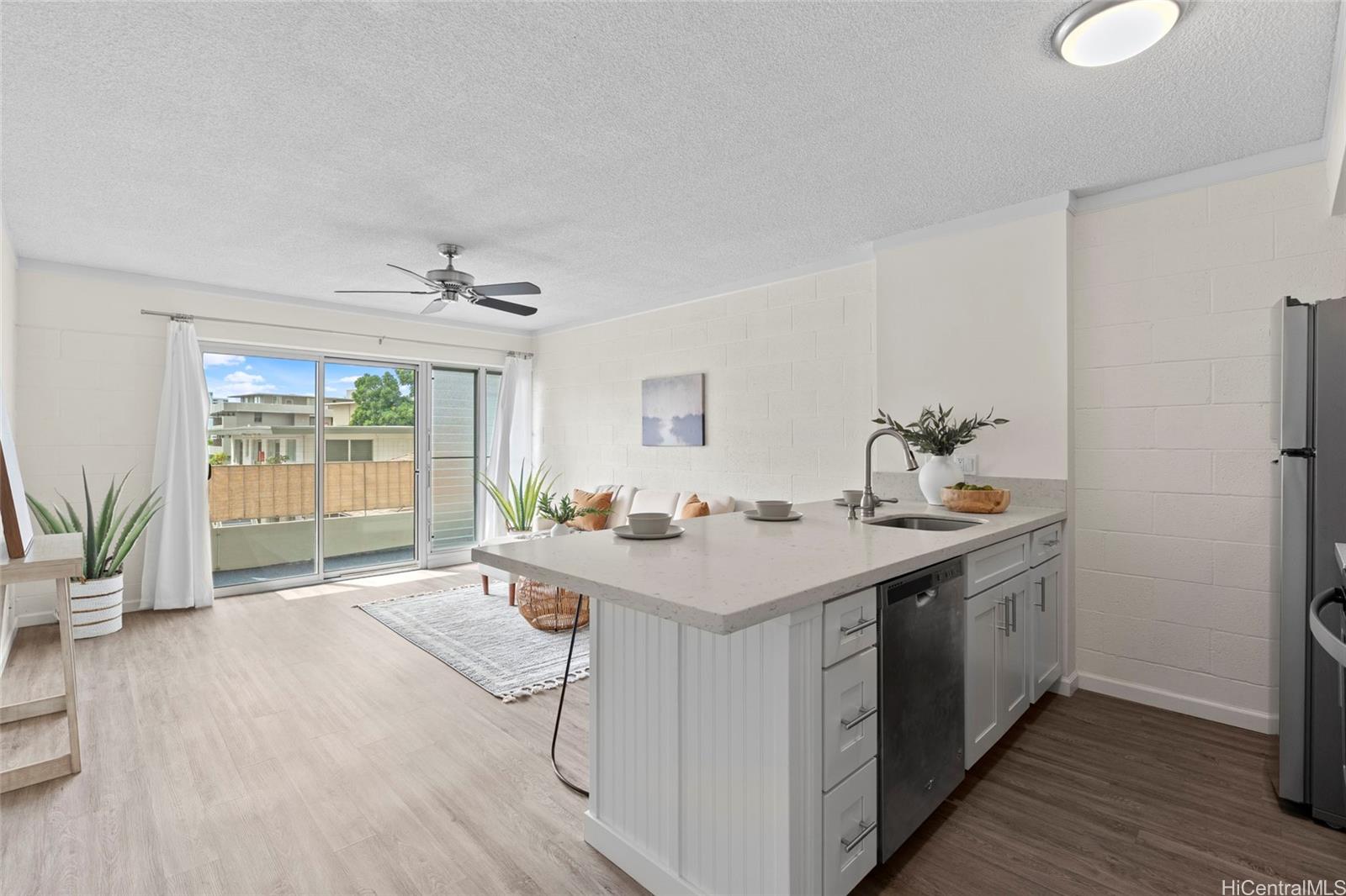 Welcome home to this well maintained, beautifully renovated unit in the heart of Makiki. This cute and convenient residence offers an open floor plan and modern finishes in the kitchen! Move-in ready and ideally located near schools, bus routes, and easy freeway access! Maintenance will increase to $462.19/month in July 2026.