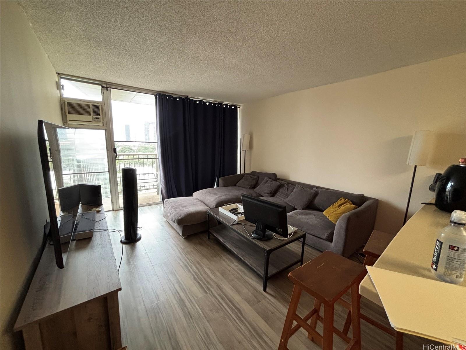 A RARE listing in a prime location at Makini at Kinau in the center of the town area on Kinau Street. Wood laminate and ceramic tile flooring, coin operated community laundry on the same floor, window a/c units in bedroom & living room. Higher floor with ocean view. Close to shopping, banks, restaurants, freeway access and much more. Pool on property with a pool-side cabana. A/C reimbursement fee of $123/month for (2) A/Cs.