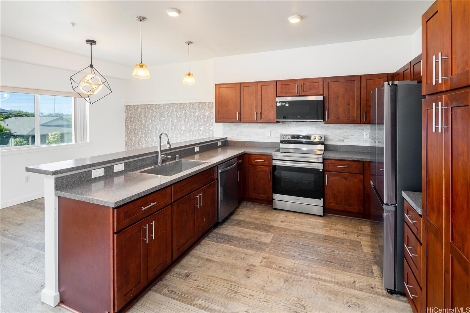 Just listed! First open house this Sunday, March 8th from 2:00 to 5:00 PM. This FLEX unit in the coveted Mehana neighborhood of Kapolei features two separate units AND two separate garage bays with 3 covered parking spaces in total which give you the flexibility to either run your business out of this space like many neighboring owners do, or rent out the space for extra income! The property is located just 5 minutes from Kapolei Commons which features great shopping and entertainment options with stores like Target, Home Depot and Costco and Regal Theater along with dozens of dining options and other stores. The property is also located within walking distance to both Ho’okele Elementary and Kapolei High School. This is the only FLEX unit currently available with the desirable ‘Aka’aka floor plan that features two separate garages and offers so much flexibility! The entire property has been freshly painted and features new stainless steel appliances, updated fixtures and new stone backsplash.