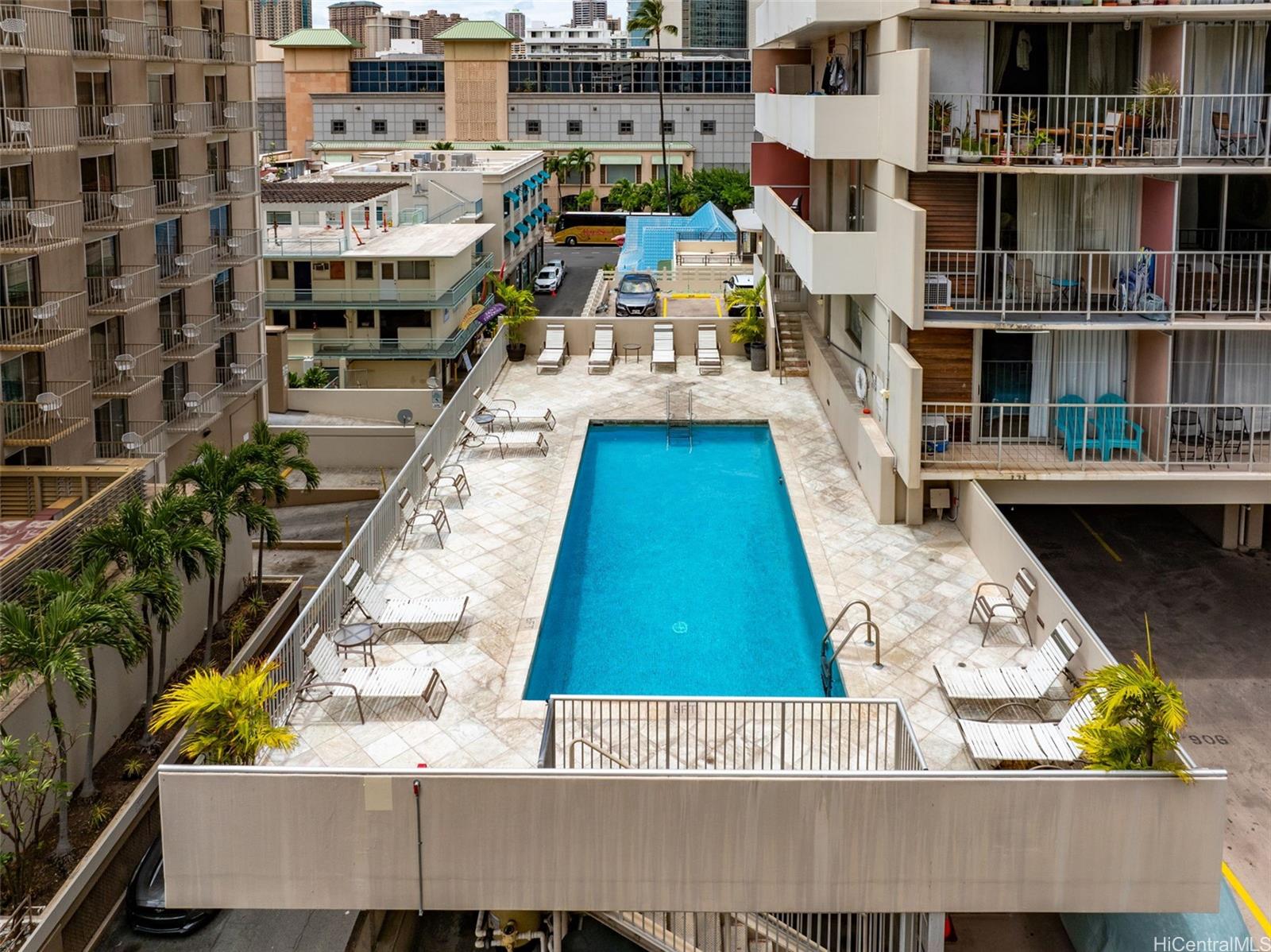 この合法的な短期賃貸物件は、驚くほどお手頃な価格です。 ワイキキの中心という絶好のロケーションにある、すぐに営業開始できる物件です。 この物件は、世界有数のロケーションで休暇の雰囲気を満喫したい方にとってまさに宝物のような存在です。有名なワイキキビーチや多彩なショッピング体験、そして充実した設備がすべて徒歩圏内に揃っています。 改装されたこのスタイリッシュでモダンなワンルームは、居心地が良く、多目的に使える間取りとなっています。 キッチンは最近改装され、新しいキャビネットやカウンタートップに加え、ゴールド柄のバックスプラッシュがエレガントな雰囲気を醸し出しており、特に目を引きます。 ゆったりとした広さのラナイで、リラックスして周囲の景色をお楽しみください。 この住戸には、専用駐車場、各階に設置された共用ランドリー、および屋内プールが備わっています。 .