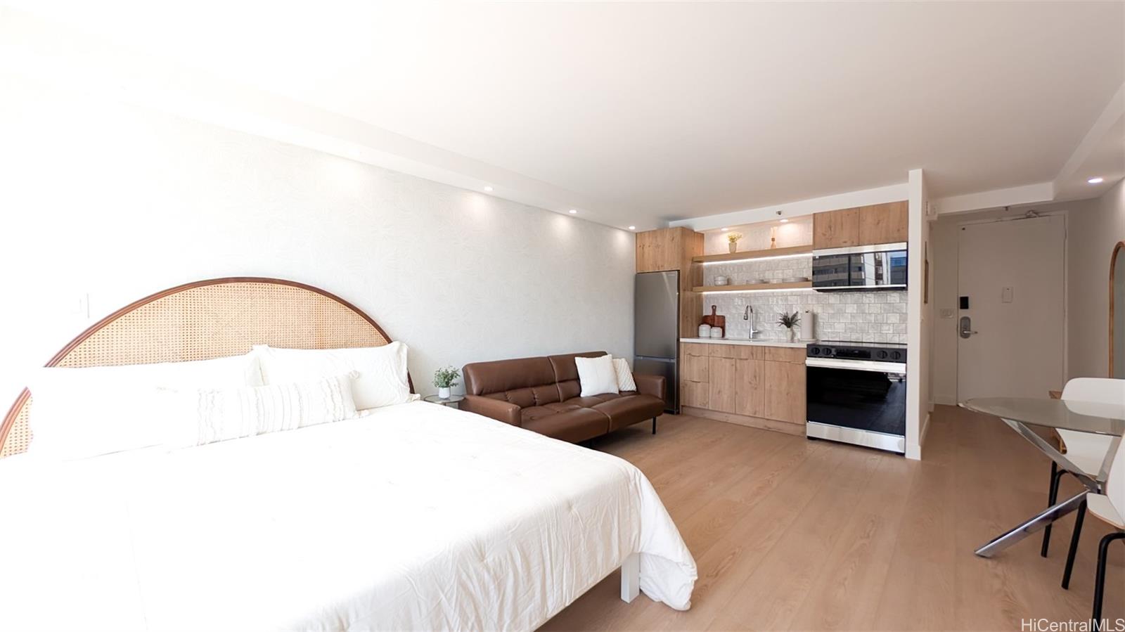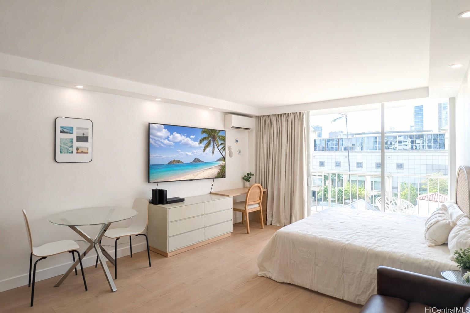 Brand new remodeled studio unit at Marine Surf Waikiki. This unit features a new bathroom, kitchen, flooring, appliances, split AC, and furniture. The unit is located on the quieter side of the building. The building includes a swimming pool, 24-hour security, a laundry room, and a trash chute on each floor. The total monthly fees are $892, covering electricity, cable, internet, hot water, water, sewer, and common expenses. This property offers the ideal blend of a personal vacation retreat and a rental investment opportunity