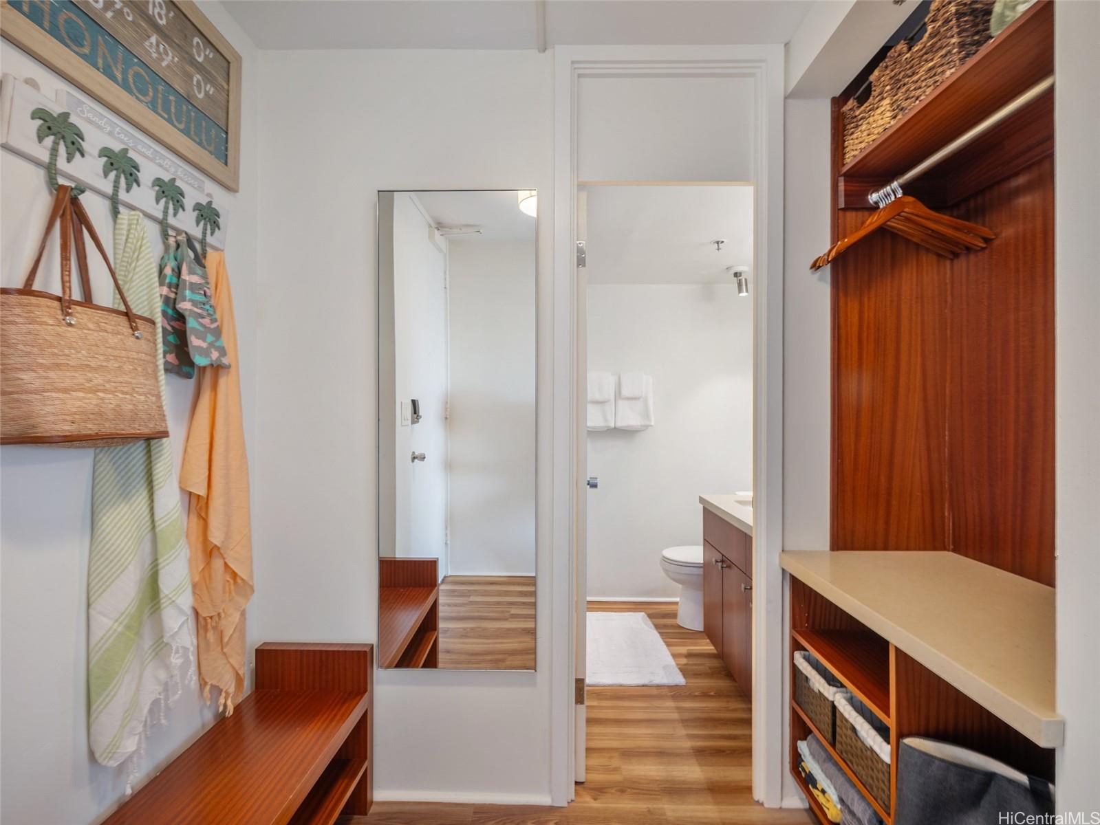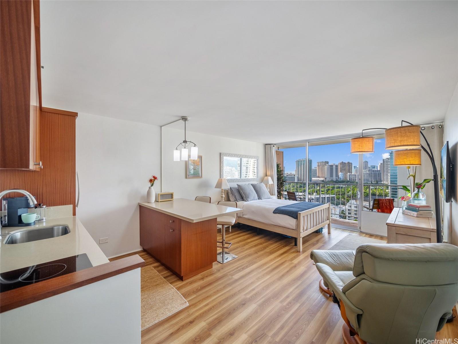 High-Floor Studio with Ocean & City Views | Legal Short-Term Rental in WaikikiHigh-floor, fee simple studio at Marine Surf Waikiki offering a rare opportunity for legal short-term rental ownership in the heart of Waikiki. This chic unit features ocean & city views, a custom cherry wood kitchen, luxury vinyl flooring, and a covered lanai with cooling trade winds.The unit has been actively operated as a short-term rental, possible to convey existing reservations. Maintenance fees include electricity, water, sewer, and hot water, creating a streamlined ownership experience.Building amenities include a swimming pool, covered and deeded parking, storage lockers, and secure surfboard storage conveniently located on the same level as parking.Prime location one block from the beach, surf spots, the International Market Place, with dining, shopping, Starbucks, and Target nearby. Just minutes to Waikiki Beach, world-class resorts, and entertainment. Ideal as a lock-and-leave surf residence or flexible investment property you can rent it while away.Please visit us at our Open House Sunday 1/25 from 2 to 4 pm.