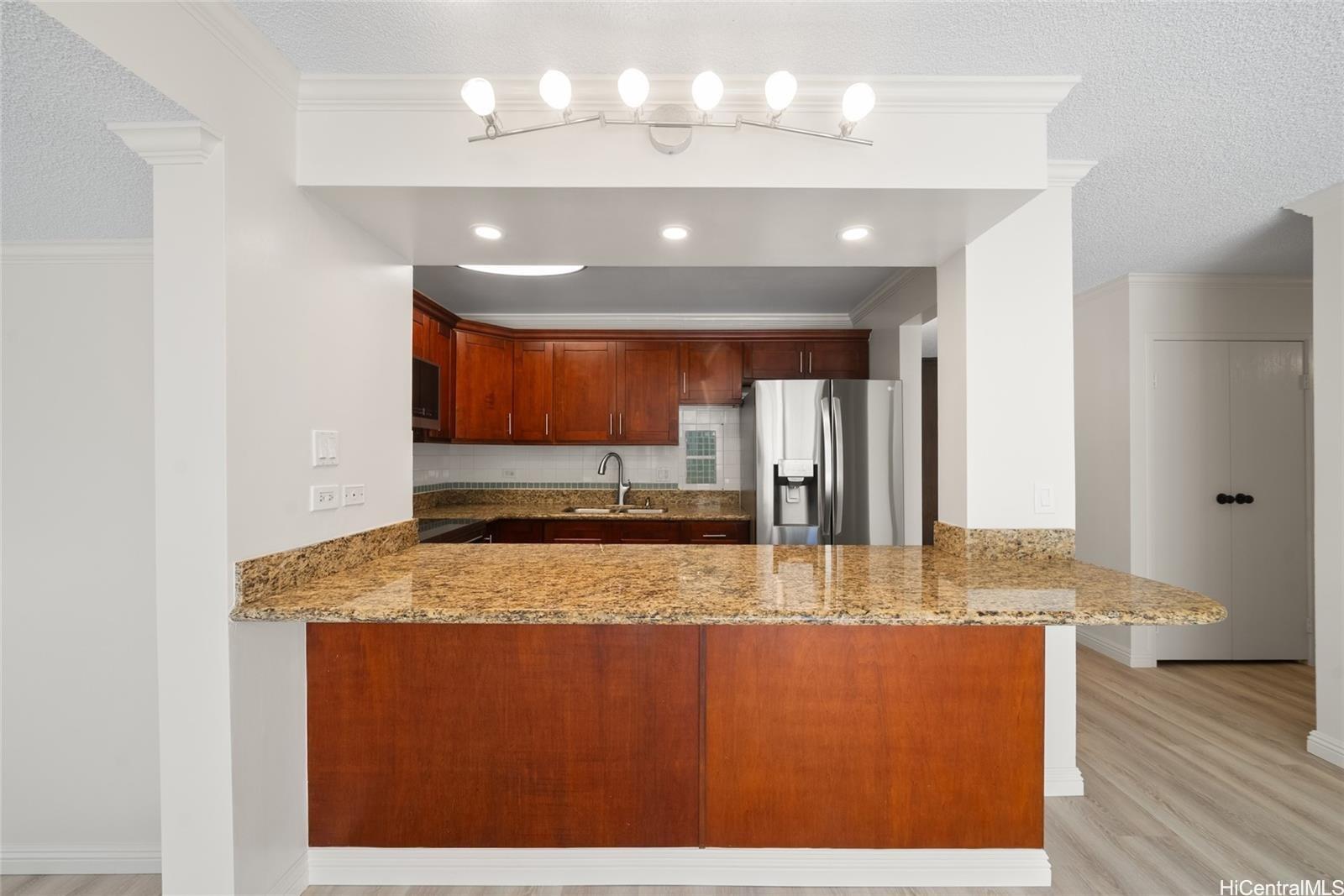 Upgraded 2nd floor corner unit with spacious interior and two parking stalls. Tree top views, overlooking the tropical garden with soothing water sounds nearby. Enjoy the property’s two impressive resort-style amenity pools, multiple jacuzzis, sauna, gym, BBQ areas and even a putting green. Wonderful gathering place for resident and their guests. Conveniently located in the Hawaii Kai neighborhood close to shopping, dining and entertainment.