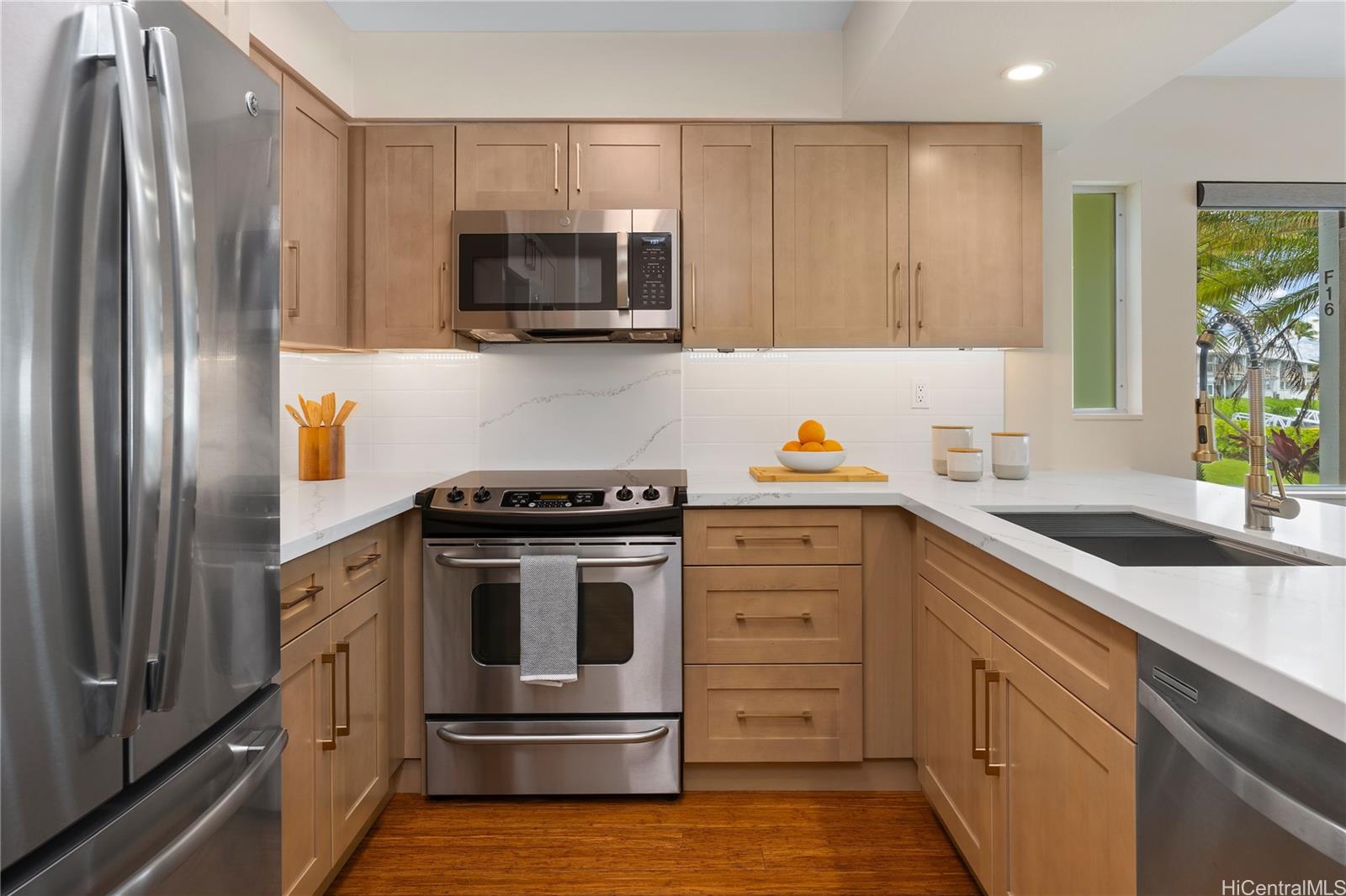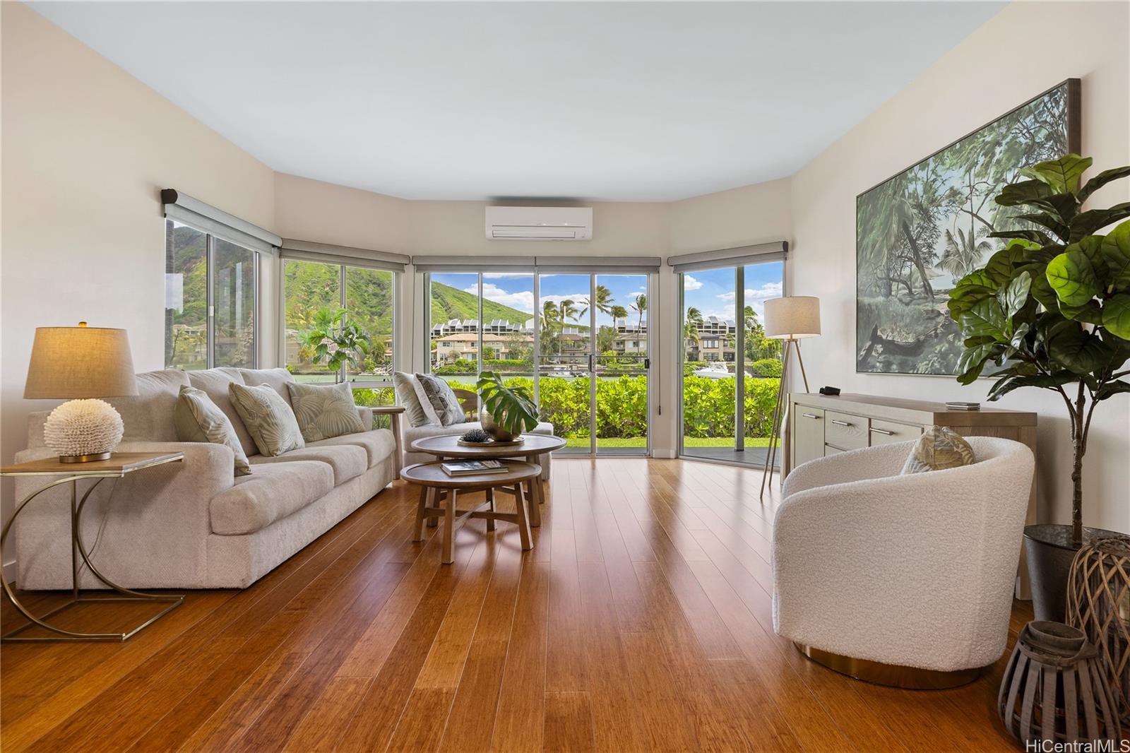 Experience the best of Hawaii Kai waterfront living in this marina-front end-unit residence in the gated community of Mawaena Kai. This spacious 3-bedroom, 2-bath ground-floor townhome offers single-level living with comfort, privacy, and effortless island style. Recently remodeled, the home features a brand-new kitchen, added wet bar, dedicated laundry area, and a redesigned primary bathroom. Additional upgrades include new solar shades, sound barrier ceiling, a tiled lanai, and a private boat dock. The open floor plan is filled with natural light, creating a bright and inviting space. Enjoy seamless indoor-outdoor living with a private lanai overlooking marina views, with an enclosed back patio for pets. The primary suite captures beautiful Koko Head and marina views. Mawaena Kai offers gated access, tropical landscaping, and direct marina access for boating and paddle boarding. Conveniently located near shopping, dining, beaches, and hiking trails. Live the marina lifestyle at its finest.