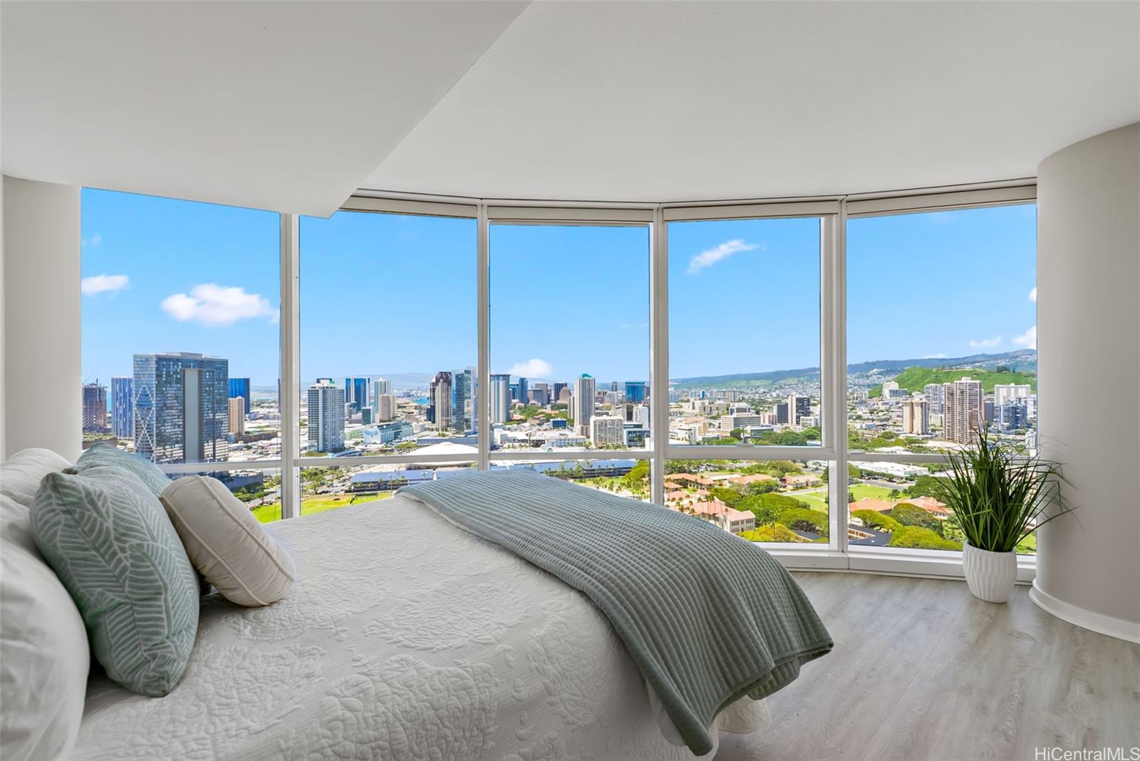 立地!立地!立地!ホノルルの街並みを一望できる角部屋です。 本製品には特大サイズの収納ユニットが付属しています。 高速道路やホノルルのダウンタウン、アラモアナ・ショッピングセ ...