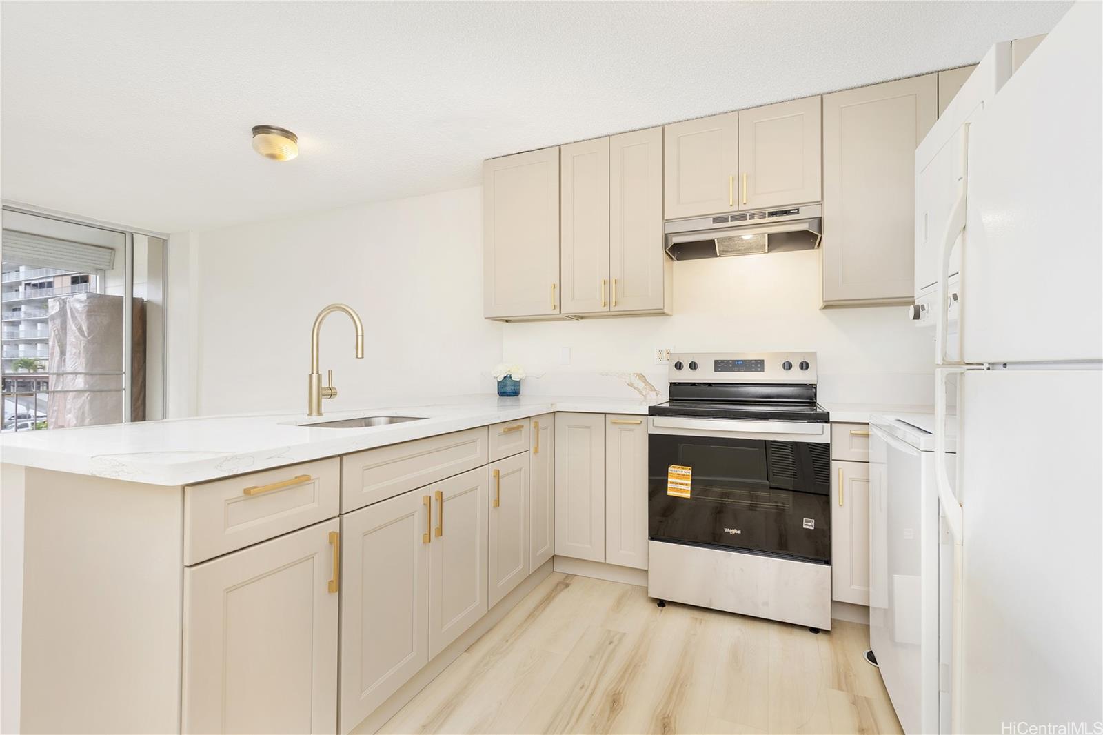 Welcome home to this brand new fully renovated spacious corner unit at Mokulani Apartments, ideally located in a quiet part of Makiki. Unit 201 offers excellent natural light and refreshing cross-breezes, creating a bright and comfortable living space, and a large usable 85 sqft outdoor lanai with hurricane shutters. The full remodel includes new laminate flooring, quartz countertops, wood shaker cabinets, gold fixtures, and a brand new range oven. Enjoy the convenience of a central Honolulu location near Ala Moana, Waikiki, UH Manoa, shopping, dining, and easy freeway access. Mokulani Apartments is a well-established, secure building with on-site management, gated resident parking, and a swimming pool with bbq areas. Perfect for owner-occupants or investors seeking a prime urban location with strong rental appeal. Don’t miss this opportunity to own in one of Honolulu’s most convenient neighborhoods at an affordable price!