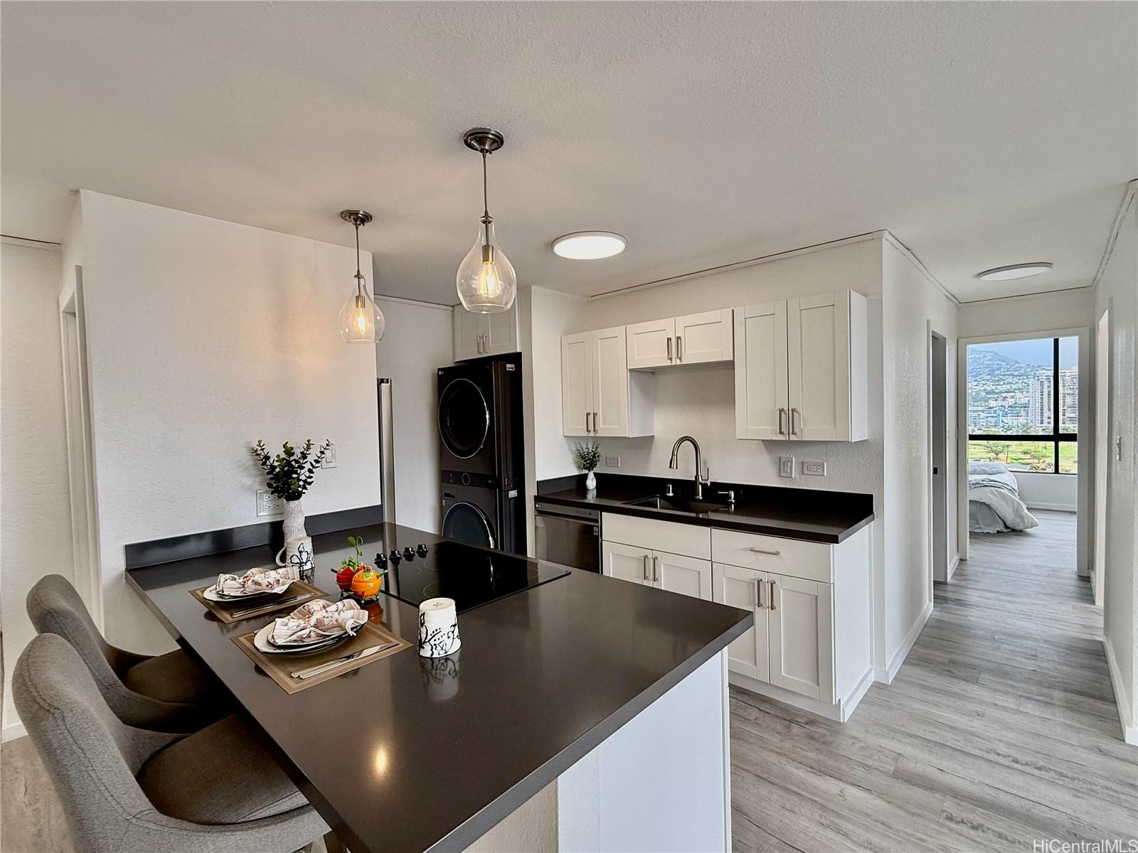 モダンで改装済みの1ベッドルーム、すぐに入居可能。開放的なラナイからはアラワイ運河を見渡せ、美しい山々の景色を楽しめます。 1台分の屋根付き駐車場(ロビー階)付き。 ワイキキ郊 ...