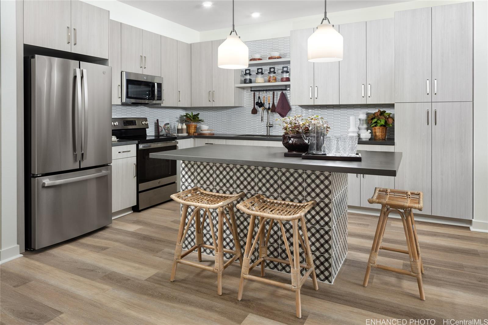 美しく改装された1ベッドルーム・1バスルームの住居。専用駐車場1台分、室内洗濯乾燥機、セントラルエアコン付き。 広々とした594平方フィートのこのユニットは、快適で機能的な間取りを提供し、建物のマウカ側(山側)に位置しています ...