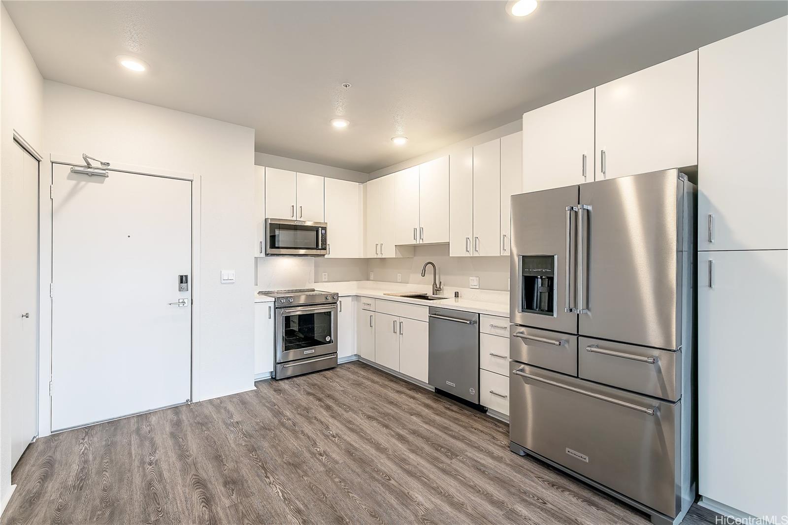 Don’t miss the opportunity for the first available Nahele unit on Ho’omohala Ave, an expansive tree lined street offering tranquil views with Diamond Head in the backdrop. Leisurely walk over to the Honouliuli Rail Station that’s only one block away with a route to destinations such as the Honolulu Airport or Ahua Lagoon Dr with direct express Bus lines to UH Manoa, Ala Moana, Waikiki and Downtown Honolulu. This desirable 4th-floor unit feels brand new with quartz kitchen counter tops, stainless steel appliances, luxury vinyl plank flooring and full size front load washer & dryer. All around convenience with nearby elevator access, two parking stalls in front of the lobby and ample street parking. The growing master-planned community of Hoopili provides a dynamic lifestyle with nearby parks, SOHO community center & swimming pool, regular farmers markets & food truck festivals, future plans for schools and various commercial spaces that include local small businesses. With so much convenience and amenities to offer, Nahele at Hoopili is the perfect place to call home. **As of Jan 2026, Nahele is on the VA APPROVED list**