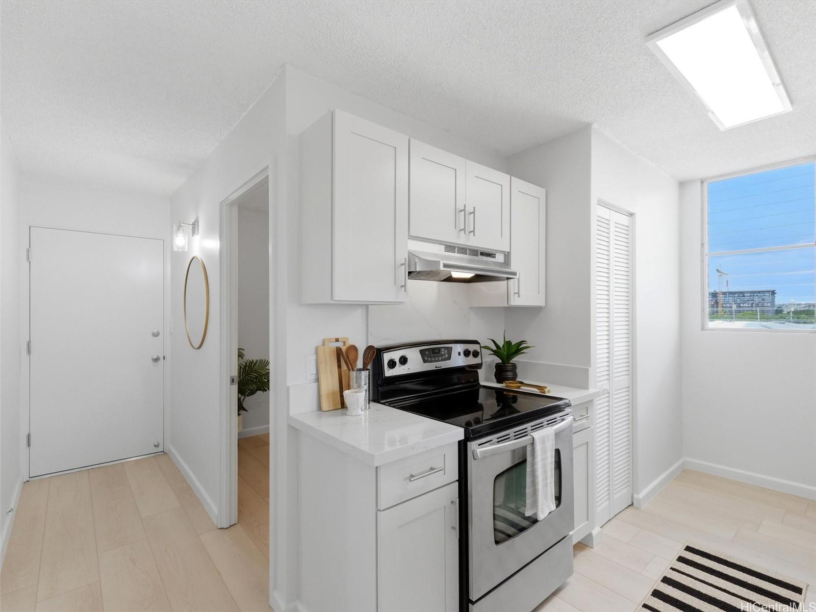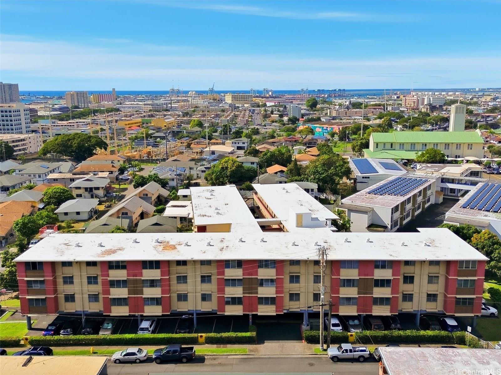 Exceptional opportunity to own a turnkey 3-bedroom city oasis for under $400k! Experience urban living in this rarely available, top-floor corner residence at Nalanui Hale in Liliha! Fully, meticulously remodeled in 2025, this stunning, move-in ready home features new luxury vinyl flooring, new contemporary kitchen and bathroom, fresh paint, new window screens and light fixtures, and many more upgrades throughout. Enjoy abundant natural light, cool mountain breezes, and sweeping views of the Honolulu skyline and vibrant sunsets. All-inclusive maintenance fees cover electricity, internet, cable, water, sewer and common maintenance, providing exceptional value. This unit features 1 assigned covered parking stall in a secured building equipped with fob access and video surveillance. Amenity highlights include additional storage, elevator, community laundry, car wash area, and trash chute. The prime location provides immediate freeway access and is steps from iconic Liliha Bakery, Kuakini Medical Center, Downtown Honolulu, Chinatown, schools, grocery stores, fire station, hospitals and healthcare clinics, restaurants, parks, churches and bus routes. Don’t wait! Schedule your tour now!