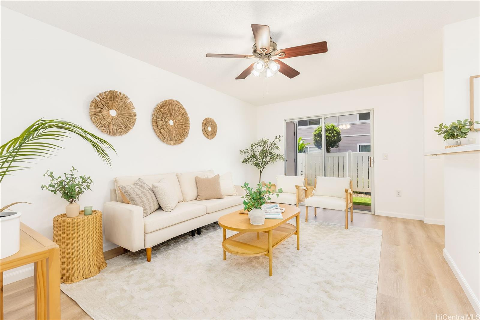 Welcome to Mililani Mauka living! The lowest-priced ground floor unit in the neighborhood! This single-level 2-bedroom, 2-bath home featuring brand new LVP flooring and fresh interior paint throughout, giving the space a clean, modern feel. Enjoy the convenience of two parking stalls, an in-unit washer and dryer, and a private outdoor lanai perfect for relaxing. The thoughtful layout and peaceful surroundings make this home a great fit for first-time buyers or anyone looking for a low-maintenance lifestyle in one of Central Oahu’s most desirable communities. Residents also enjoy access to all seven Mililani Town Association recreation centers. Come home, settle in, and enjoy the Mililani Mauka lifestyle. First open house on Sunday, 4/5 from 2:00 to 5:00 PM.