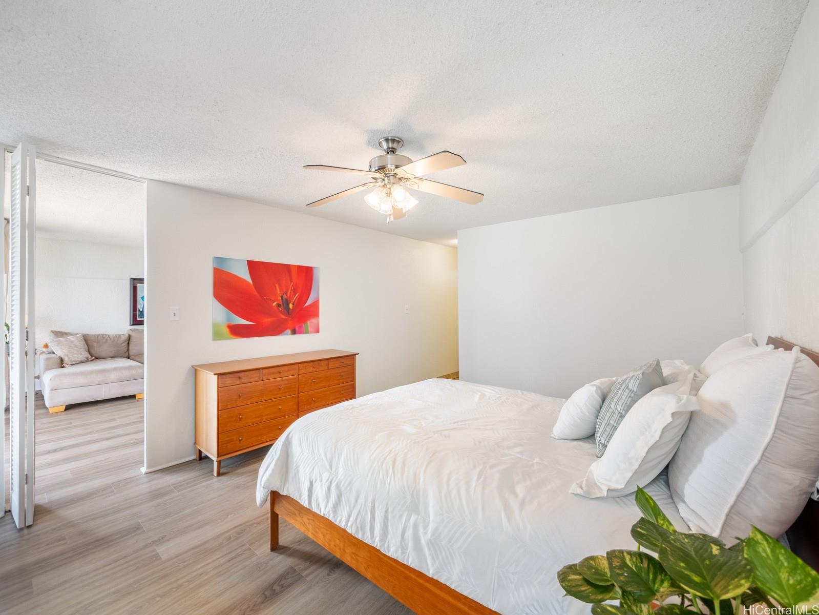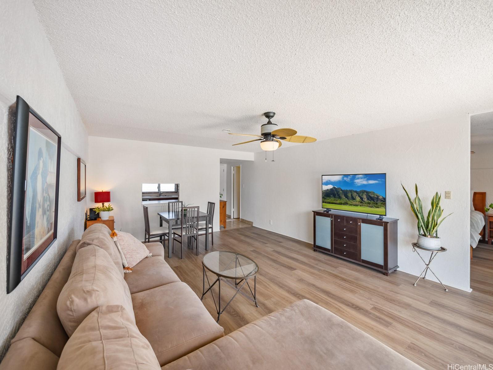 オデ・ランチョの広々とした1ベッドルーム・2バスルームユニット。山々の眺望と涼しい風を楽しめる広い屋根付きラナイ付き。 アップグレードには、新しいLVTフローリングと塗装の塗り直しが含まれます。 機能的な間取りで、ユニット内に洗濯機・乾燥機を設置。ゲート付き駐車場1台分付き。 プールと共同洗濯室付きのセキュリティ完備の建物。 アラモアナセンター、ショッピング、レストラン、ダウンタウン・ホノルルに便利な立地です。 最初のオープンハウスは3月1日(日)午後2時~5時です。 .