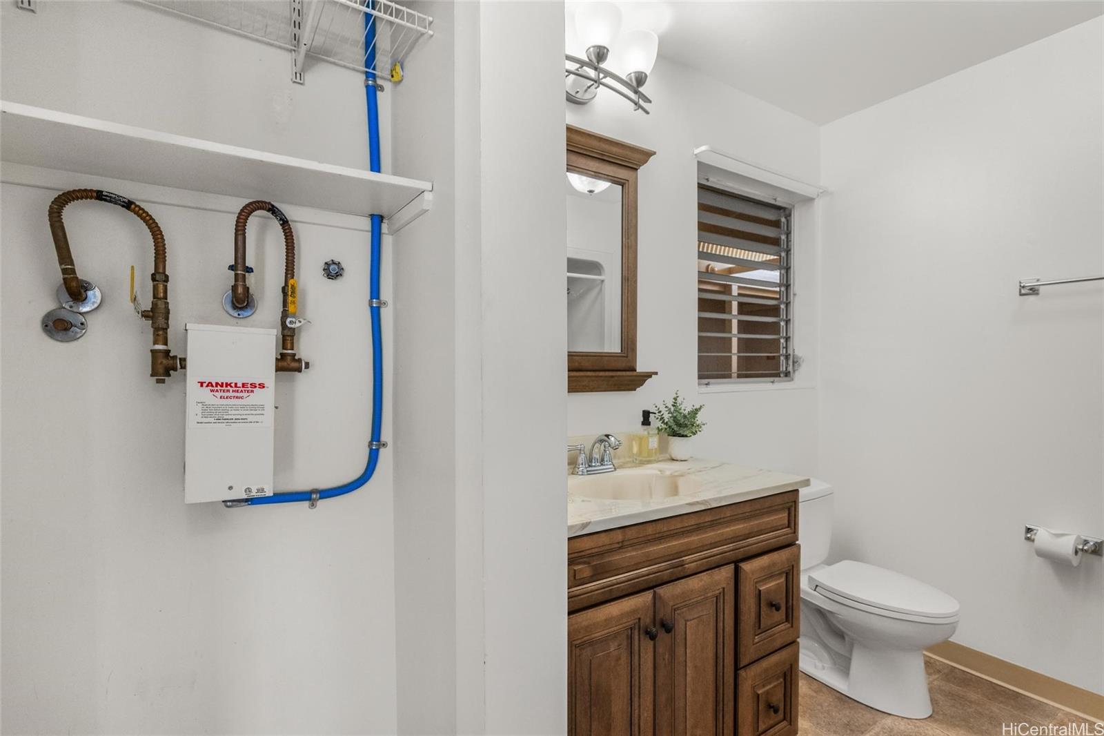 Welcome to Olaloa, a welcoming 55+ gated community nestled in beautiful Mililani Mauka. This lovely one bedroom home boasts an updated kitchen and bath with modern touches. Relax on your private lanai, a great spot to unwind and enjoy the fresh air. The unit comes with ceiling fans, AC, and a tankless water heater for your comfort. Enjoy the convenience of a washer/dryer inside your home, with community laundry nearby. Two dedicated parking spaces and a handy storage unit complete this inviting space. Age requirement does not apply to ownership. Come experience the lifestyle waiting for you at Olaloa.