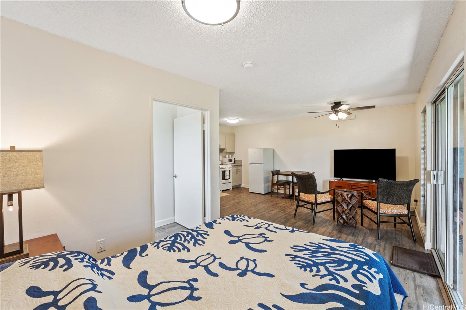 Well-maintained ground-floor end-unit studio in a 55+ independent senior community in Mililani. Single-level and quiet, with no upstairs neighbors and unrestricted ownership. Extra storage closet located just outside the unit.This newly renovated condo features a private palm-shaded lanai with morning sun and mauka breezes. Renovations include hardwood cabinetry, granite countertops, new appliances, toilet, vanity, emergency lighting, LED lighting, and ceiling fan. Flooring was professionally floated by a union mason and finished with new commercial-grade vinyl. Bright, clean, and move-in ready.Conveniently located near the gym and recreation center. Community amenities include gated entry, green space, clubhouse, and planned activities such as exercise classes and line dancing; amenities unique to Olaloa compared to other Mililani condo projects.Furniture available with sale; owner is in the furniture business and most contents are negotiable with full-price offer.Sold As Is. Rarely available.