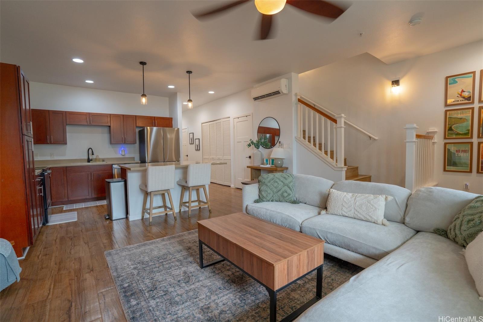 VA Assumable Loan at 4.717% with a balance of 734,153. This beautifully maintained 3BD/2.5BA townhouse offers 1,356 sq ft of comfortable, functional living; complete with a private yard, one-car garage, and split A/C to keep you cool year-round. Inside, you’ll find quality finishes, in-unit washer and dryer, and a layout designed for real life. Step outside and enjoy everything Mehana has to offer: a resort-style pool, playground, gym, dog park, BBQ areas, and scenic walking paths.