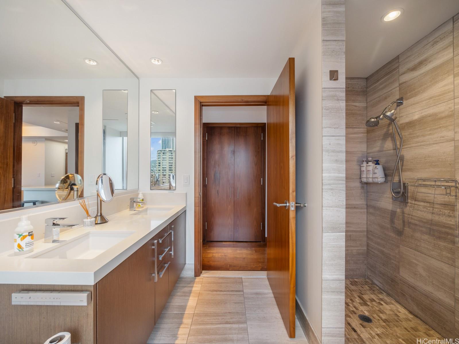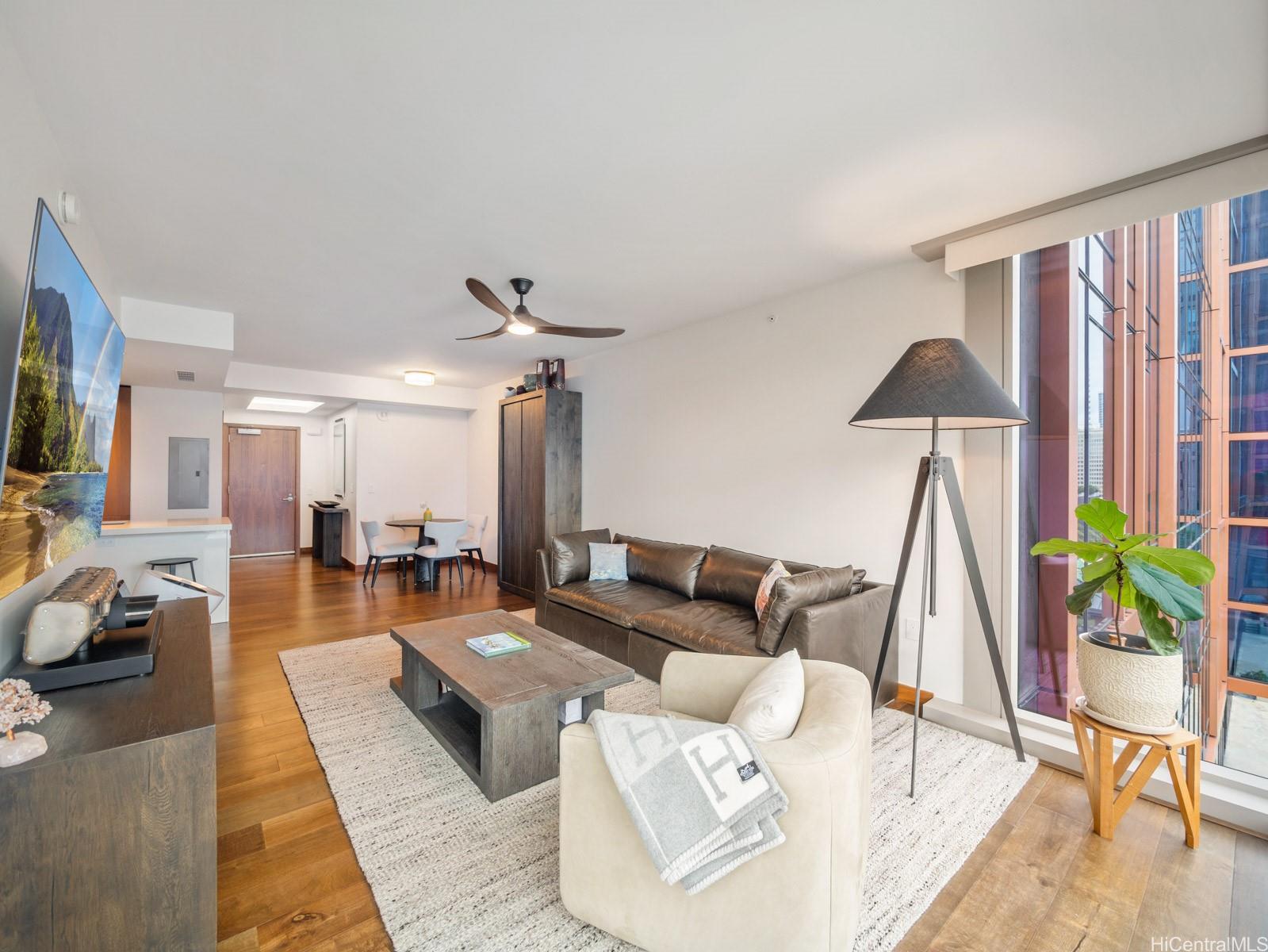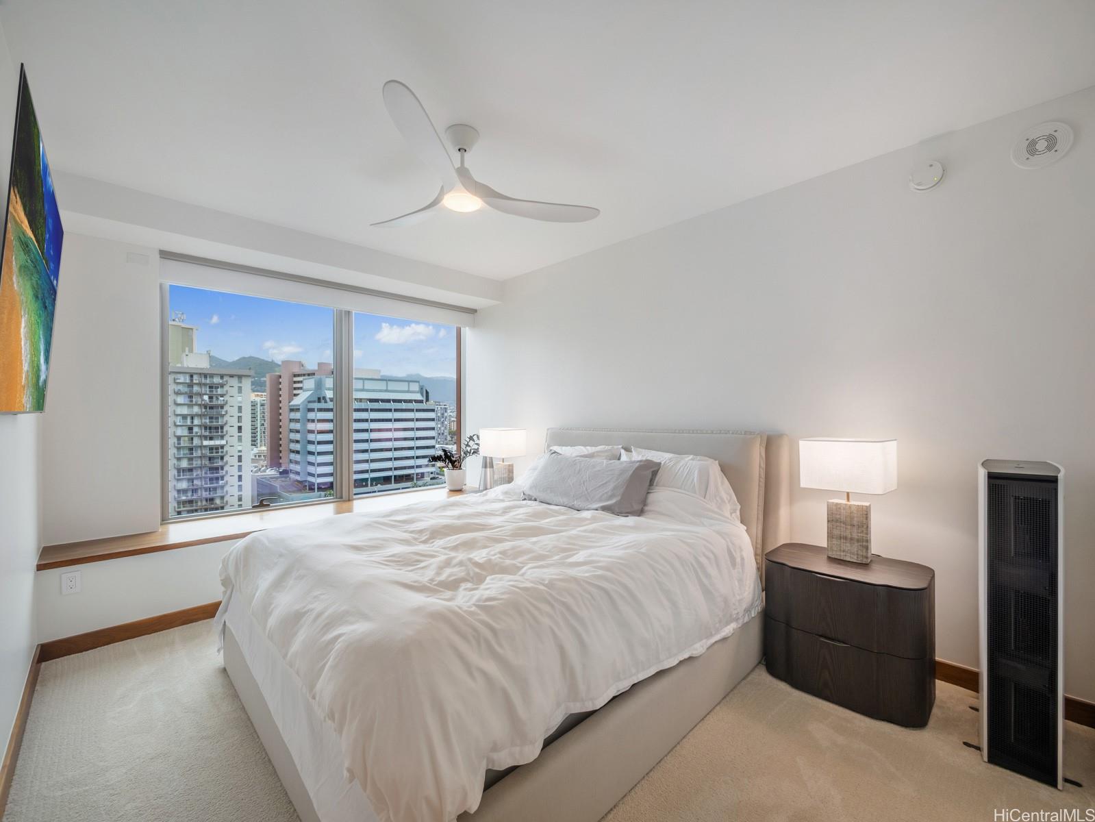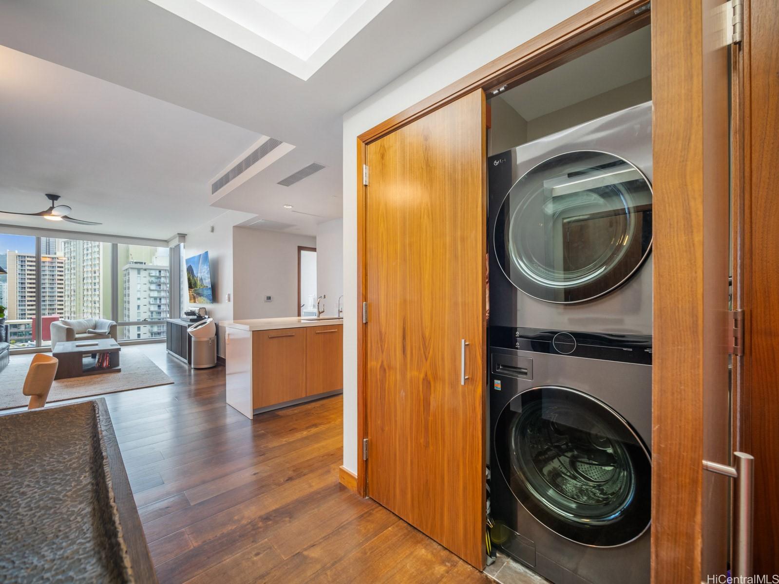 Turnkey luxury living in the heart of Honolulu! This beautifully upgraded 1-bedroom, 1-bath residence offers 881 sq ft of refined interior space thoughtfully designed with California Closets built-ins. Offered fully furnished (except bed) with high-end Restoration Hardware pieces, this home delivers a true move-in ready experience with elevated style throughout. Indulge in a spa-inspired bathroom featuring premium TOTO fixtures, including sought-after TOTO Neorest toilet. A standout feature rarely found in a 1-bedroom: 2 assigned parking stalls & 4 storage lockers. Residents enjoy resort-style amenities including pool, fitness center, recreation areas, BBQ spaces & secured entry, creating a comfortable & convenient lifestyle right at home. Perfectly positioned along the Kapiolani corridor, just minutes from Ala Moana Shopping Center, Waikiki, world-famous beaches and dining & entertainment. Whether you’re looking for a primary residence or investment opportunity, this property offers ideal combination of location, lifestyle & value. Don’t miss this rare opportunity to own this upgraded residence with exceptional parking & storage in one of Honolulu’s most desirable urban locations.