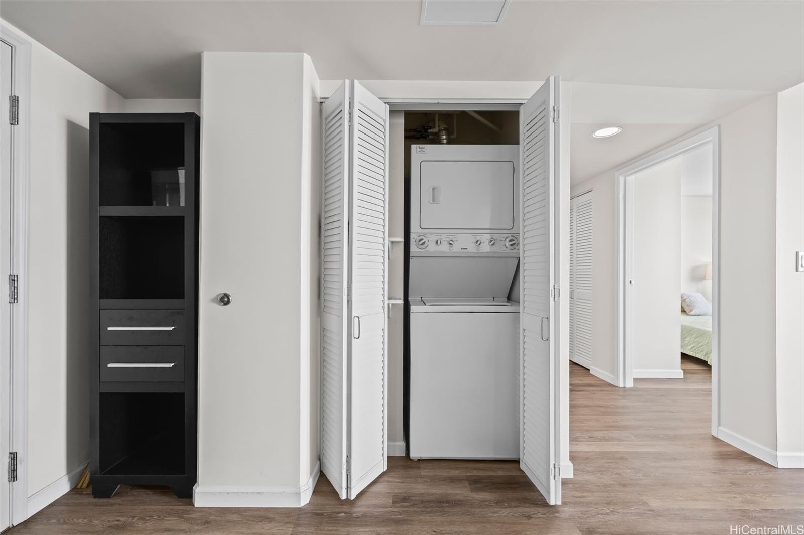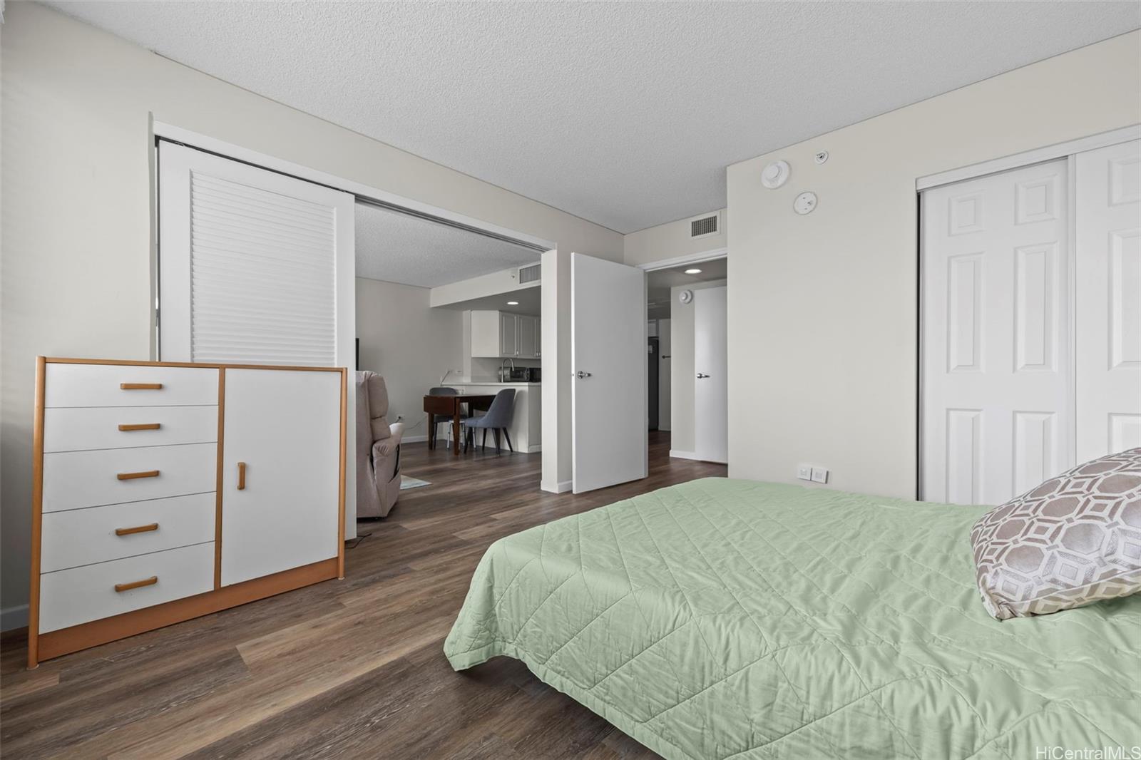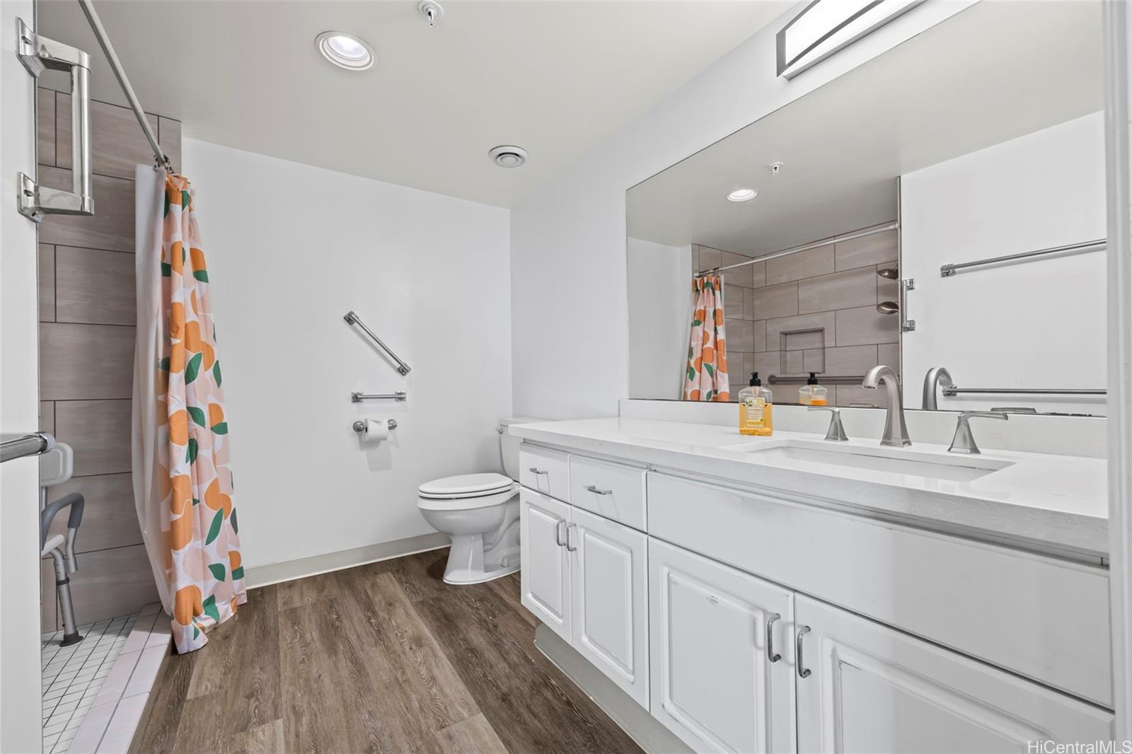 Peace and tranquility await you at One Kalakaua Senior Living! This 2 bed, 1 bath unit has been lovingly cared for over the years and features all the classic home comforts you could want: stainless steel kitchen appliances, vinyl plank flooring, a convertible living space with sleek sliding doors, and huge windows that let in tons of natural sunlight with city views of Honolulu. The large quartz counter top is perfect for home cooks to whip up a feast, and the ADA accessible bathroom is a huge plus with no step-in to the shower, and grab bars strategically placed throughout. The building itself offers a wide range of amenities including, but not limited to, a library, dining room, gym, music room, pool, cafeteria, and outdoor rocking chair seating area so you can enjoy a cold drink with your friends on warm summer days. Just minutes away from Ala Moana, Salt at Kakaako, and Ward Village. Must see to fully appreciate all this unit has to offer!