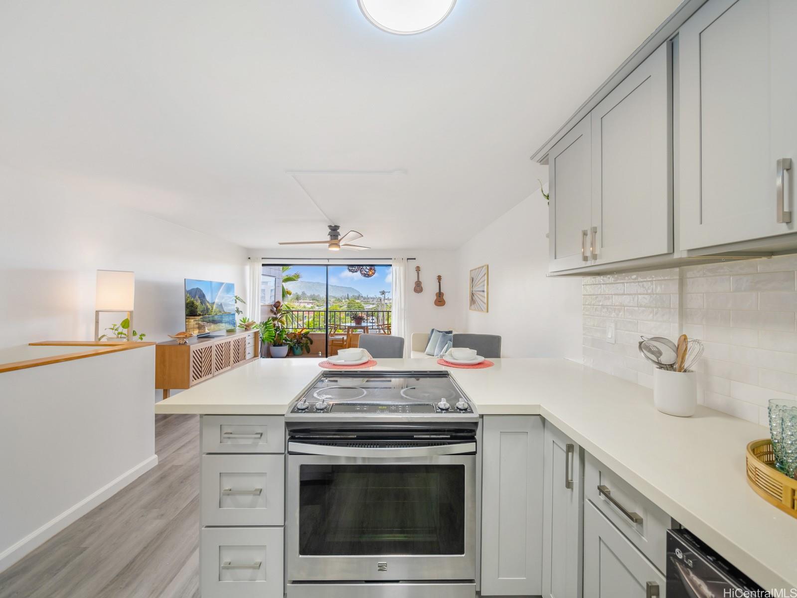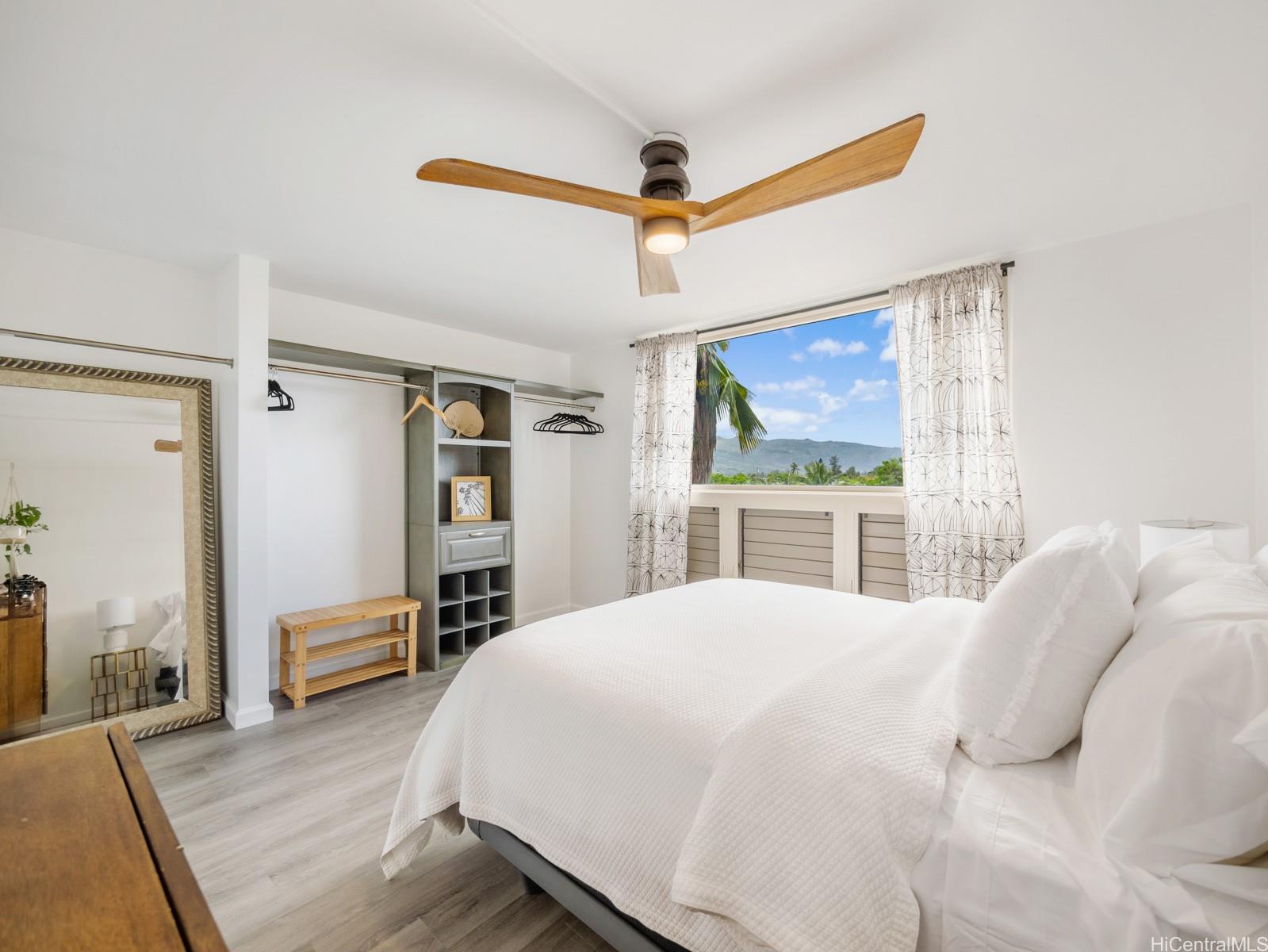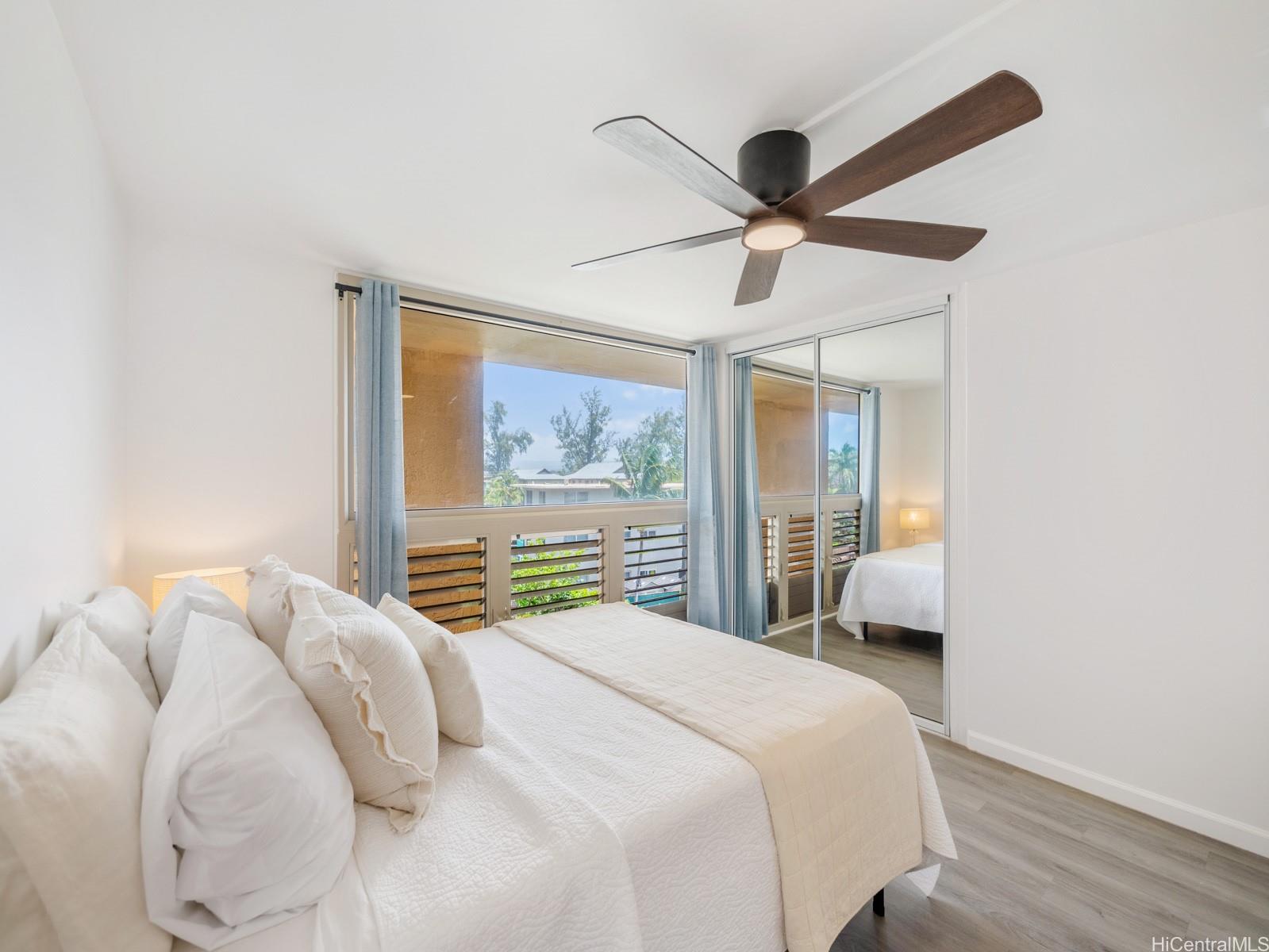 This beautifully remodeled split-level condo features 2 bed/1 bath, perfectly situated one block from the sandy beaches of the North Shore. This building is VA and Pet Approved with 1 deeded parking. The unit’s location is delightfully private as the second to last unit farthest from the elevator. It is in the west facing building, ideal for sunset viewings. Step inside the move in ready unit to discover a bright, clean remodel. With a fresh coat of paint and tasteful furnishings, the unit is turn key. The covered lanai provides breathtaking ocean views and Kaena Point, making it the perfect spot to relax. The layout of this condo is elevated, featuring an open kitchen and a stylish island/peninsula that enhances both functionality and aesthetics. The bedrooms and bathroom are located on the lower level. The bathroom features a full sized vanity and updated fixtures. The main bedroom’s custom built in make it functional and space enhancing. As part of the building’s amenities, you’ll have access to a pool, a relaxing sauna and one assigned parking. Nestled in a quiet, breezy, and local ocean community, this condo offers a rare blend of beauty, comfort, and affordability.
