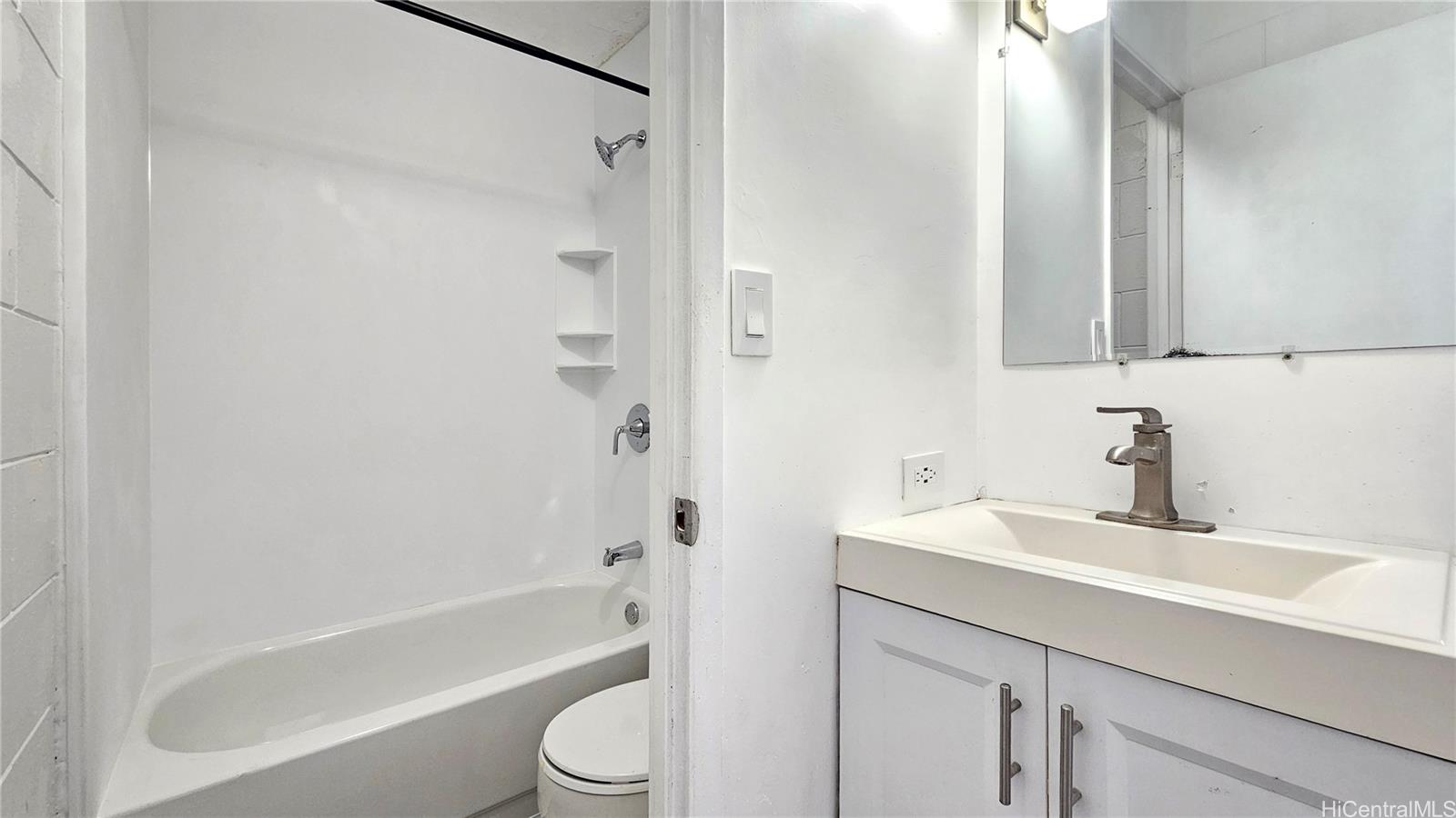 Experience flexible, modern Waikiki living in this recently renovated, flexible-floorplan unit at Pacific International. This unique layout functions as a spacious 1-bedroom with two full baths or can be used as two separate studios with individual entrances—an excellent option for rental income, guests, or multigenerational living.Wake up to unobstructed views of the Koolau Mountains, Ala Wai Golf Course and canal. The updated interior features upgraded kitchen cabinets with granite/quartz countertops, a gas stove, and stylish finishes. Both bathrooms have been refreshed with new vanities, tubs and tile. Luxury vinyl plank flooring and fresh paint give the home a clean, contemporary feel. Window AC units provide cooling.Pacific International offers secured building entry and community laundry. Move-in ready and income-ready, this residence places you in a prime Waikiki location within easy reach of world-class dining, shopping, beaches and island conveniences.