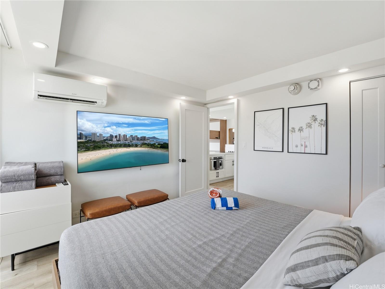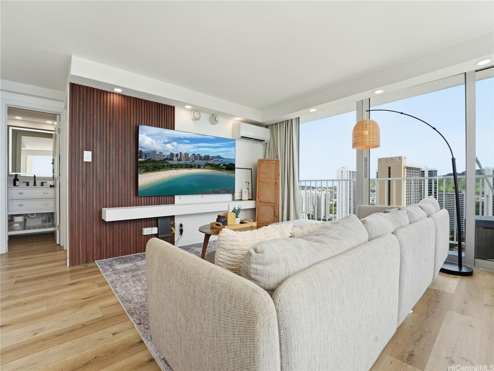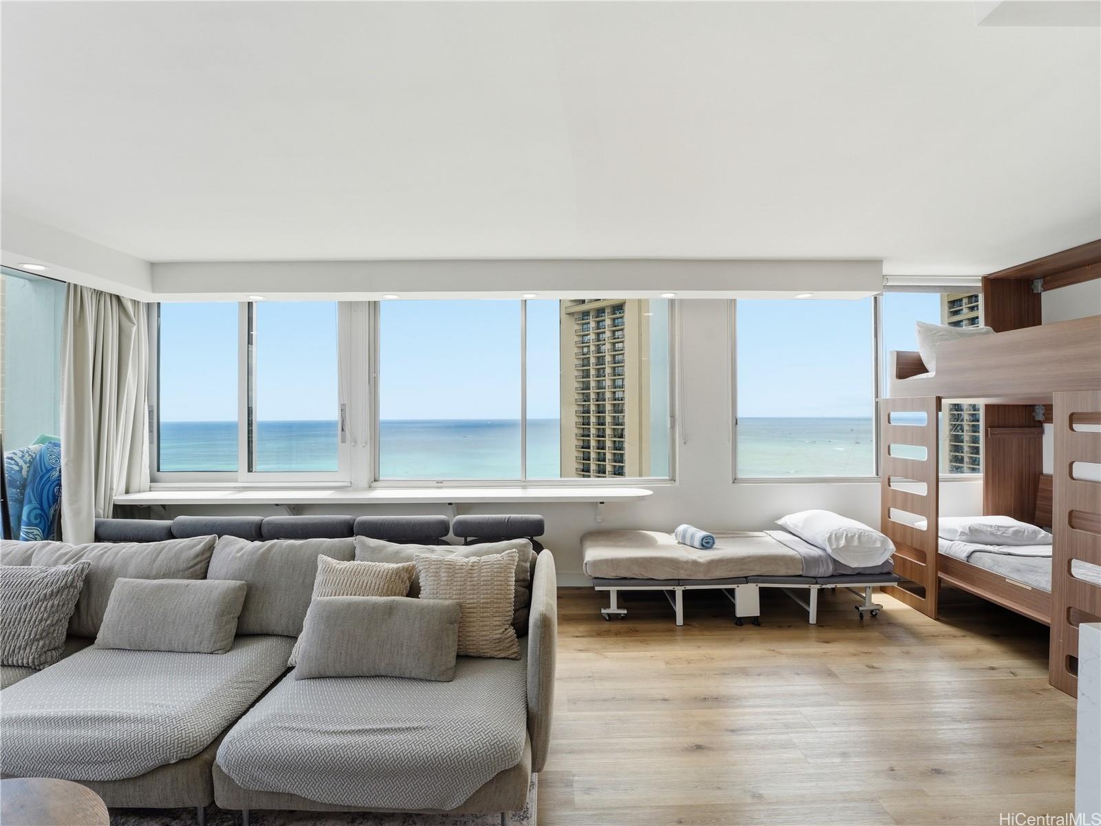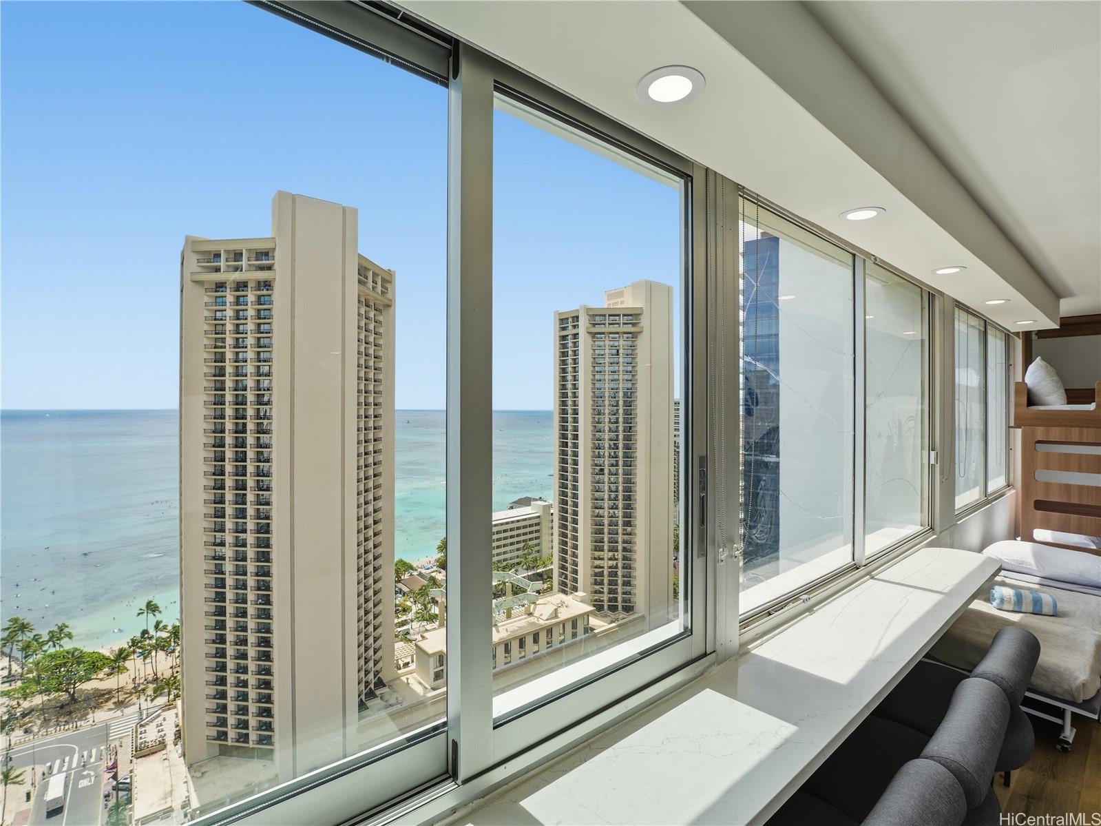 人気物件「パシフィック・モナーク」にある、美しく改装された1ベッドルーム・1バスルームの角部屋で、上質な島暮らしをご体験ください。 絶好のロケーションに位置し、息をのむようなパノラマビューを堪能できるこの邸宅では、プライベートな空間でくつろぎながら、ダイヤモンドヘッドときらめく太平洋の素晴らしい景色をお楽しみいただけます。 入念に改装されたインテリアは、モダンな仕上げと洗練された床材を採用し、スタイルと機能性を両立させたすっきりとしたコンテンポラリーなデザインとなっています。 人気の高い角部屋ですので、プライバシーが確保され、自然光がたっぷり差し込み、部屋全体に心地よい風が通り抜けます。 投資効果やスペースを最大限に活用したいとお考えの方には、隣接するユニットも販売中です。 これは、同じフロアにある隣接する物件を所有するまたとない機会であり、建築許可を得て両ユニットを連結する可能性も検討できます。 .