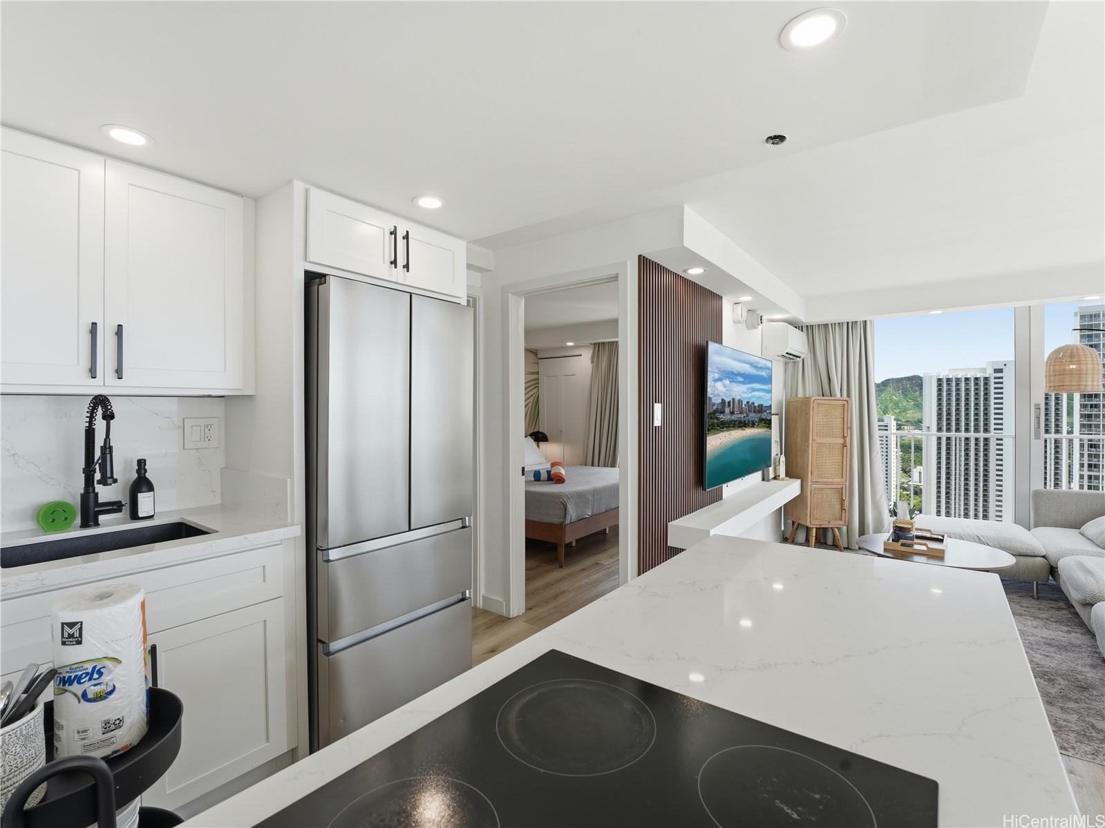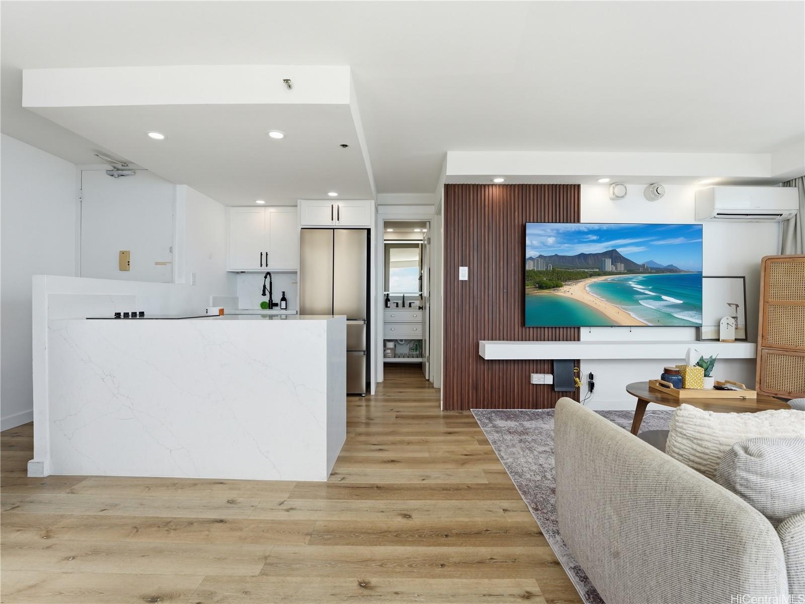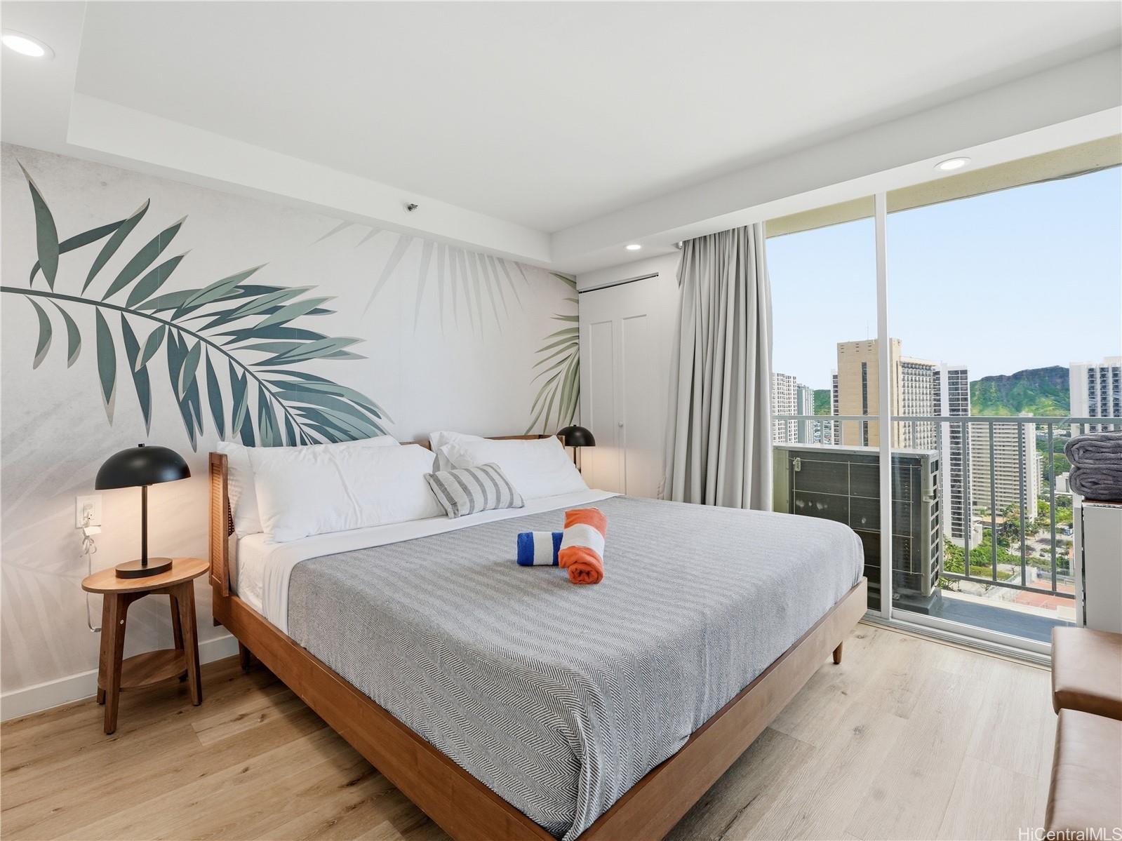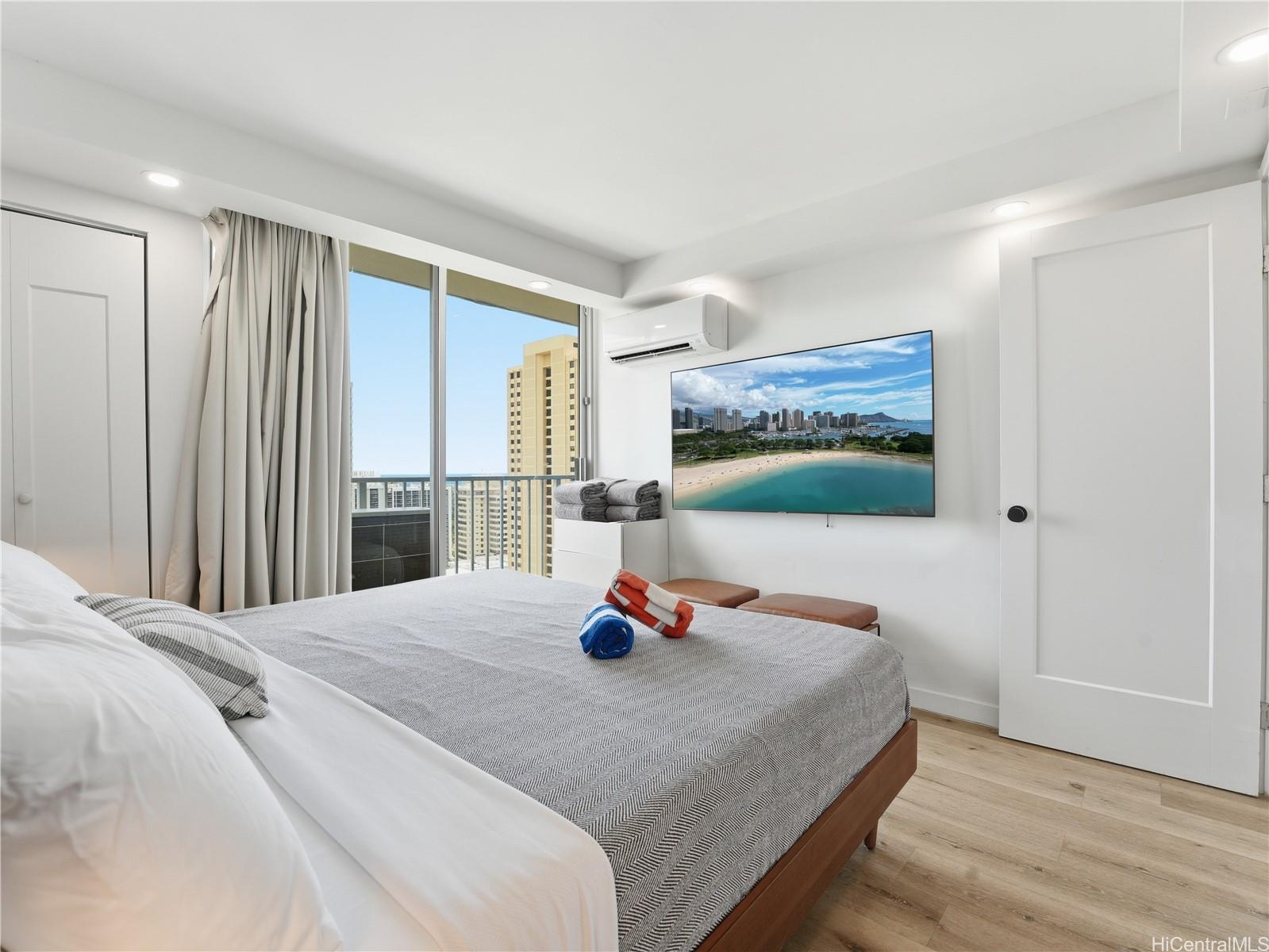 人気物件「パシフィック・モナーク」にある、美しく改装された1ベッドルーム・1バスルームの角部屋で、上質な島暮らしをご体験ください。 絶好のロケーションに位置し、息をのむようなパノラマビューを堪能できるこの邸宅では、プライベートな空間でくつろぎながら、ダイヤモンドヘッドときらめく太平洋の素晴らしい景色をお楽しみいただけます。 入念に改装されたインテリアは、モダンな仕上げと洗練された床材を採用し、スタイルと機能性を両立させたすっきりとしたコンテンポラリーなデザインとなっています。 人気の高い角部屋ですので、プライバシーが確保され、自然光がたっぷり差し込み、部屋全体に心地よい風が通り抜けます。 投資効果やスペースを最大限に活用したいとお考えの方には、隣接するユニットも販売中です。 これは、同じフロアにある隣接する物件を所有するまたとない機会であり、建築許可を得て両ユニットを連結する可能性も検討できます。 .