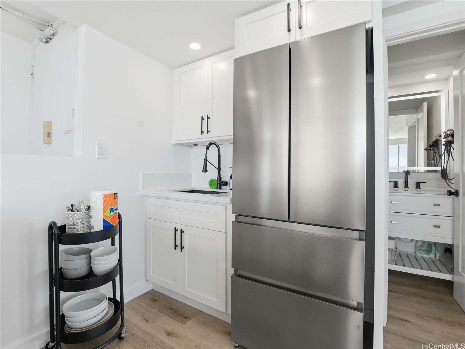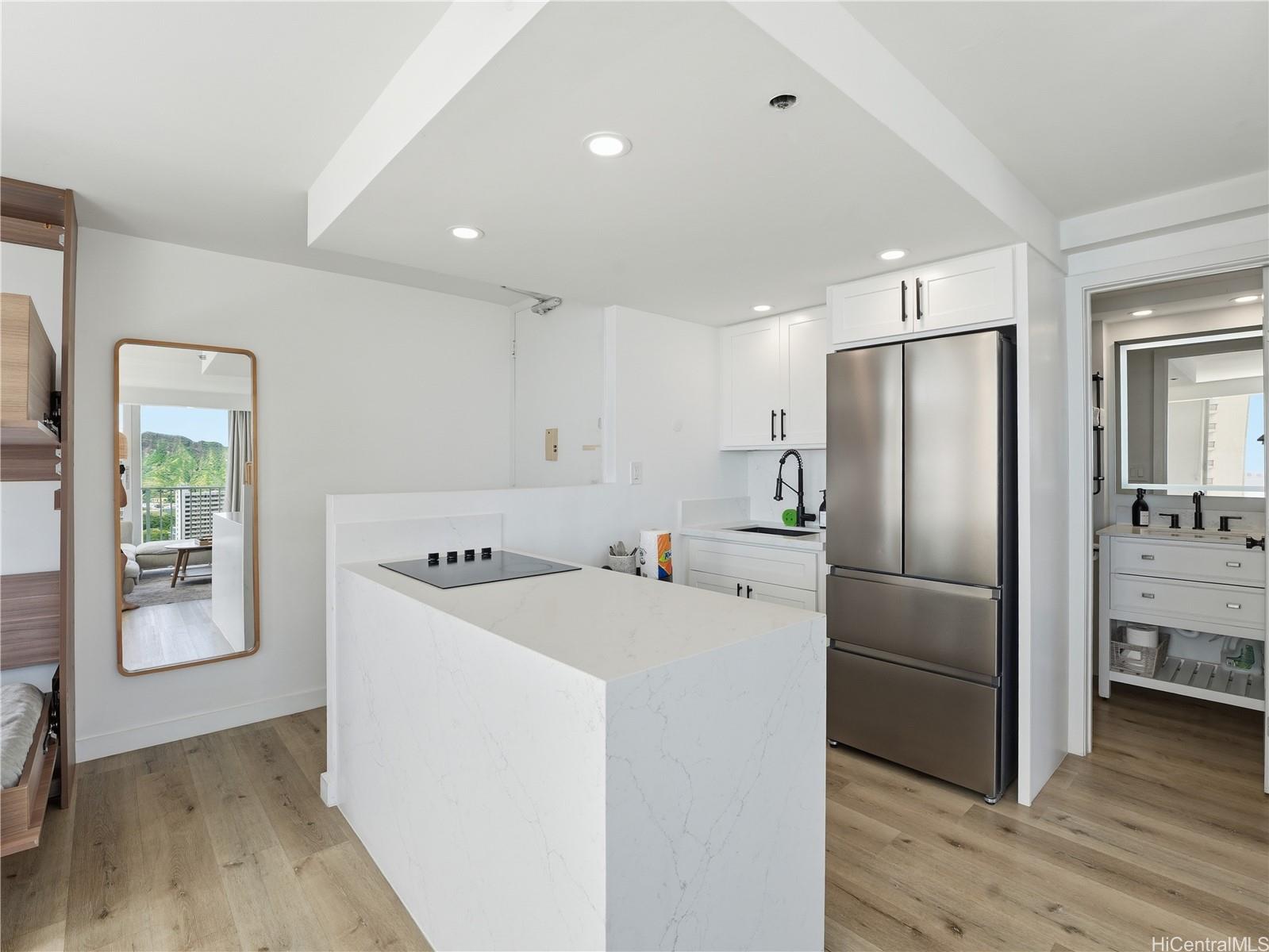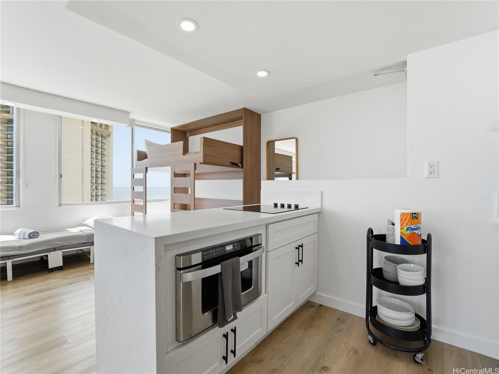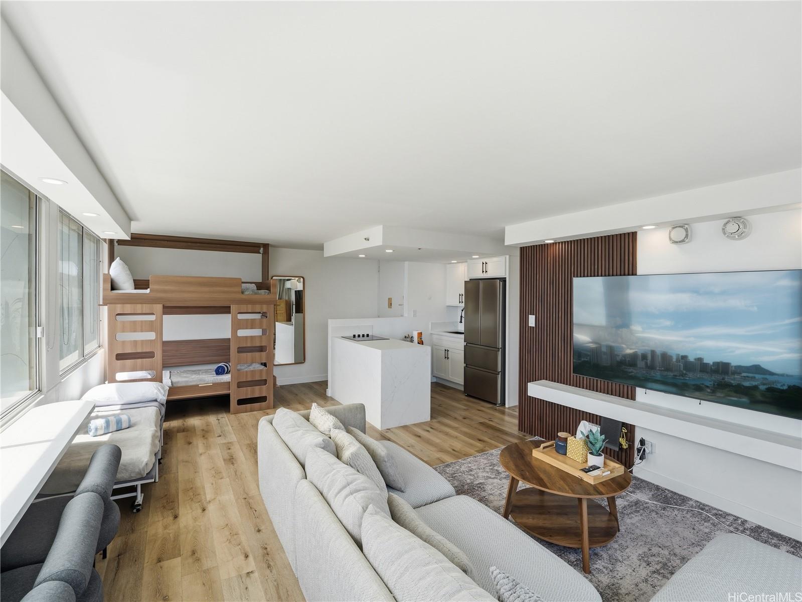 人気物件「パシフィック・モナーク」にある、美しく改装された1ベッドルーム・1バスルームの角部屋で、上質な島暮らしをご体験ください。 絶好のロケーションに位置し、息をのむようなパノラマビューを堪能できるこの邸宅では、プライベートな空間でくつろぎながら、ダイヤモンドヘッドときらめく太平洋の素晴らしい景色をお楽しみいただけます。 入念に改装されたインテリアは、モダンな仕上げと洗練された床材を採用し、スタイルと機能性を両立させたすっきりとしたコンテンポラリーなデザインとなっています。 人気の高い角部屋ですので、プライバシーが確保され、自然光がたっぷり差し込み、部屋全体に心地よい風が通り抜けます。 投資効果やスペースを最大限に活用したいとお考えの方には、隣接するユニットも販売中です。 これは、同じフロアにある隣接する物件を所有するまたとない機会であり、建築許可を得て両ユニットを連結する可能性も検討できます。 .