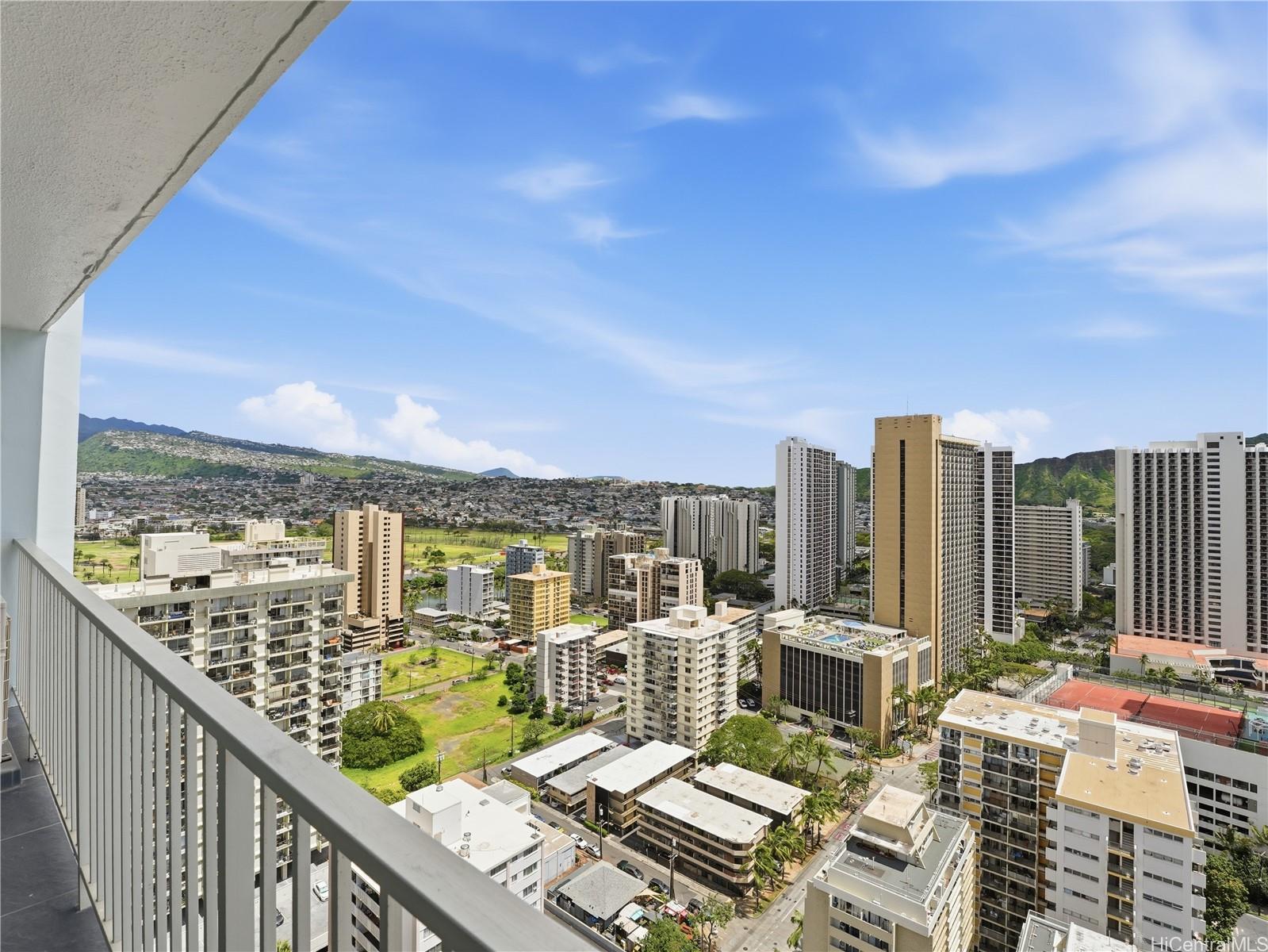 Experience elevated island living in this beautifully remodeled 1-bedroom, 1-bath corner unit at the highly sought-after Pacific Monarch. Perfectly positioned to capture stunning panoramic views, this residence offers breathtaking vistas of Diamond Head and the sparkling Pacific Ocean from the comfort of your own private retreat. The thoughtfully upgraded interior features modern finishes, sleek flooring, and a clean, contemporary design that maximizes both style and functionality. As a desirable corner unit, enjoy added privacy, natural light, and refreshing cross breezes throughout. For those looking to maximize their investment or footprint, the adjacent unit is also available for sale. This presents a unique opportunity to own side-by-side properties on the same floor, or exploring the potential to connect the units with building approval.