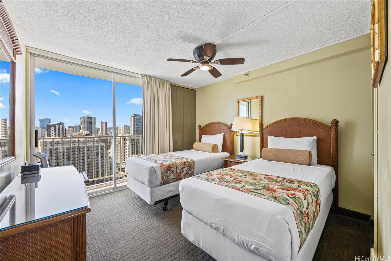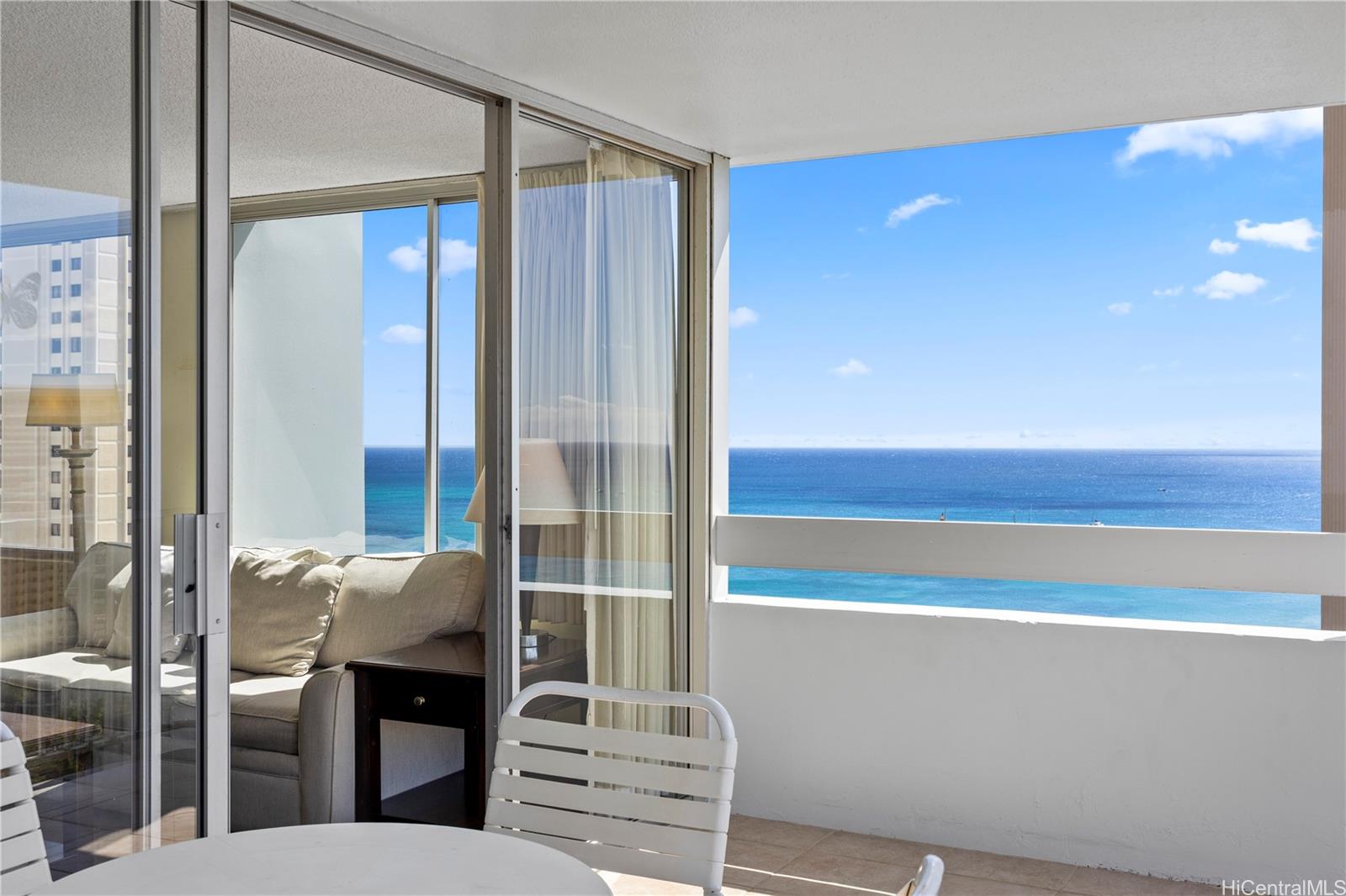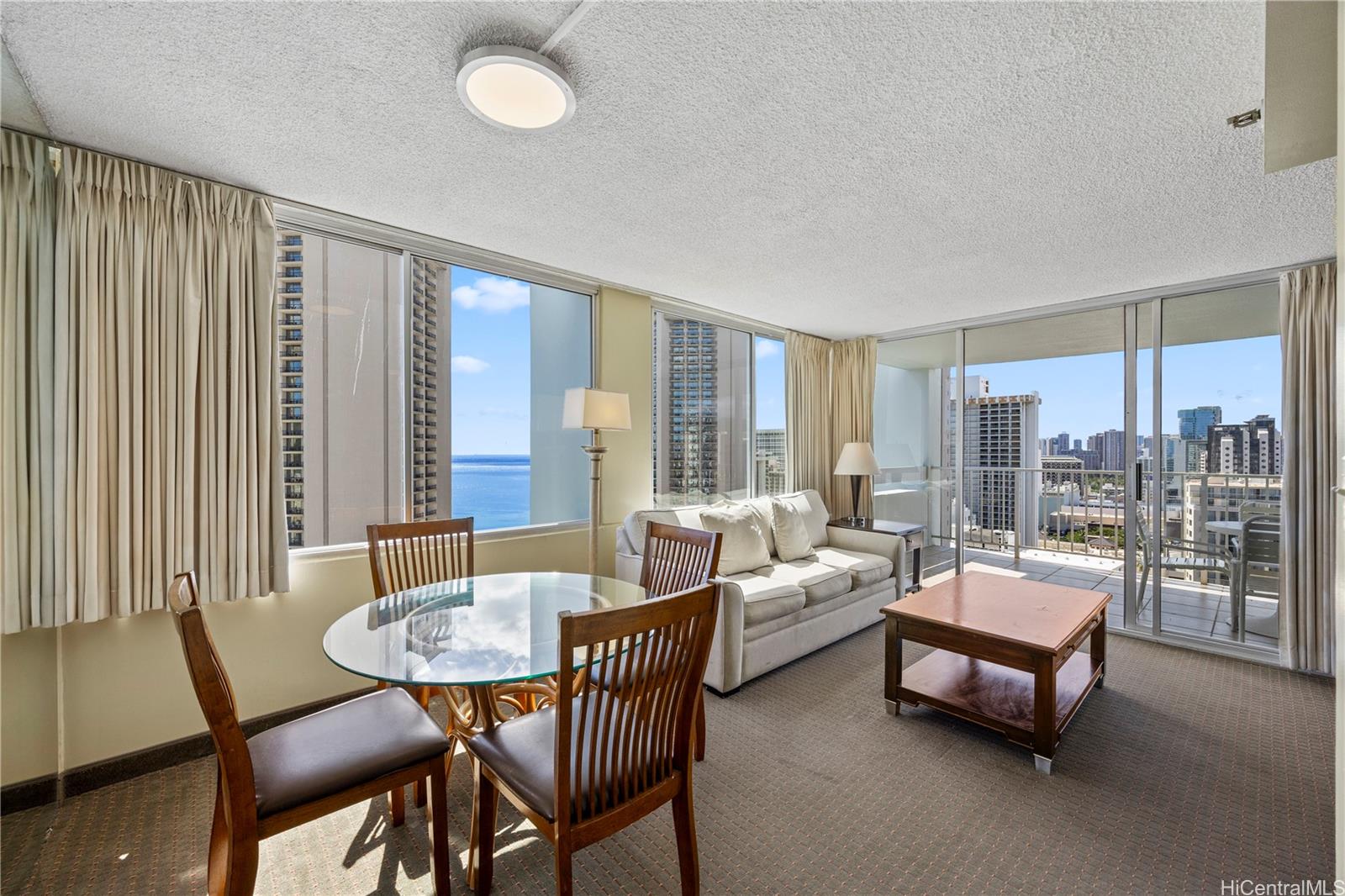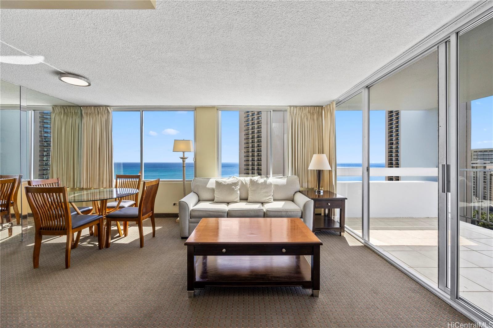 高層階に位置する、海・街並み・夕日の景色を望む、人気の高い「03」コーナーの1ベッドルーム。 広々としたラナイで、屋内と屋外が一体となった生活を楽しめます。 ワイキキビーチのすぐそば、インターナショナル・マーケット・プレイスまで徒歩圏内という絶好のロケーション。 法的に認可された短期バケーションレンタル物件で、現在はホテルの賃貸プールに組み込まれており、柔軟な管理オプションが利用可能です。 屋上プール、ジャグジー、サウナ、バーベキュー設備など、最高級の設備をお楽しみください。また、360度のパノラマビューもご堪能いただけます。 管理費には、電気代、水道代、下水道代、ケーブルテレビ代、およびインターネット代が含まれています。 セカンドハウスや投資物件として最適です。 .