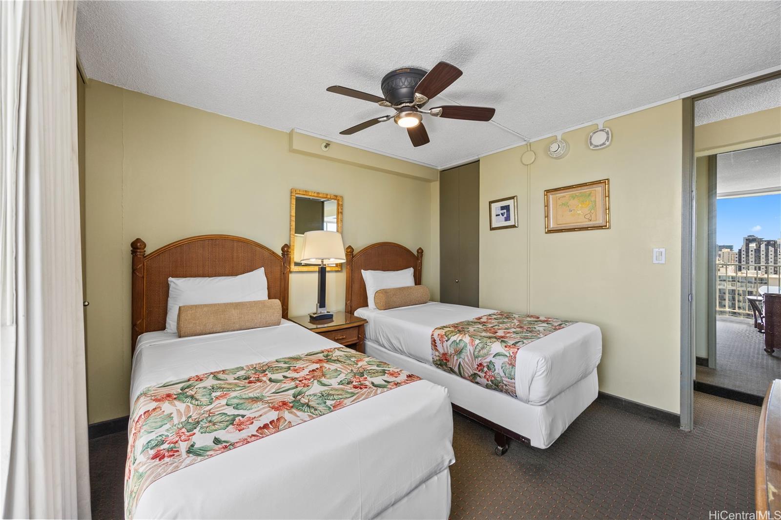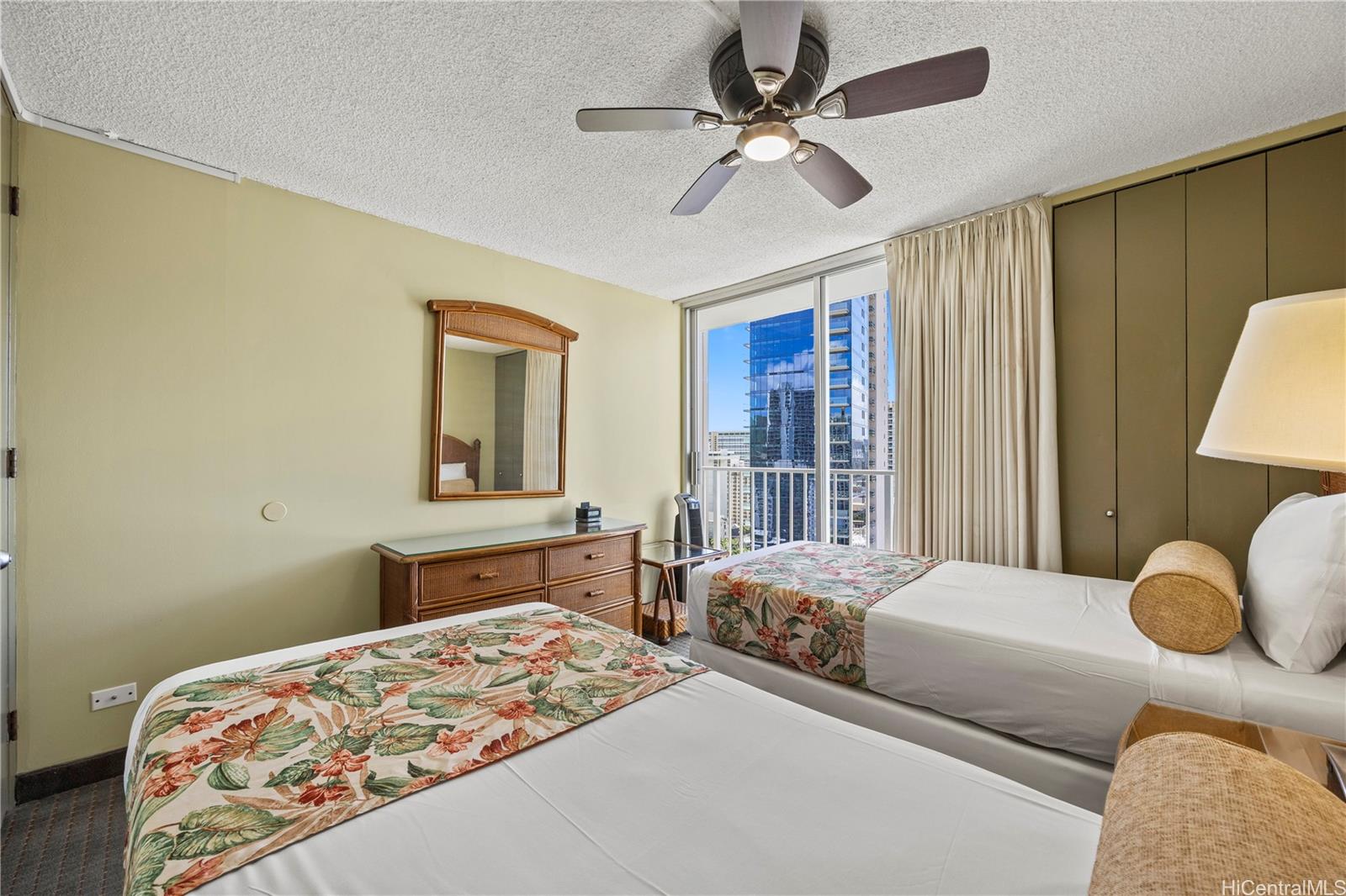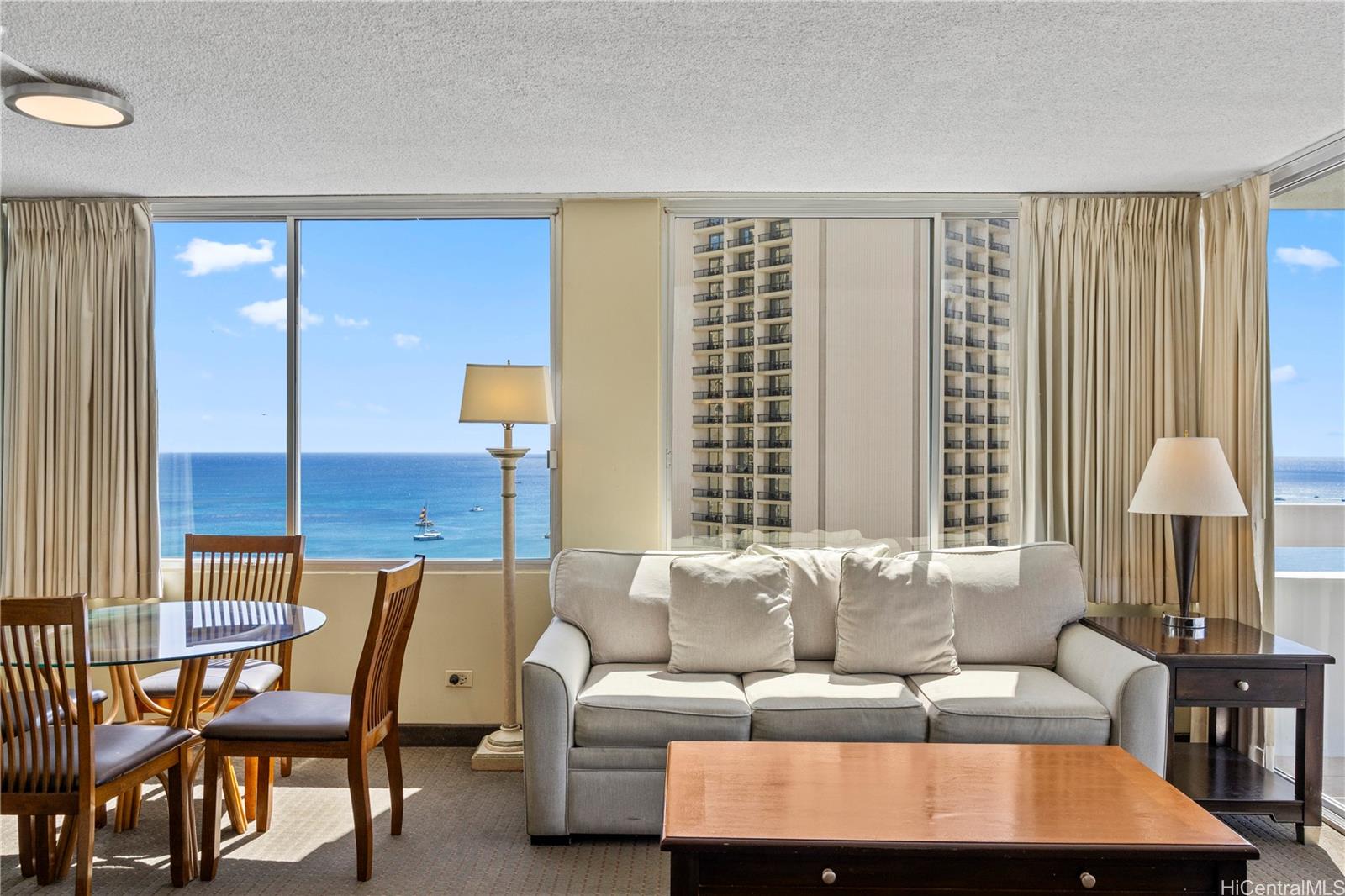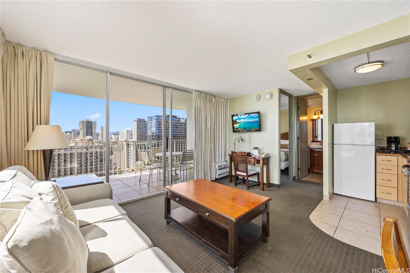 高層階に位置する、海・街並み・夕日の景色を望む、人気の高い「03」コーナーの1ベッドルーム。 広々としたラナイで、屋内と屋外が一体となった生活を楽しめます。 ワイキキビーチのすぐそば、インターナショナル・マーケット・プレイスまで徒歩圏内という絶好のロケーション。 法的に認可された短期バケーションレンタル物件で、現在はホテルの賃貸プールに組み込まれており、柔軟な管理オプションが利用可能です。 屋上プール、ジャグジー、サウナ、バーベキュー設備など、最高級の設備をお楽しみください。また、360度のパノラマビューもご堪能いただけます。 管理費には、電気代、水道代、下水道代、ケーブルテレビ代、およびインターネット代が含まれています。 セカンドハウスや投資物件として最適です。 .