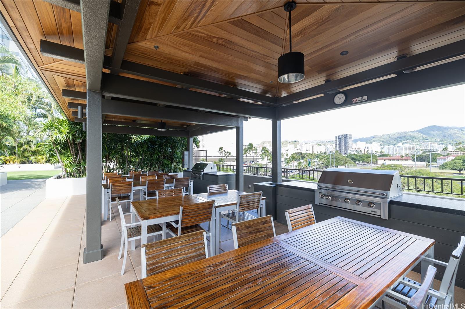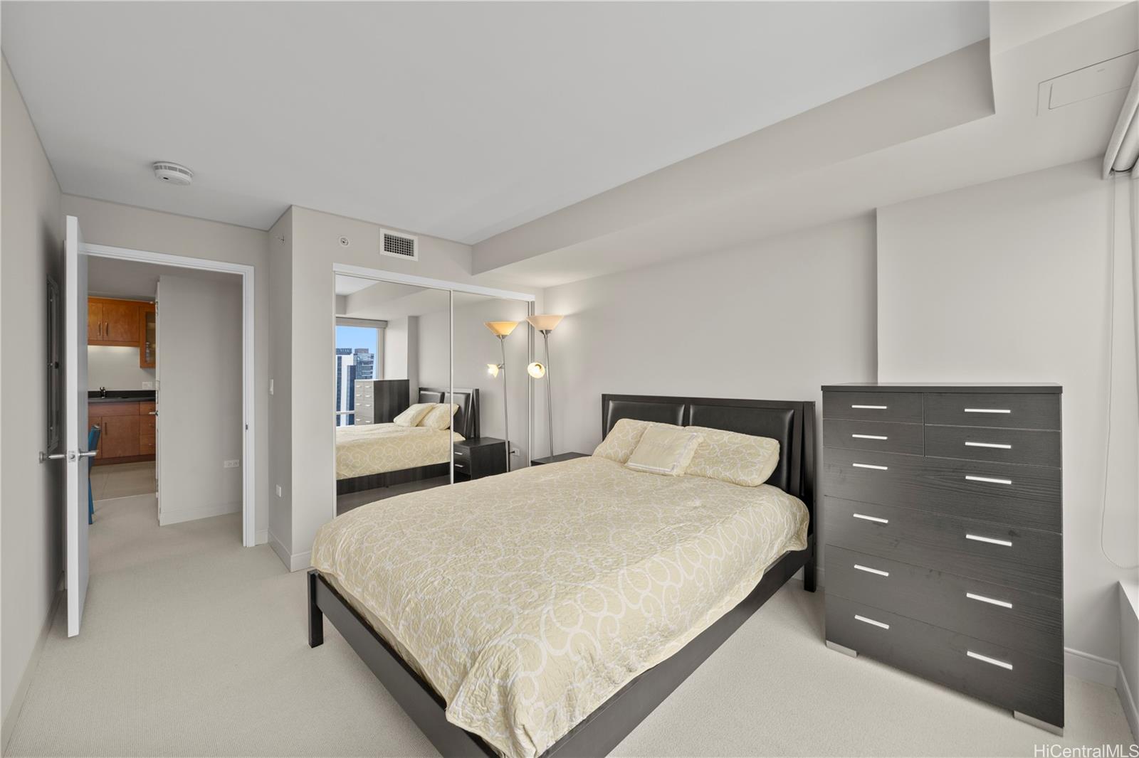 High floor unit with great ocean views from living room and bedroom. Good location, close to Ward Center, movie theater, Ala Moana, SALT, and Blaisdell. Fine dining Doraku, Chai Bistro, on 1st floor. Very secure building. To be sold fully furnished, and move-in ready.