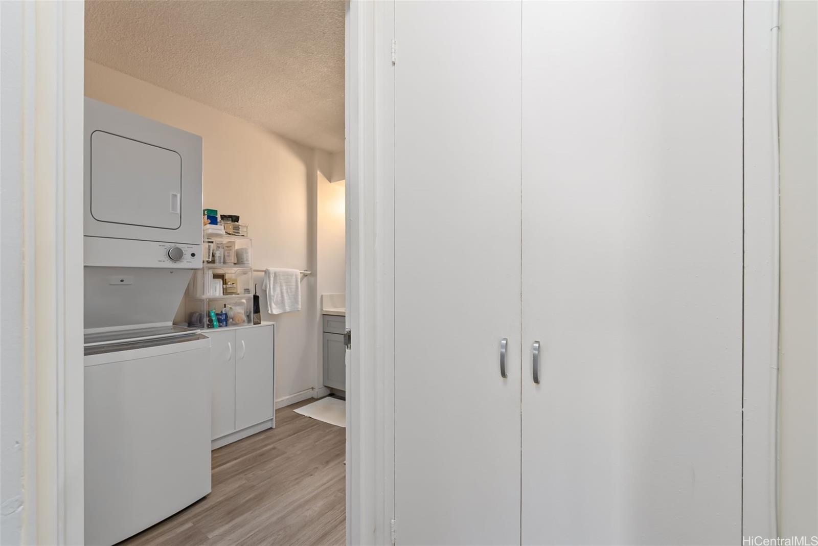 Newly Renovated, 1 bedroom, 1 bath, 1 parking unit in the Pacificana Atlas. Secured parking and entry. This unit features new vinyl flooring throughout, ceiling fans in living and bedroom, gray shaker cabinets, quartz counters, renovated bathroom, including a newer in unit stacked washer/dryer and appliances. Pacificana Atlas is in a prime location, near hospitals, banks, grocery stores, freeway entrance/exits, and more! Pet friendly building – 1 Pet (Verify), with Pool on 4th floor. Maintenance fee’s include Sewer, Water, Hot Water, and common areas.