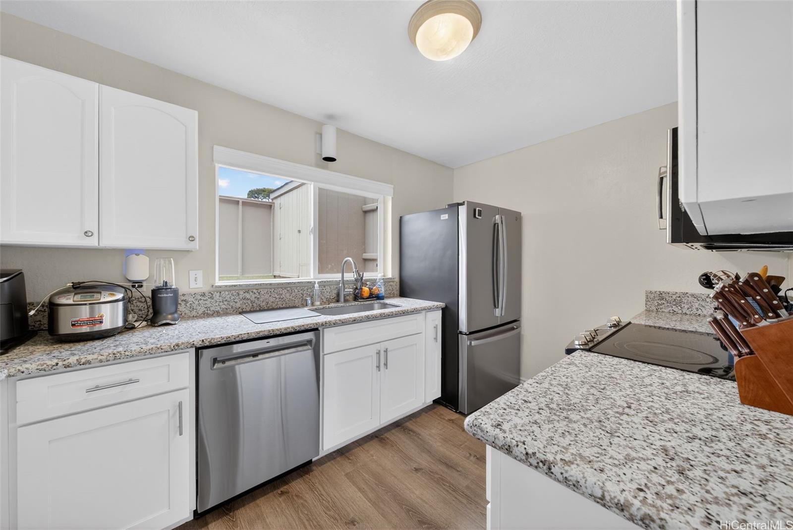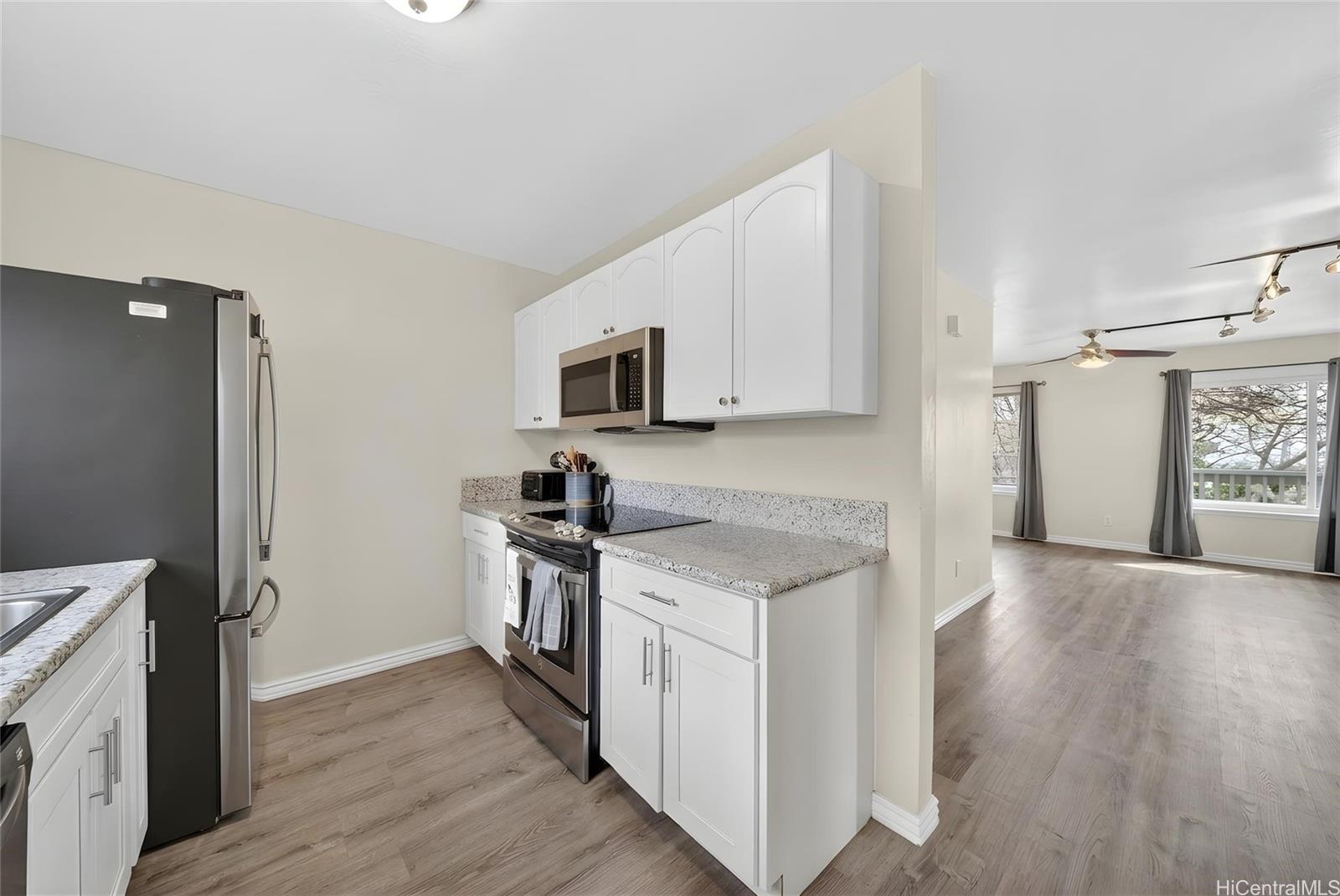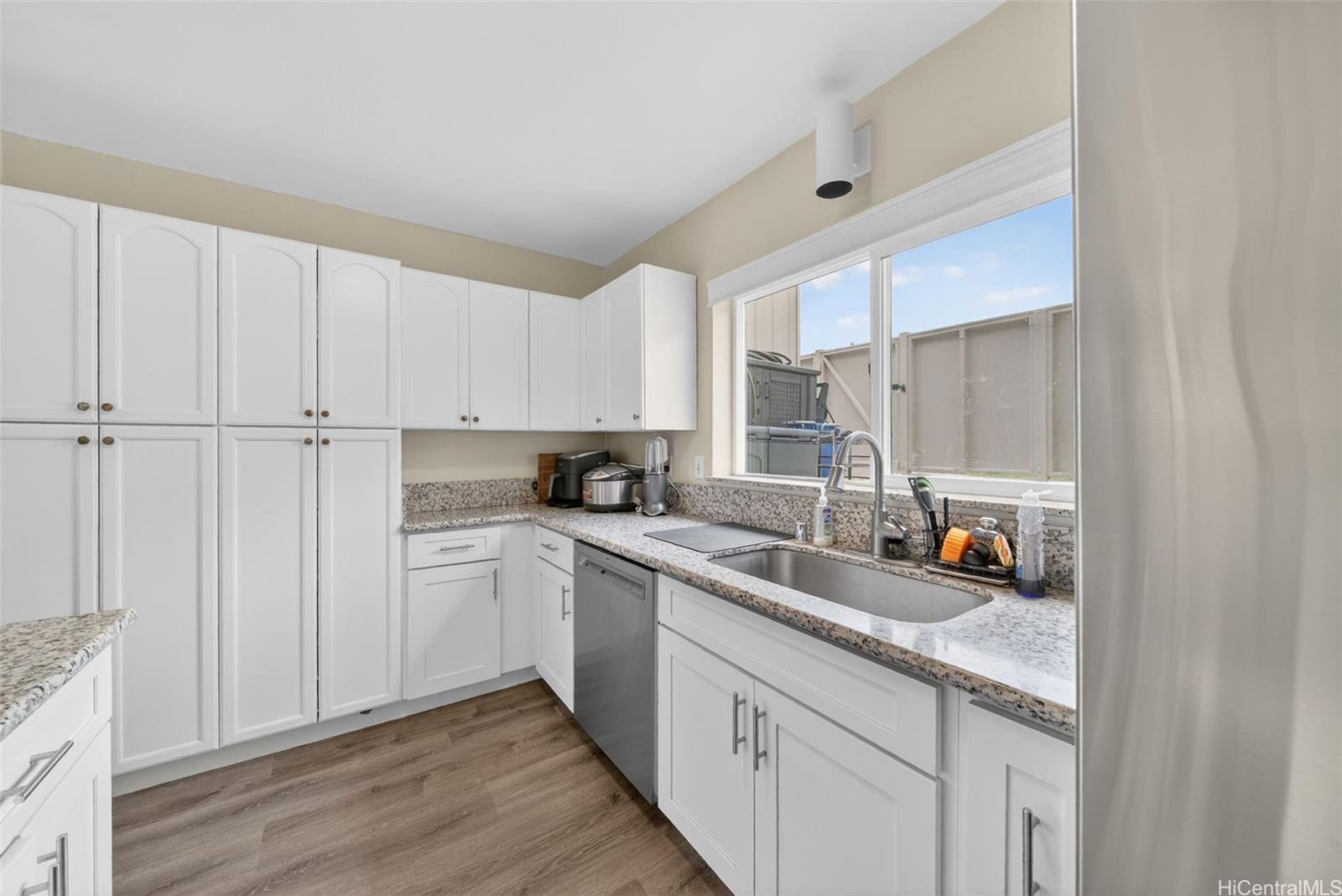 Welcome to Palehua Gardens in Makakilo — a well-established neighborhood in the heart of Kapolei. This ground-floor, corner/end townhouse gives you the space and privacy that’s hard to find at this price point. Three bedrooms, two-and-a-half baths, and a private lanai with partial ocean views. Inside, you’ve got low-maintenance vinyl flooring and all the essentials already in place — fridge, range/oven, microwave, washer, and dryer. Dedicated storage and two open parking stalls round it out. The community comes with solid amenities: pool, clubhouse, patio/deck, and playground — quick highway access, plus dining, shopping, and entertainment all within a few minutes. Ka Makana Ali’i Mall is right down the hill for shopping, dining, and movies. Costco, Target, and Whole Foods are all nearby. For weekends, you’ve got Ko Olina’s lagoons, wet side beaches, and waterpark within a short drive. Golfers have access to coral creek and Kapolei Golf Club. Makakilo sits just above it all — a quieter, elevated pocket with easy access to the H-1 when you need to get into town. Kapolei continues to grow as Oahu’s “Second City,” with new restaurants, shops, and development coming in steadily.