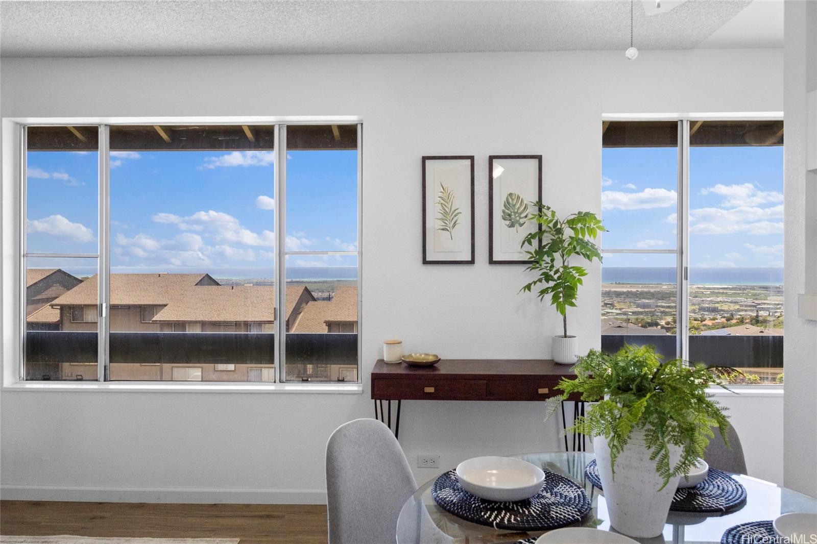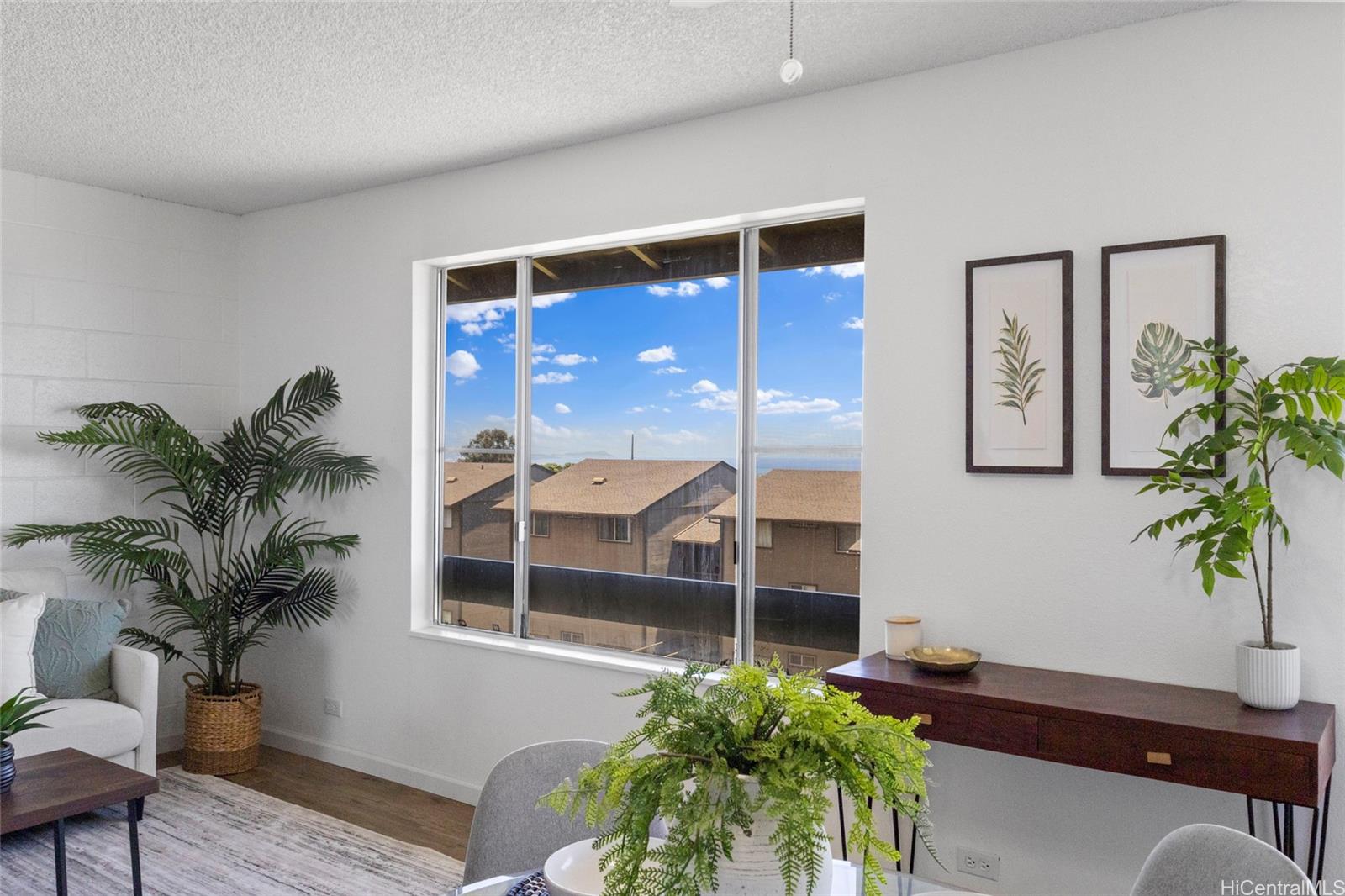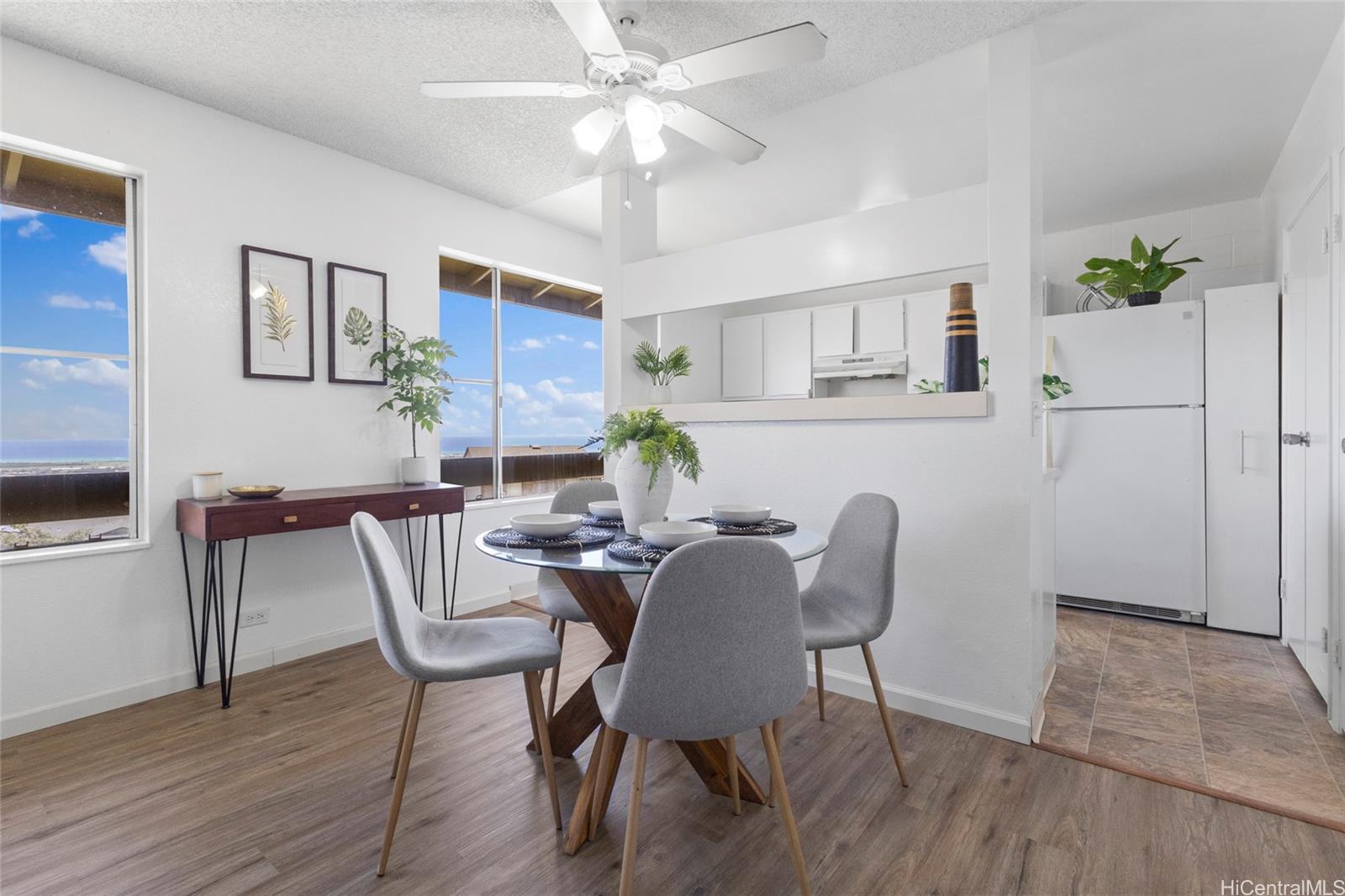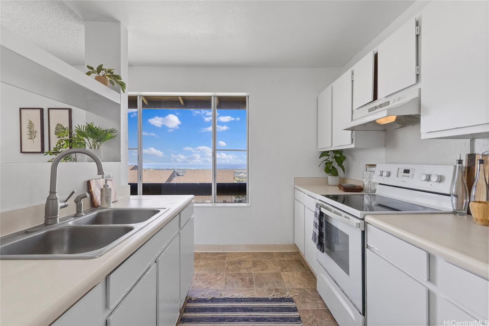 Welcome home to this move-in-ready 2-bedroom, 1-bath townhouse with 2 parking stalls in the breezy Palehua Villas community in Makakilo. This desirable end unit captures refreshing trade winds and offers beautiful Diamond Head and ocean views—creating a comfortable and inviting place to call home. Did I mention it’s pet-friendly too! Recently remodeled in 2025, the interior showcases a clean, modern design ideal for everyday living. Fresh interior paint brightens the space, while luxury vinyl plank flooring flows throughout the main living areas and bedrooms, offering both style + durability. New water heater + enjoy the added convenience of an in-unit washer + dryer. Perfect for first-time buyers or investors, this home also benefits from Makakilo’s cooler hillside climate and peaceful surroundings. Conveniently located just minutes from freeway access, shopping, dining, schools, golf courses + beaches.100% hurricane insured, 2026 maintenance fees decreased to $483.00! Don’t miss this incredible opportunity, schedule your showing today!