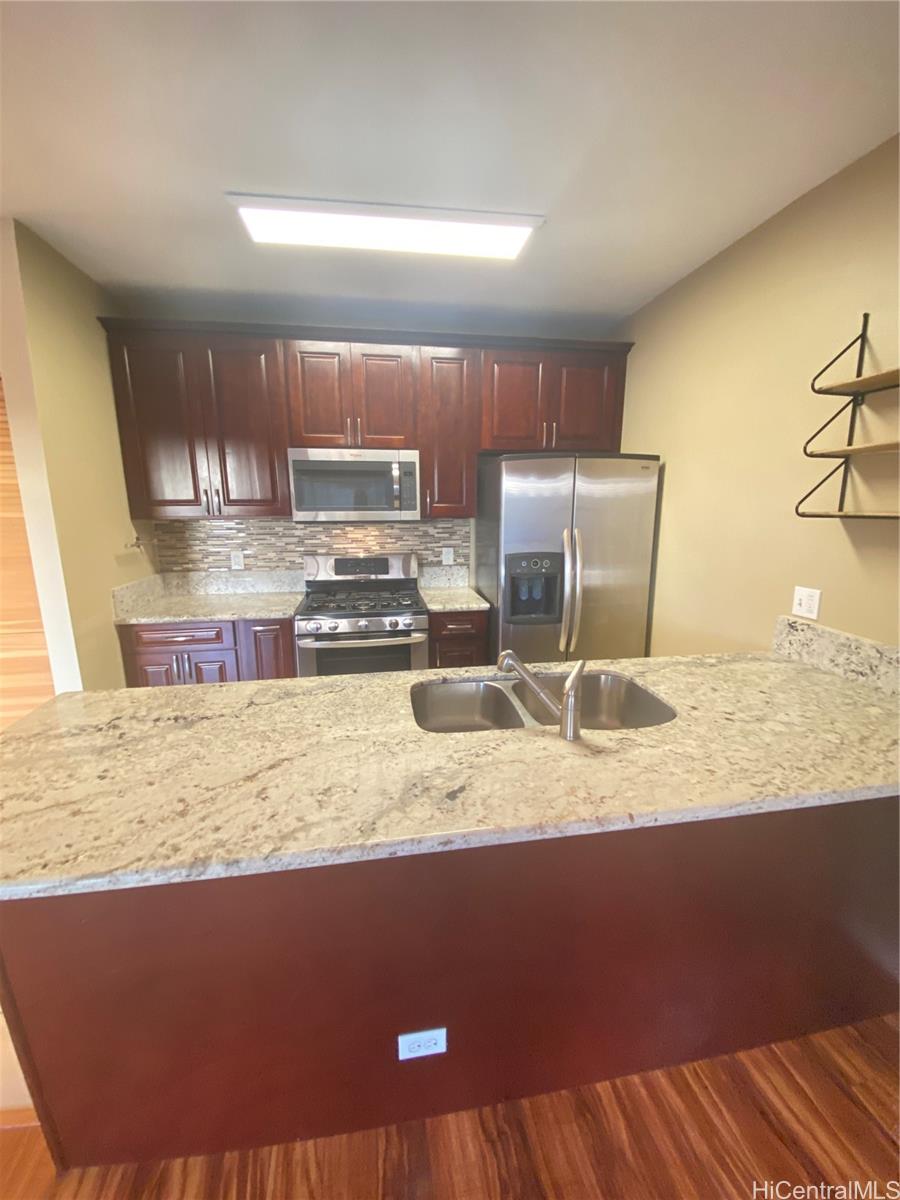Welcome Home Hawaii proudly represents this island style living located in the heart of Ewa Beach, this stunning 2 bedrooms, 2 bathrooms, with an open lanai area great for entertaining. This well maintained upstairs townhome boasts modern amenities, including a fully-equipped kitchen with stainless steel appliances, a gas range, granite countertops, and a full size front loader washer/dryer. Come see the Palm Court community and enjoy the refreshing swimming pool and BBQ area with lots of guest parking in a secured gated community. With convenient access to H-1 and nearby shops, restaurants, parks, schools, and entertainment options. This townhome is perfect and ready to move in. Don’t miss this amazing opportunity to own a piece of Hawaii-Schedule your showing today!