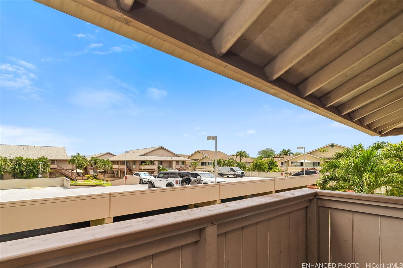 Well maintained 2 bedroom and 1.5 full bathroom, 2nd floor town-home in desired Palm Villa 2. Unit features granite counter tops, maple wooden cabinets, new carpet throughout unit and more. Unit is located on the cool side of the building (East Facing) with cool cross breeze and comes with 2 parking stalls (1 covered & 1 uncovered). Palm Villa 2 host many great amenities such as a community swimming pool, bbq areas and pavilion. In close proximity to Ewa Town Shopping Center which is host to a Foodland , CVS, Jamba Juice, Genki Sushi and minutes to white sandy beaches. Come and see this gorgeous unit before it is gone.