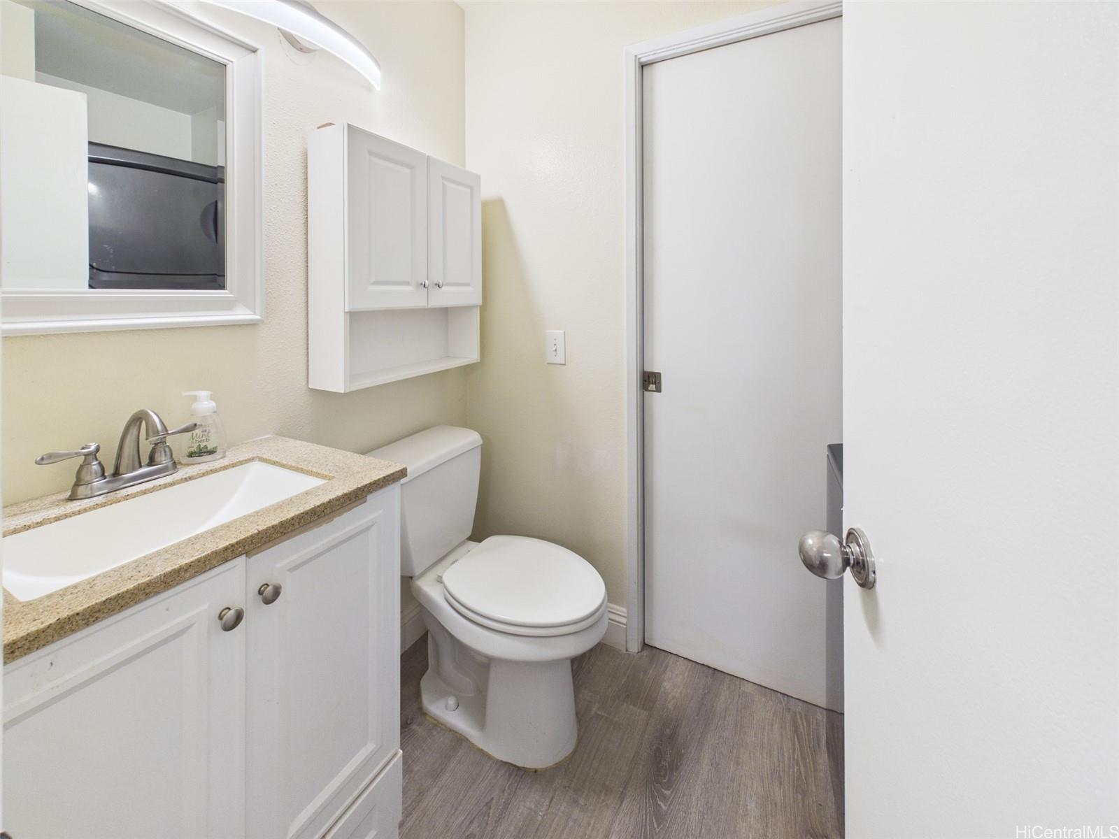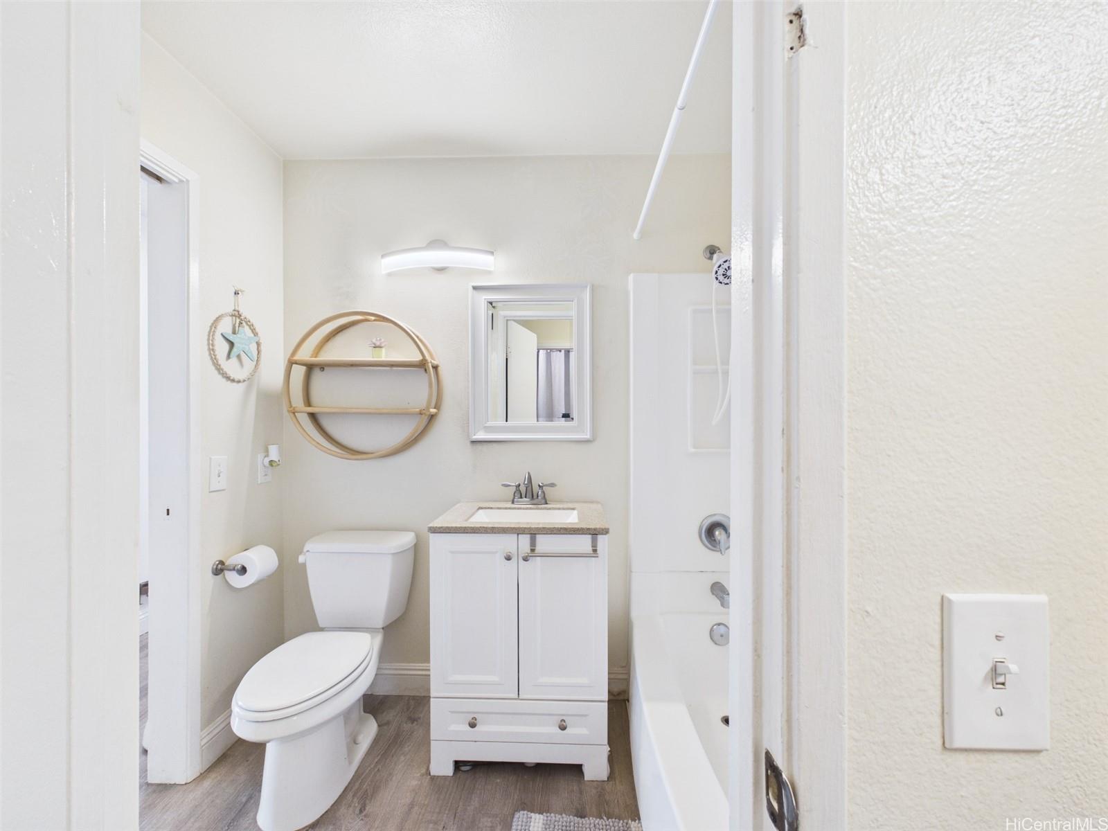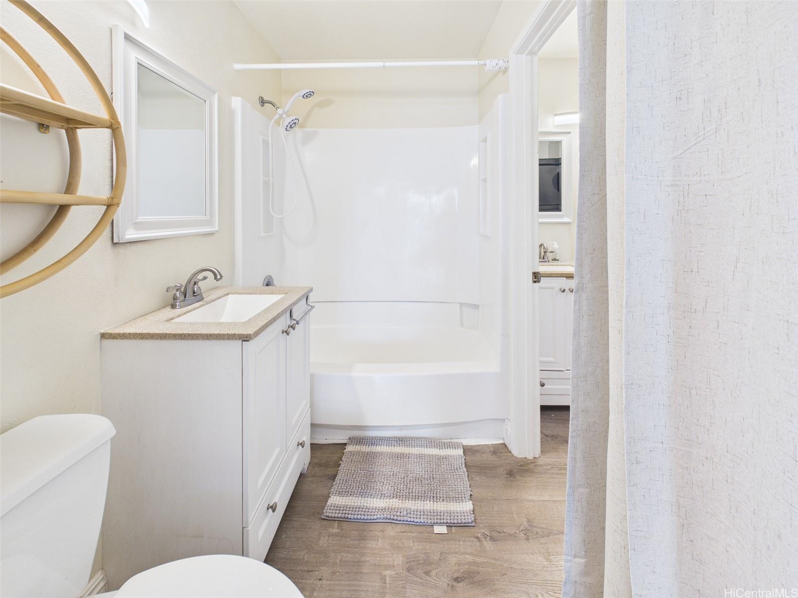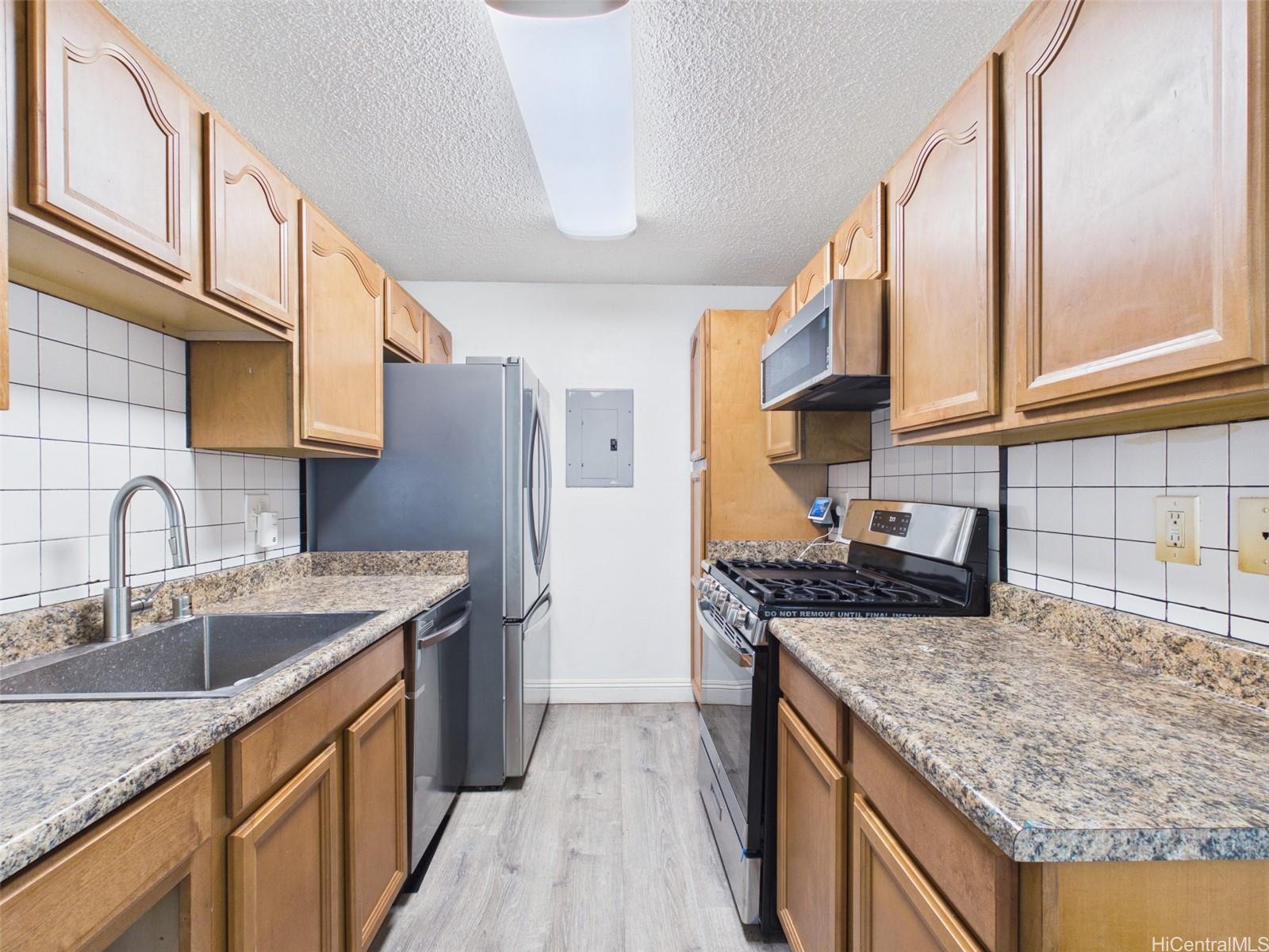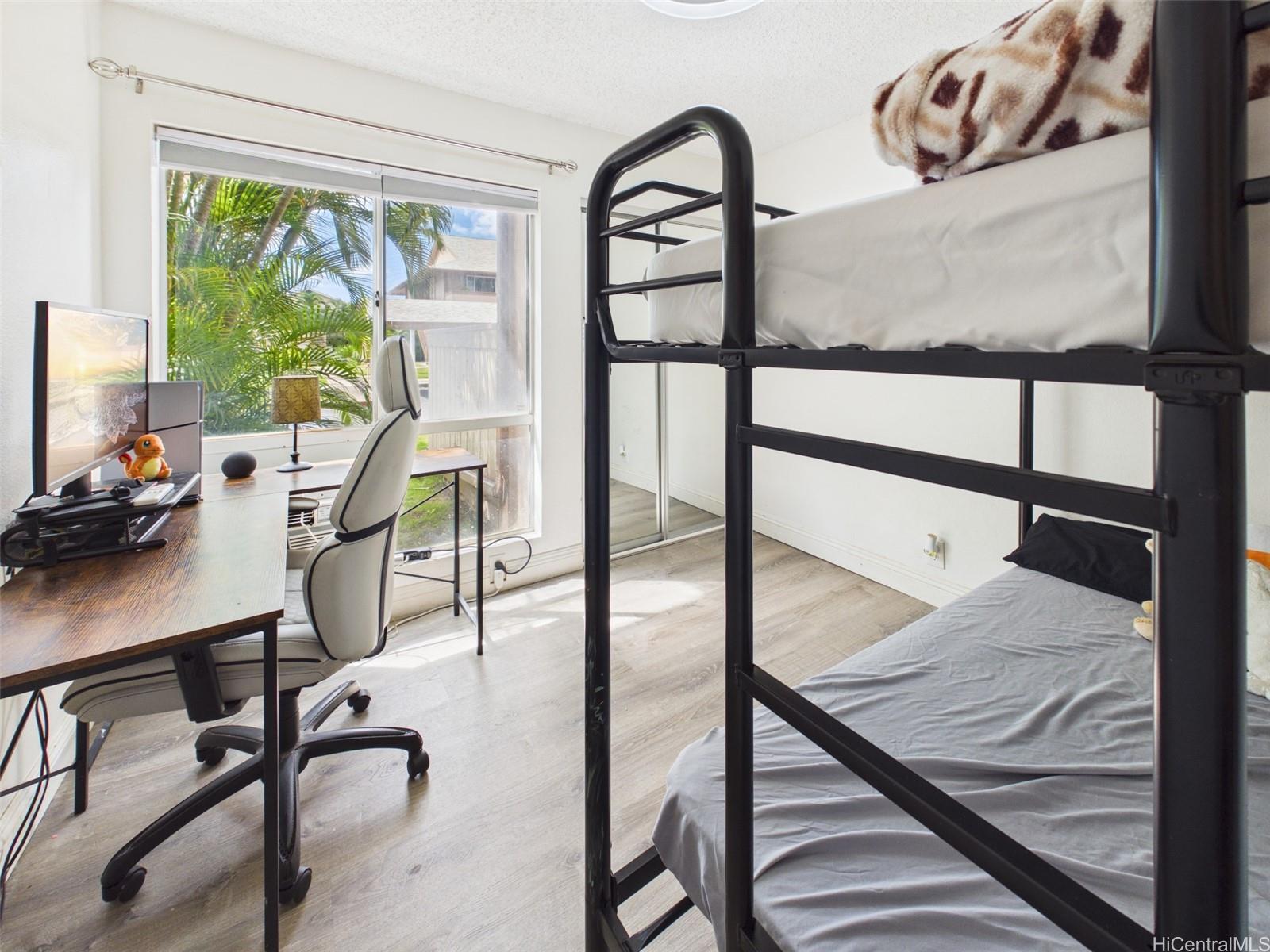 The BEST priced 2 bedroom in Palm Villas isn’t a fixer. It’s move in ready, a ground floor corner unit with two full size parking stalls and new appliances, including a gas range for superior cooking experiences. Tucked into the interior of Palm Villas II, the private concrete patio yard faces away from Mikohu Street with no direct rear neighbors, giving you your own quiet pocket in the complex. The kitchen was brought fully current in April 2026 with a new gas range, slim luxury microwave hood, dishwasher, sink, faucet, and disposal. A full size stainless refrigerator, newer washer and dryer, reglazed bathtub, and upgraded vinyl flooring round out the package. One covered stall and one open stall on site, plus guest parking. Most condo pool areas read like condo pool areas. This one reads private resort: sprawling green lawns, manicured landscaping, and a setup that elevates the entire complex. Ask your favorite Realtor for a copy of the home inspection report. Sale contingent on sellers securing replacement property with a 30 day leaseback after closing. Need to see this for yourself? Check out our Open House this Sunday, May 3rd from 2pm to 5pm.