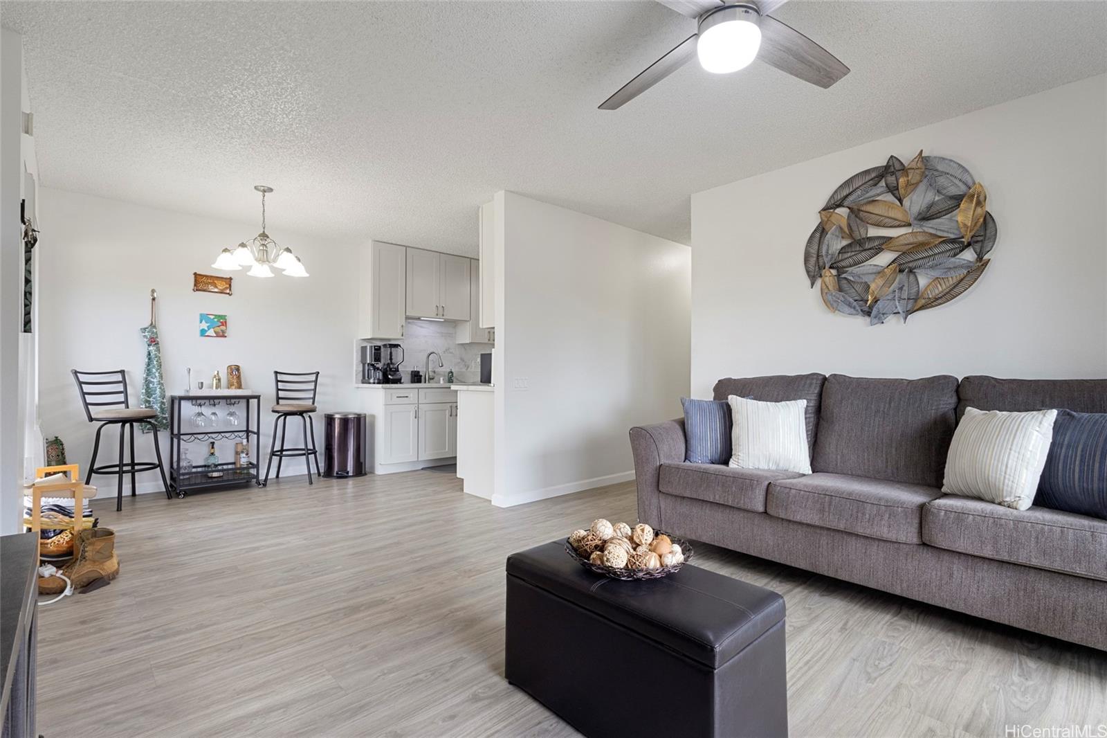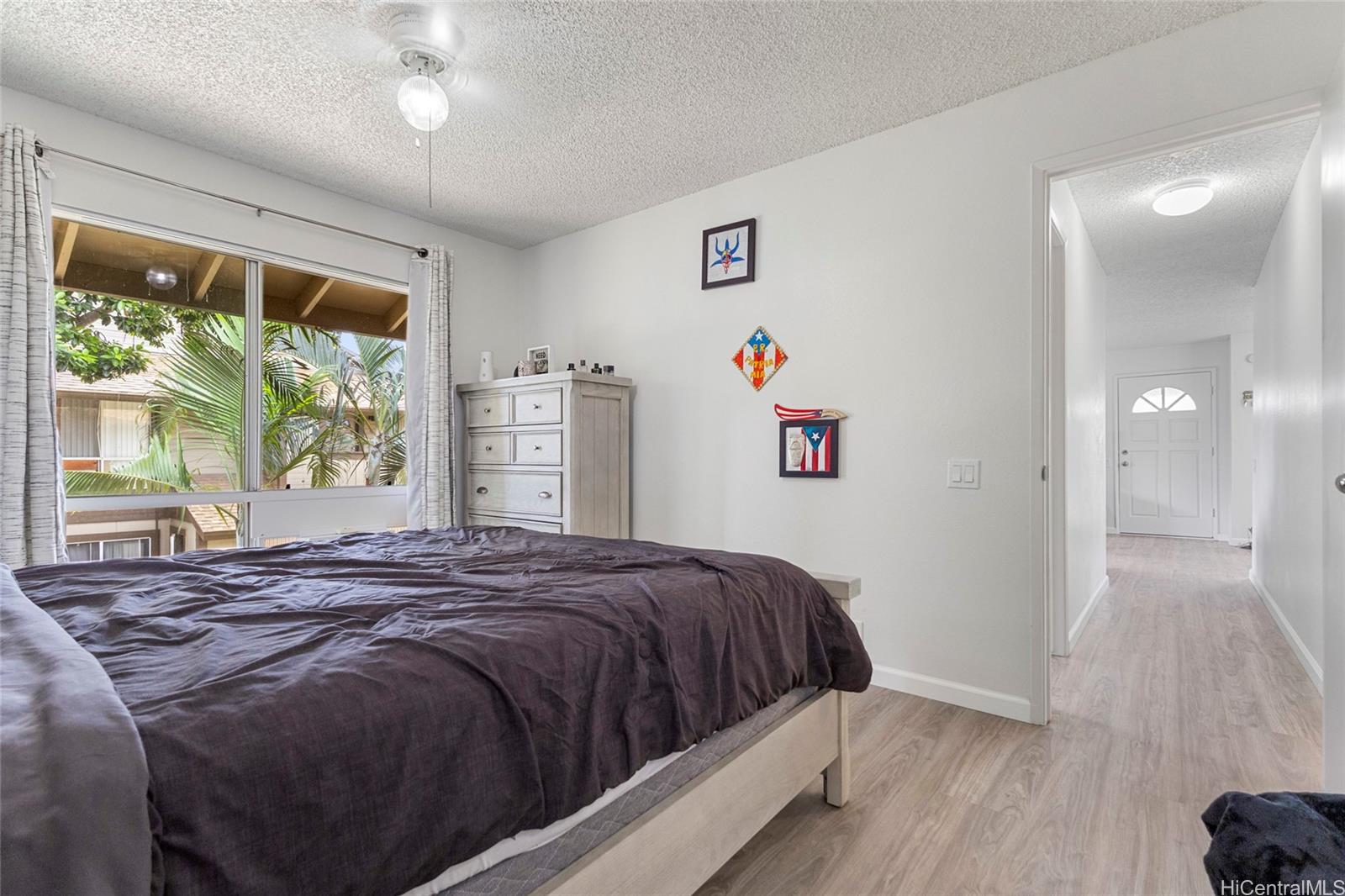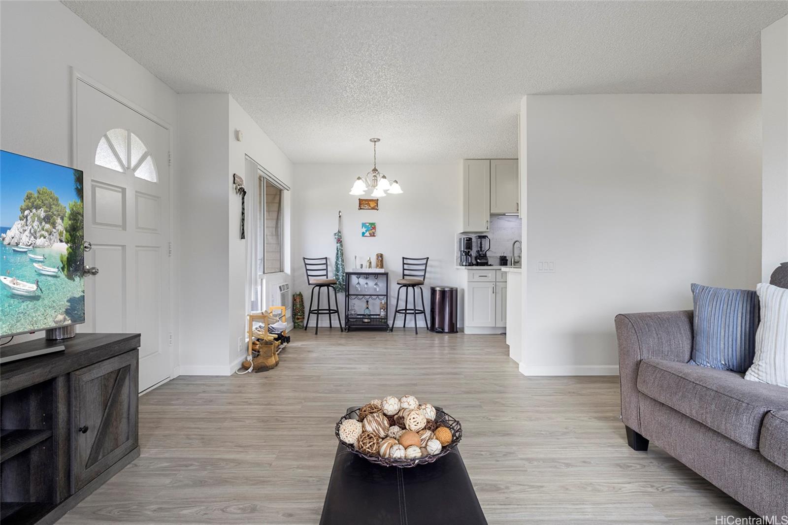 Discover this beautifully renovated 2-bedroom, 1.5-bath corner unit in the desirable Palm Villas. Featuring new luxury vinyl plank flooring, an upgraded kitchen with quartz countertops, and modern bathrooms, this home is move-in ready. Freshly painted walls, window A/Cs, and ceiling fans provide comfort, while the private lanai offers a perfect spot to relax. Enjoy resort-style living with a large pool and BBQ area. Conveniently located in Ewa Beach, you’re near grocery stores, restaurants, and beaches, with easy access to military bases and golf courses. Schedule your tour today—this gem won’t last long!