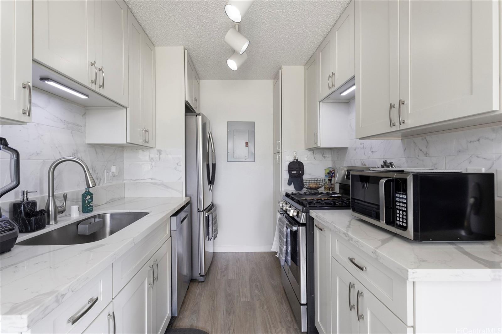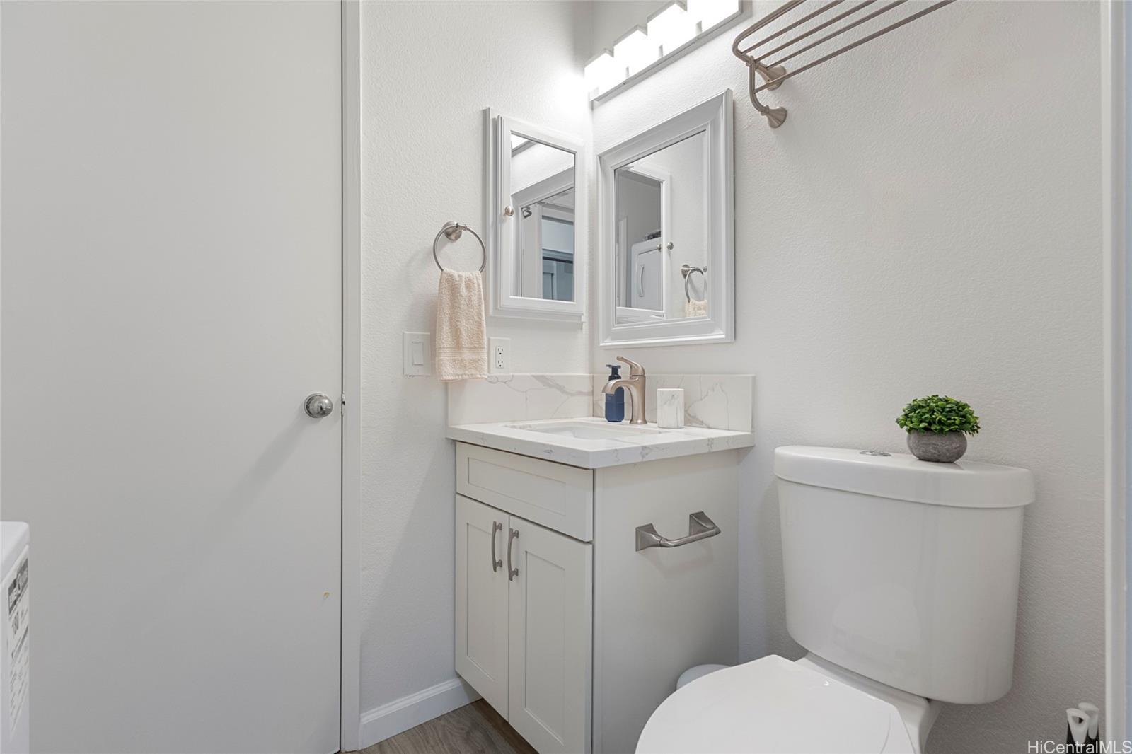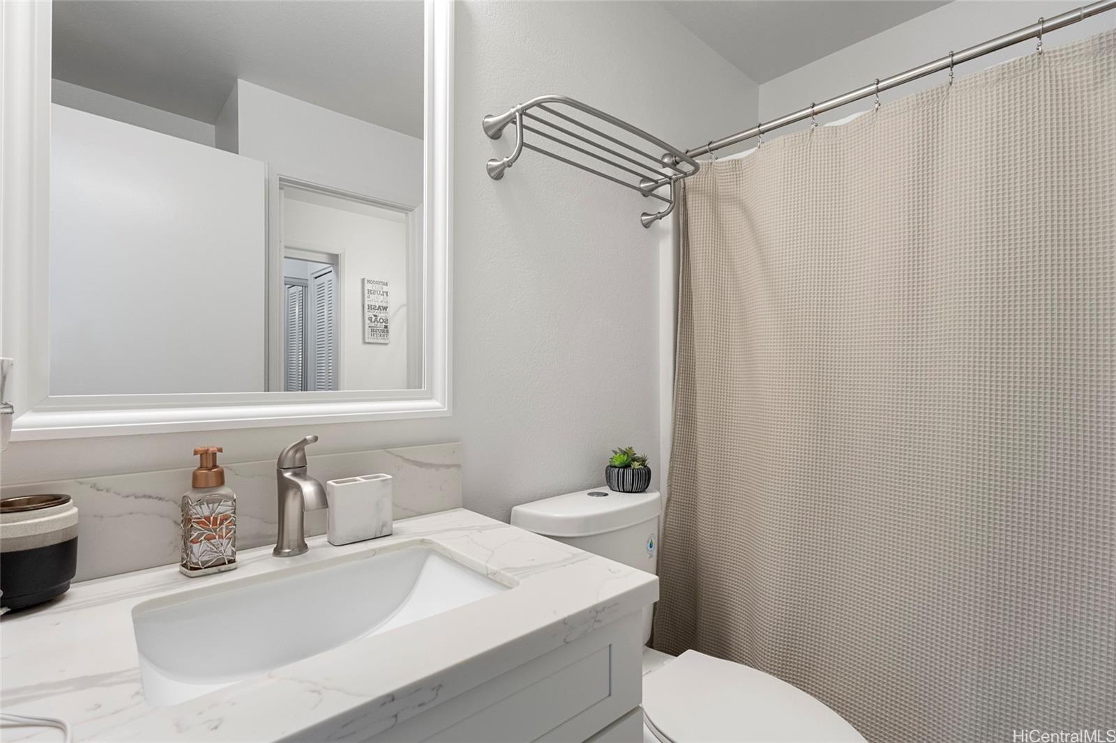 Discover this beautifully renovated 2-bedroom, 1.5-bath corner unit in the desirable Palm Villas. Featuring new luxury vinyl plank flooring, an upgraded kitchen with quartz countertops, and modern bathrooms, this home is move-in ready. Freshly painted walls, window A/Cs, and ceiling fans provide comfort, while the private lanai offers a perfect spot to relax. Enjoy resort-style living with a large pool and BBQ area. Conveniently located in Ewa Beach, you’re near grocery stores, restaurants, and beaches, with easy access to military bases and golf courses. Schedule your tour today—this gem won’t last long!