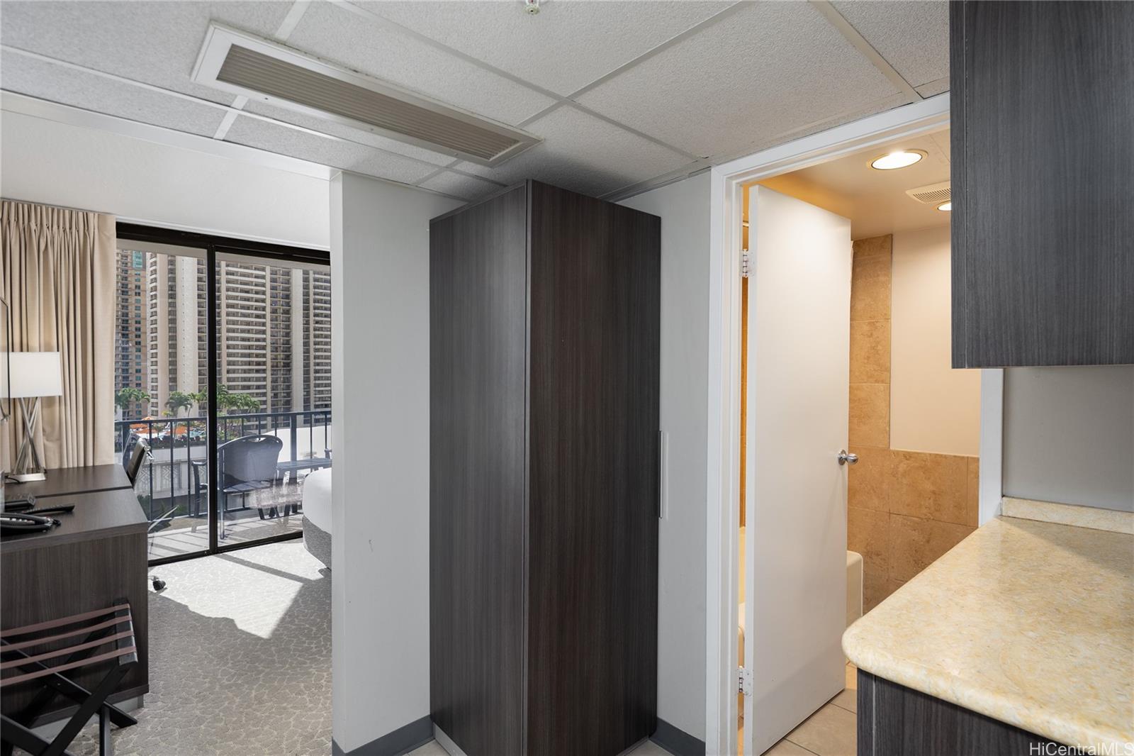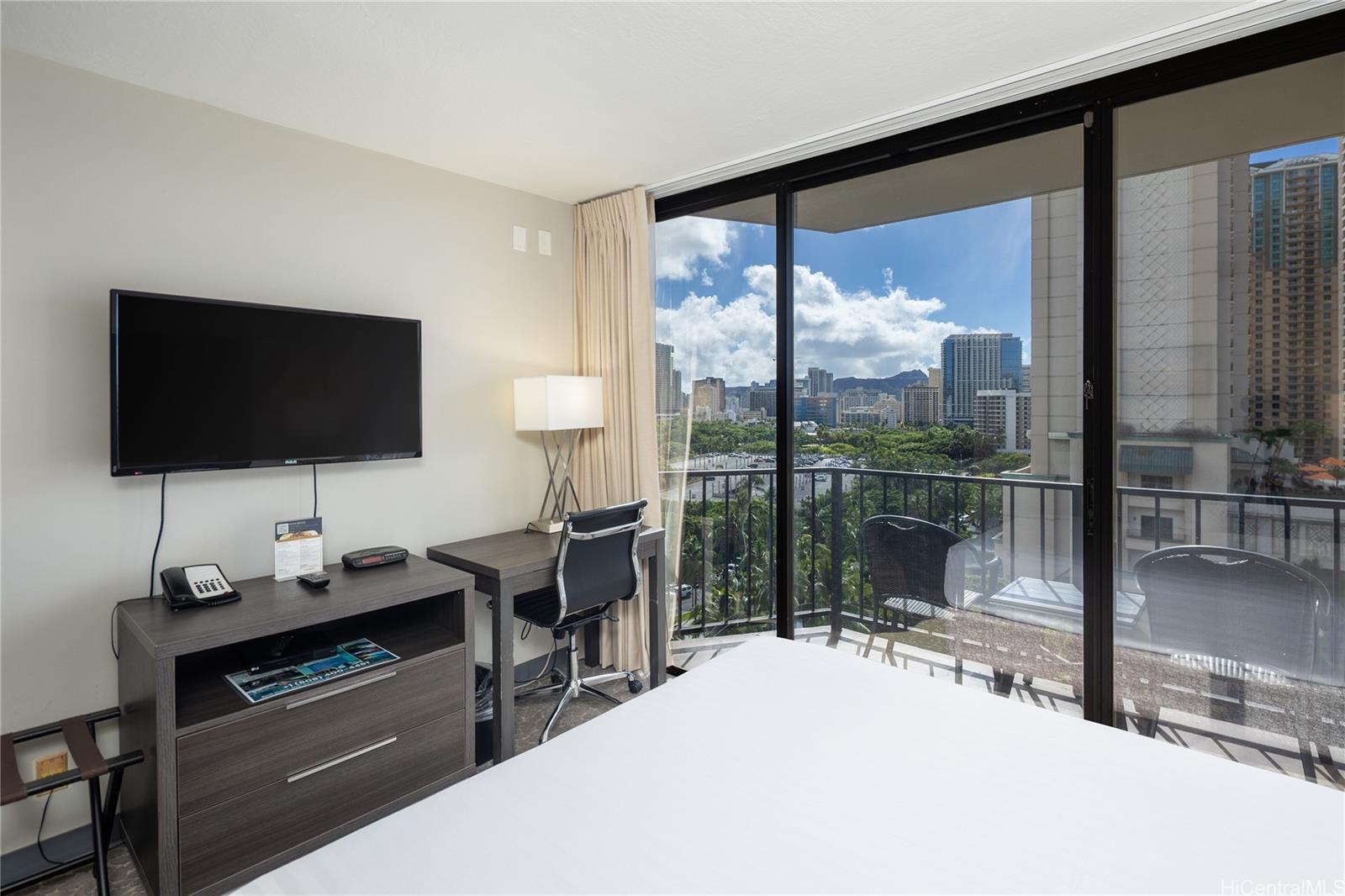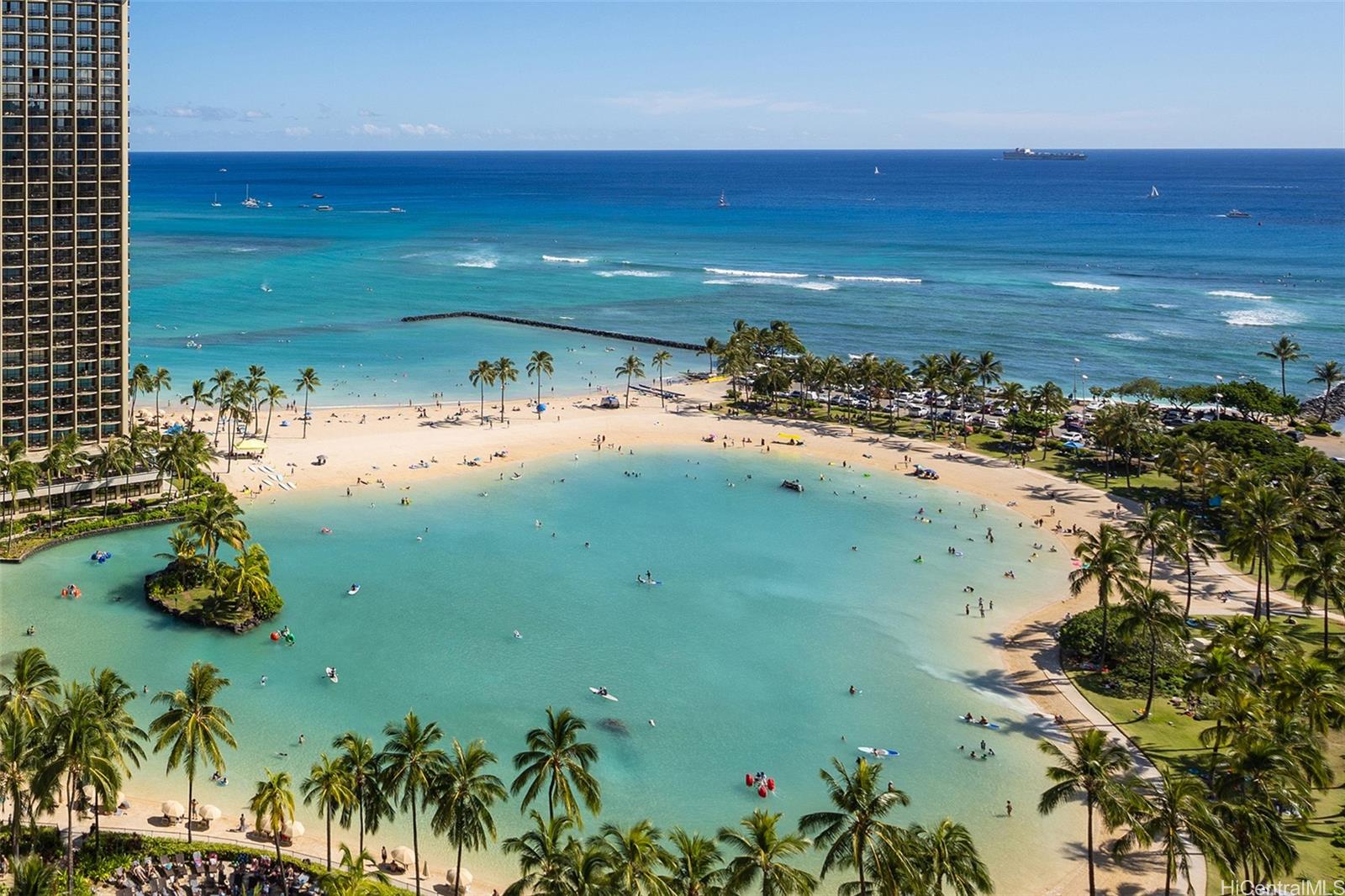 LEGAL DAILY SHORT-TERM RENTAL – This turnkey Palms at Waikiki studio condo offers partial ocean and Diamond Head views, looking over Fort DeRussey. Ideally located just moments from Iconic Waikiki Beach, Hilton Lagoon, Magic Island, top restaurants, vibrant nightlife and Ala Moana Shopping Center. Fully renovated in 2020, this spacious lanai unit provides access to premium amenities, including swimming pool, sundeck, BBQ area, fitness center and laundry facilities. IHOP is on property and there are even vending machines near elevators for those middle of the night snack needs. Whether you’re an investor looking to rent or desiring a second home in Hawaii, this high-floor unit checks the boxes. 906 is currently managed onsite, through Aqua Palms hotel. One of the many advantages of Palms at Waikiki is it offers flexible management options, allowing you to hire the onsite property management team, third-party management, or manage yourself. Currently managed in hotel pool. Experience an investment with flexibility and convenience. This is your opportunity to own prime real estate and a piece of paradise! Live your best dreams!