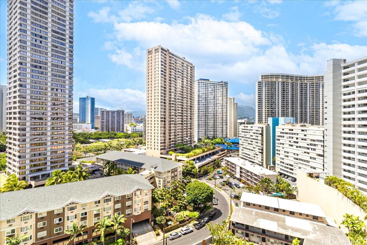 Welcome to Palms at Waikiki – where island elegance meets unbeatable convenience in the vibrant heart of Waikiki! Perched on a high floor with expansive city skyline and mountain views, this beautifully appointed and fully furnished turn-key studio offers an incredible opportunity for legal short-term rental or personal retreat. Unwind on your private lanai surrounded by island charm and enjoy the coveted convenience of ONE RARE DEDICATED OVERSIZED PARKING STALL located on the ideal second level — an exceptional find in Waikiki and ideal for both guests and owners! Enjoy amenities including a sparkling pool, fitness center, BBQ area, laundry facilities, and 24-hour front desk. Just moments from Waikiki Beach, Ala Moana Center, and world-class shopping and dining. Don’t miss your chance to own a piece of paradise with unmatched flexibility, great income potential and prime location!