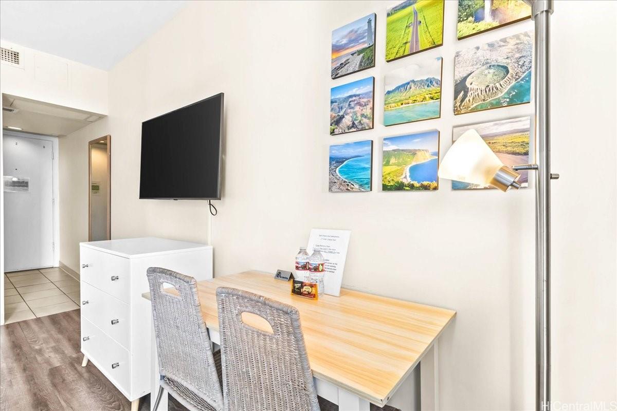 パームス・アット・ワイキキへようこそ – ワイキキの活気ある中心で、アイランドエレガンスと無類の利便性が出会う場所です!高層階に位置し、街のスカイラインと山の景色を一望できるこの美しく整った家具付きのスタジオは、合法的な短期レンタルや個人的な隠れ家としてご利用いただけます。 島の魅力に囲まれたプライベートなラナイでくつろぎ、ワイキキでは珍しい2階に位置する1つの専用大型駐車場という利便性をお楽しみください!きらめくプール、フィットネスセンター、バーベキューエリア、ランドリー施設、24時間フロントデスクなどのアメニティをお楽しみください。 ワイキキビーチ、アラモアナ・センター、ワールドクラスのショッピングとダイニングからすぐ。 比類のない柔軟性、大きな収入の可能性、そして一等地にある楽園の一部を所有するチャンスをお見逃しなく!