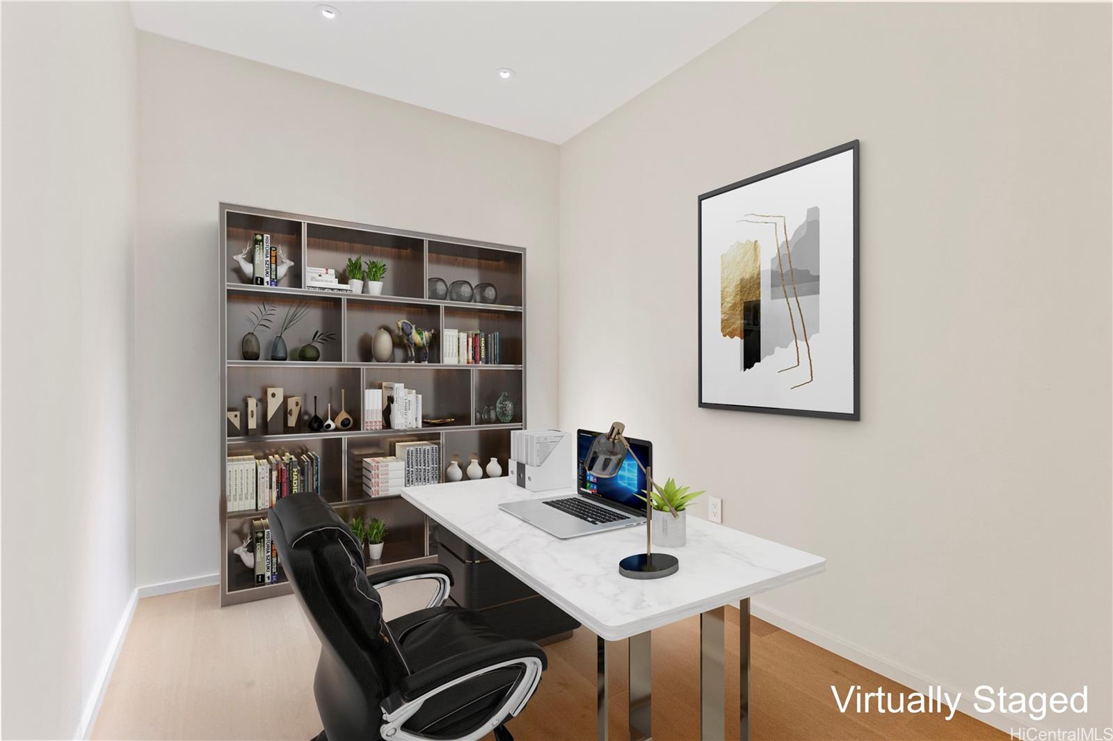 Experience the unparalleled charm of this exceptional 2-bedroom, 2-bath residence at Park Lane Ala Moana, setting itself apart from the rest. Spanning 1,636 sq. ft., this home features an expansive 633 sq. ft. outdoor lanai—one of the largest in the building—complete with a private hot tub and ample space for entertaining or relaxing.Soaring 10-foot ceilings create a bright and airy atmosphere, the chef-inspired kitchen boasts premium Wolf appliances and a Subzero refrigerator, ideal for culinary enthusiasts. The spacious walk-in laundry room offers additional pantry space alongside your washer and dryer, ensuring seamless living.Whether hosting gatherings or enjoying tranquil moments, your lanai, equipped with a Wolf BBQ and fridge, is perfect for effortless entertaining. The primary bedroom includes a generous walk-in closet, complemented by an additional den that provides flexible living options tailored to your lifestyle. Discover the perfect blend of leisure and sophistication at Park Lane Ala Moana—where comfort meets style.