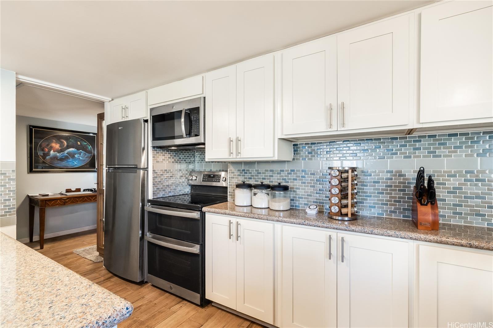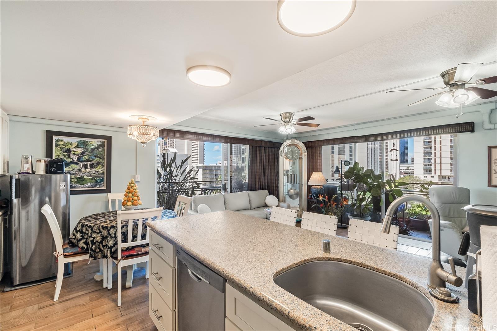 Welcome to your beautifully upgraded oasis at Parkview, located on a quiet cul-de-sac on the highly desirable East edge of Waikiki! This spacious 2-bedroom, 2-bathroom unit was remodeled in 2022 and boasts a stunning array of recent designer updates. Entertaining is a dream in the upgraded kitchen, featuring a gorgeous new marble tile wall around the island, chic new lighting, a stunning chandelier, and a brand-new stove top double oven installed in 2024. Relax in the refreshed bathrooms showcasing elegant marble tile accents, as well as brand-new shower floors and glass doors completed in December 2025.Stay cool year-round with split A/C, and enjoy the convenience of your own washer and dryer right in the unit. The building offers great amenities including an assigned covered parking stall, an extra storage locker, and a community pool. Best of all, you are just moments away from the Honolulu Zoo, Waikiki Beach, amazing restaurants, Kapiolani Park, and Diamond Head! Turnkey and ready to call home.