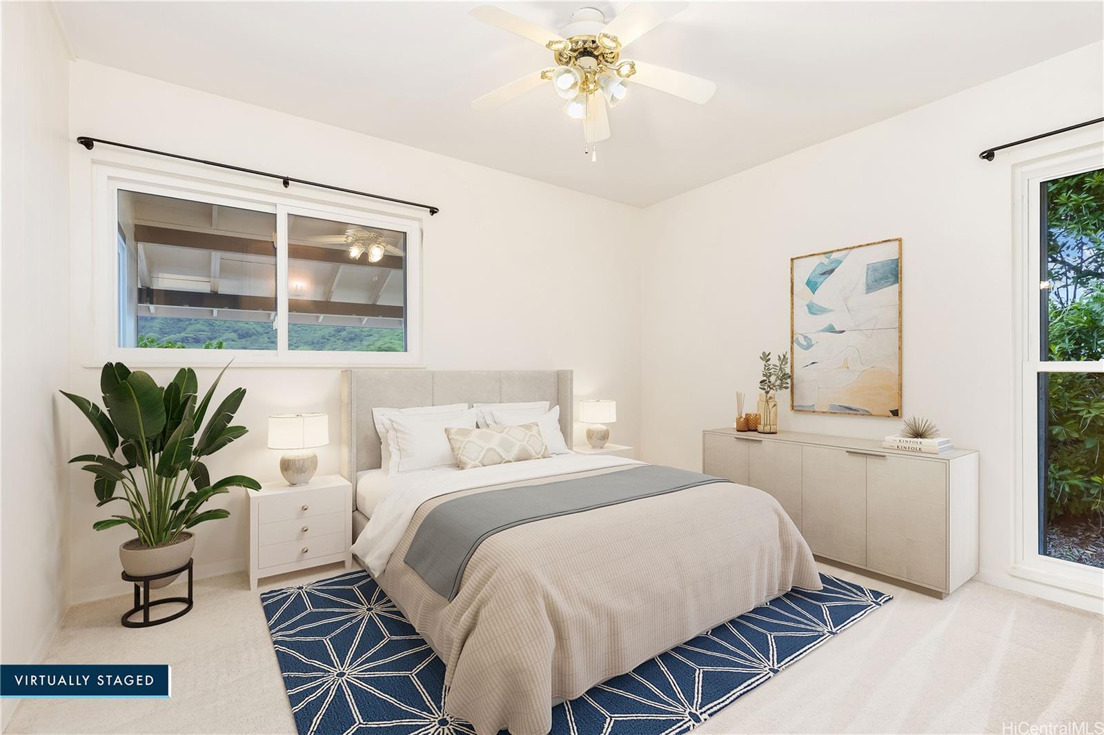 カネオヘの人気エリア、パークウェイ・フェーズC-1にある、美しく改装された3ベッドルーム・2バスルームのタウンハウスへようこそ。 この角部屋のユニットは、むき出しの梁が印象的な高いアーチ型の天井が特徴で、自然光がたっぷりと差し込む開放感あふれる居住空間となっています。 入念に改装されたキッチンには、清潔感のある白い上部キャビネット、鮮やかなブルーの下部キャビネット、クォーツ製のカウンタートップ、ステンレス製の家電、そしてダイニングやリビングエリアへとシームレスに溶け込むモダンな仕上げが施されており、日常の生活にも来客をもてなす際にも最適です。 広々とした屋根付きラナイで、屋内と屋外の両方の生活をお楽しみください。くつろいだり、ゲストをもてなしたりするのに最適で、ウィンドワードの穏やかな景色を満喫できます。 主寝室に設置されたスプリット型エアコンが、一年中快適な住環境を提供します。 この住宅には専用駐車場が2台分(うち1台は屋根付き)あり、さらに来客用駐車場や路上駐車も利用可能です。 入居者の皆様は、プール、バスケットボールコート、テニスコート、フィットネスセンター、パーティー・会議室を備えた専用レクリエーションセンターをご利用いただけます。 カネオヘの中心部に位置し、快適さ、スタイリッシュさ、そして利便性を兼ね備えた、すぐに住み始められる物件です。 一部の写真は、撮影効果を施したり、加工したりしています。 初回内見会:日曜日 午後1時~4時。