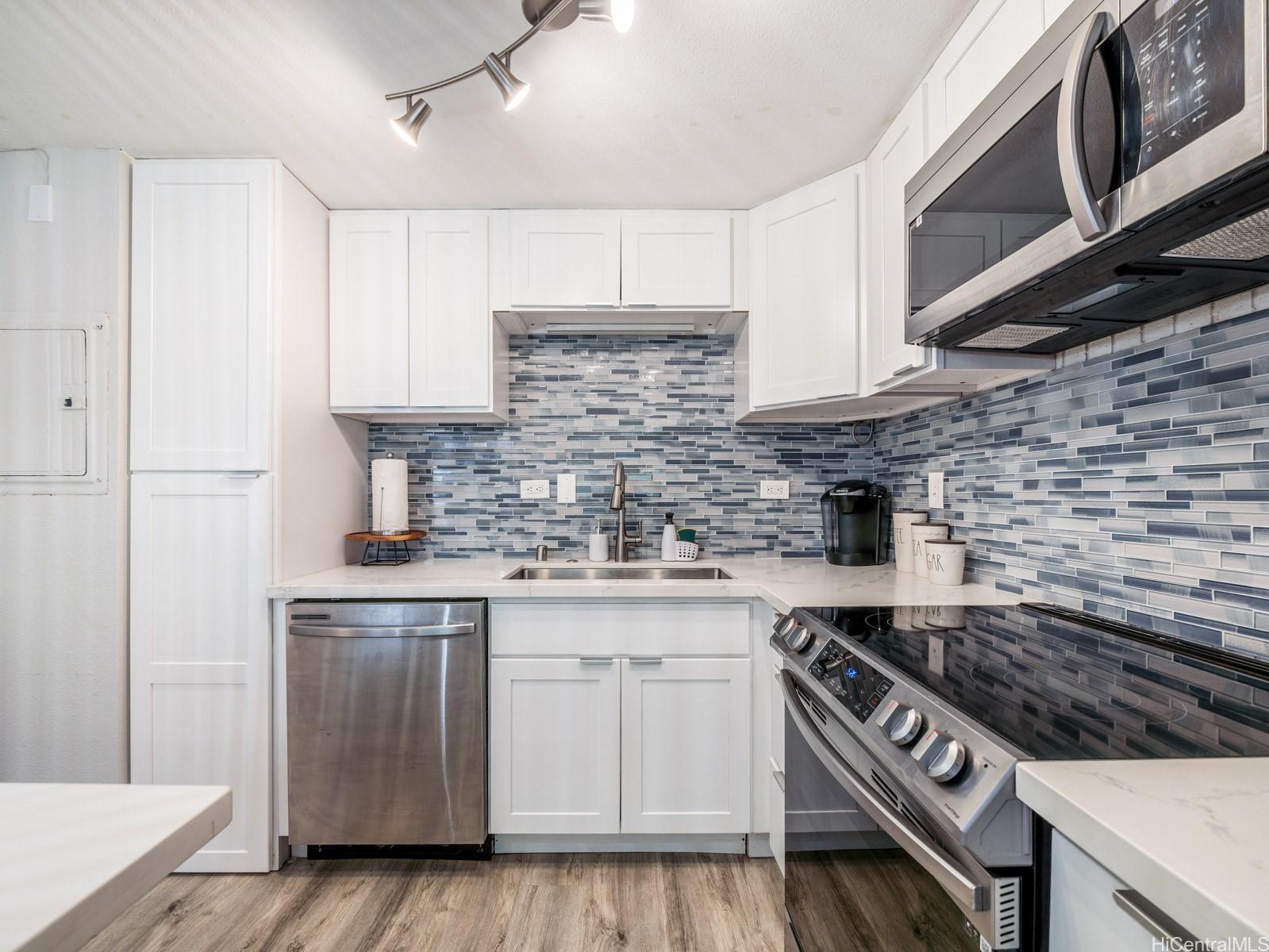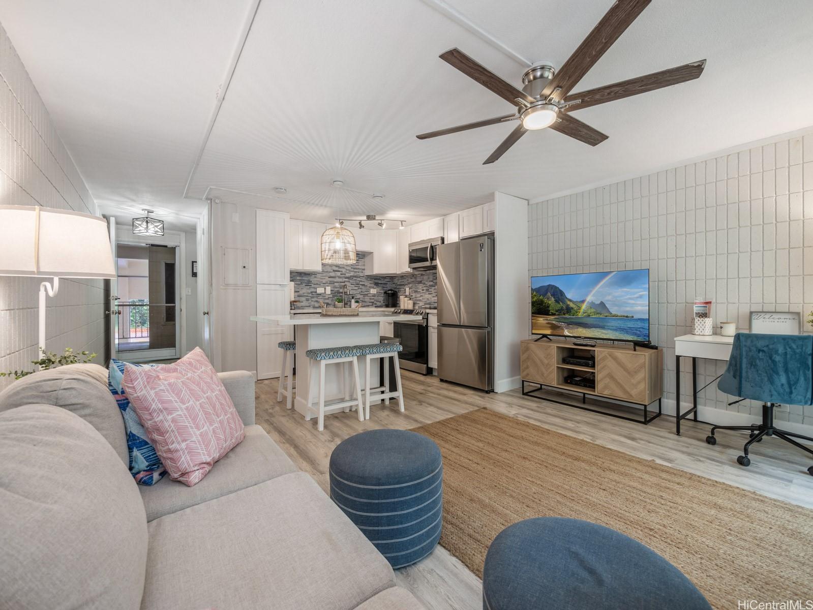 PRICED TO SELL! Own your piece of paradise at this ocean front complex on Oahu’s Windward Coast. Fully renovated from floor to ceiling with quartz counters, soft close cabinets, new LVP flooring, fixtures and equipped with a full size dishwasher and interior washer & dryer. The cozy private home can also come fully furnished, you just need to bring a toothbrush! The best part is the sun-soaked tropical location that will ensure a lifestyle balance with; a gym looking over the ocean, beachfront pool, BBQ area to cook your dinner or have friends over, relax or look for shells in the sandy beach front, snorkel & paddle board in your backyard. It’s just a short drive to Kahana Bay, a sought after area for camping, fishing, boat launching and more. Plus you have the Crouching Lion Restaurant and bar that recently re-opened and cafe. This secured building recently went through structural and cosmetic upgrades and renovations, has 100% hurricane insurance and is VA approved.