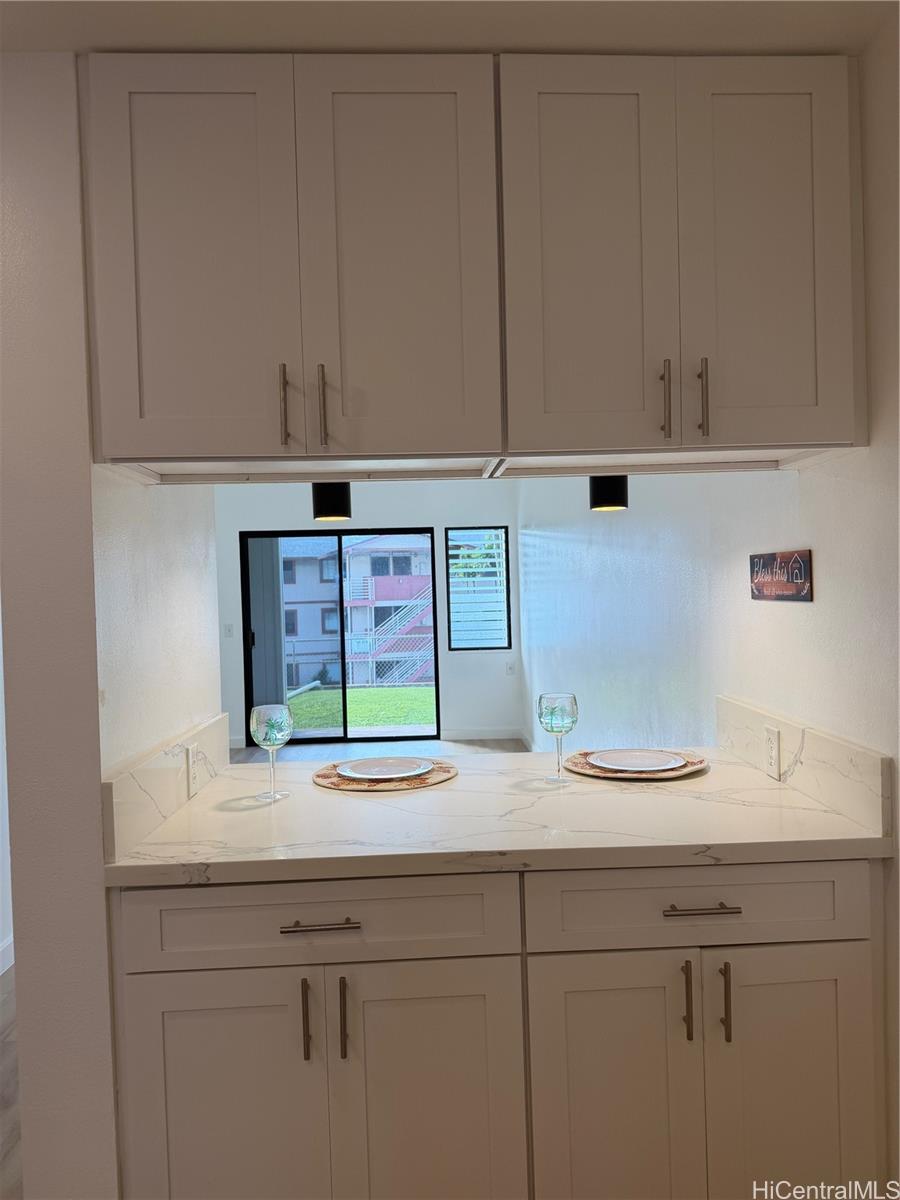Welcome to Pearl Horizons 2, a desirable ground floor unit located in the heart of Aiea. Unit features upgraded 2 bedrooms, 1.5 bathrooms and 2 assigned parking stalls. Kitchen is totally beautifully renovated with quartz countertop, new kitchen cabinets, and stainless steel appliances. All bathrooms are modernized and features a sleek and elegant design. Washer and dryer are also included. Pearl Horizons complex features resort style amenities including swimming pool, sauna, bbq area and a clubhouse. Centrally located near shopping mall, schools and freeway access. This property provides balance of island living and urban convenience.This is a Turn-key and Pet Friendly ! Schedule your showing now !