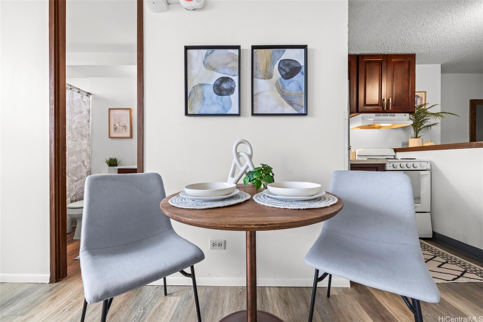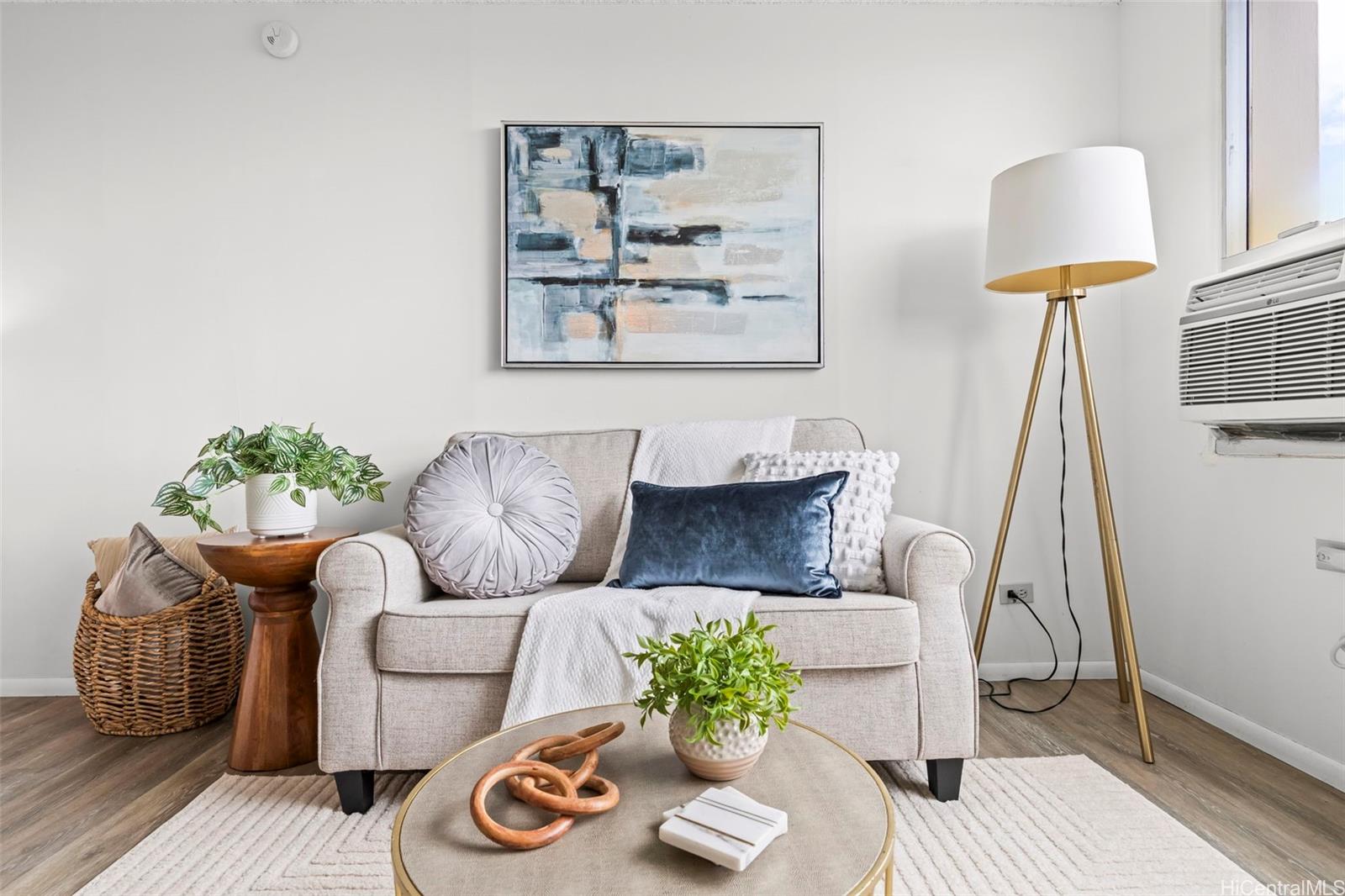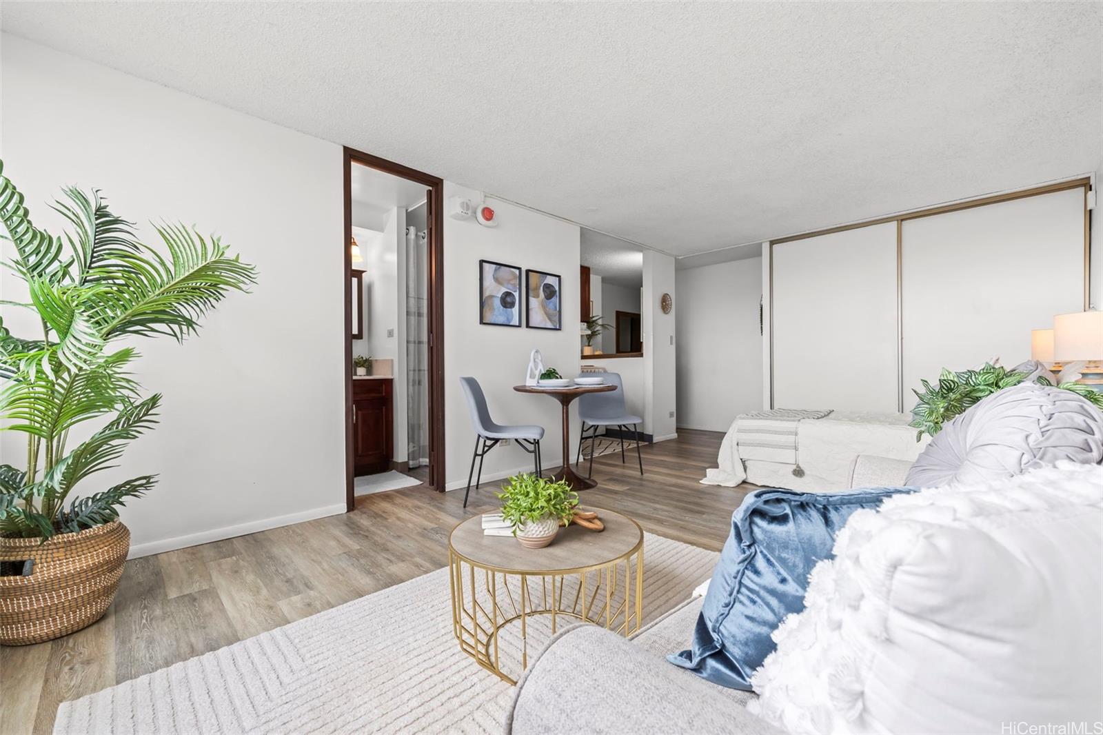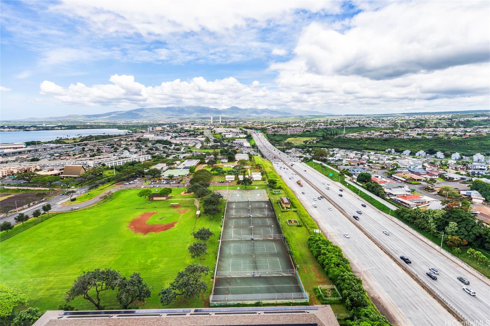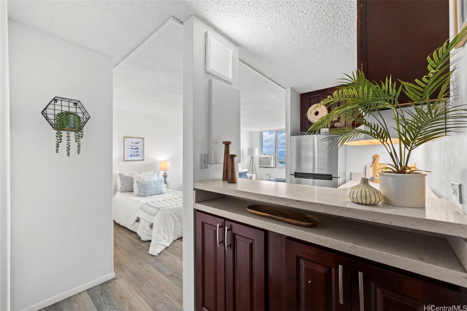 Desirable studio unit in Pearlridge Square featuring quartz countertops, wood cabinetry, vinyl waterproof plank flooring, and a full kitchen. Bathroom includes porcelain tub surrounds. Stay cool with a 12,000 BTU AC and enjoy nice views. Unit does not currently have a washer and dryer, but you can install your own or use the building’s safe, clean community laundry. Secure garage parking and well-managed building with excellent amenities including pool, sauna, fitness center, tennis courts, recreation area, library, on-site resident manager, and ample guest parking. Ideally located one block from Pearlridge Center and near Pearlridge Skyline Station, Pali Momi Medical Center, Pearl Country Club, Pearl Harbor, Hickam Air Force Base, and Daniel K. Inouye International Airport with easy H-1 access. Great opportunity for first-time buyers or investors!
