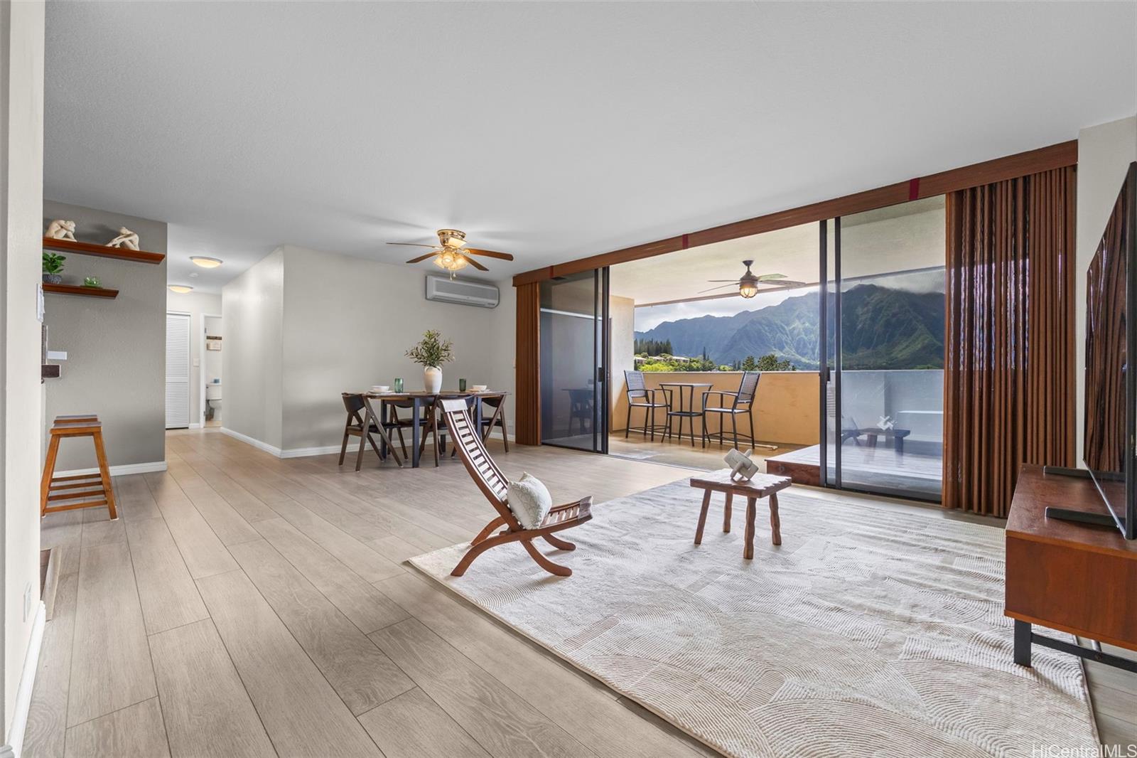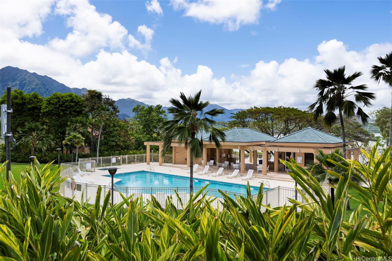 Wake up on the bay in this 3-bed, 2-bath, 2 parking townhome in Poha Kea Point, offering expansive, unobstructed views of Kaneohe Bay and the Ko‘olau mountains from the primary bedroom and lanai. This rare, single-level “Rosewood” model (the largest in the community) was designed with comfort, elegance, and modern functionality in mind. The open-concept layout flows to a covered lanai with a front-row seat to the bay’s ever-changing hues. Host sunset dinners on your lanai, where the Ko‘olau ridgeline becomes a living painting and the bay glows in ever-changing colors. Modern upgrades and split A/C complete this unit’s charm.Enjoy access to three pools, three hot tubs, pickleball and tennis courts, a sauna, BBQs, acres of landscaped paths, tropical flora, and 24-hour security. Enjoy the luxury of expansive green space, where you and your pet can roam freely and safely amid curated tropical beauty. Minutes to H-3, Likelike, Pali Hwy; Windward Mall, MCBH, Kailua Town, and He‘eia Harbor. This is the perfect unit for anyone wishing to enjoy the best the Windward side has to offer.