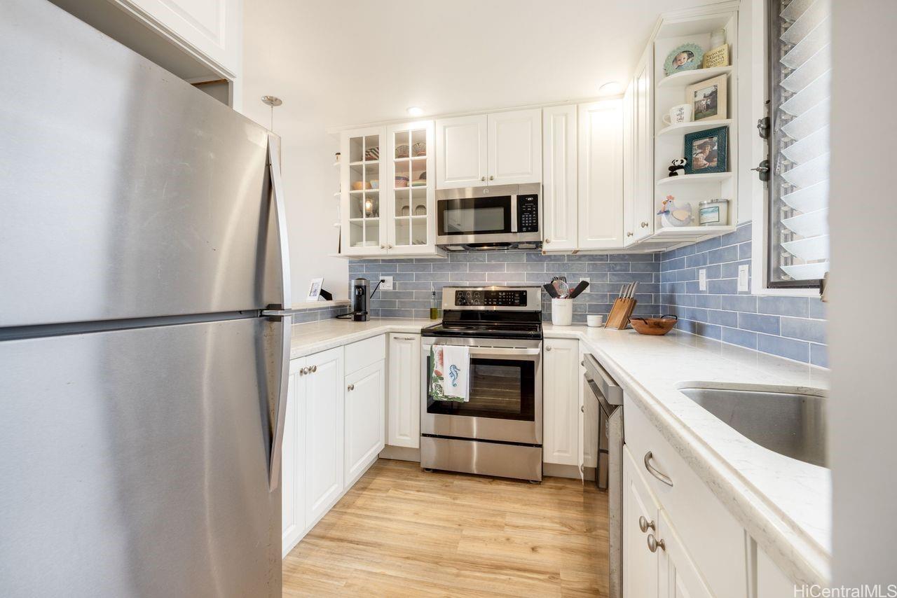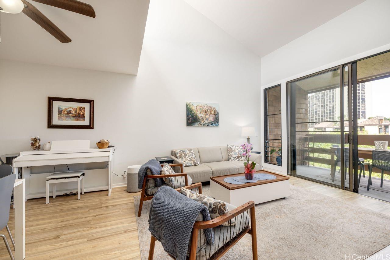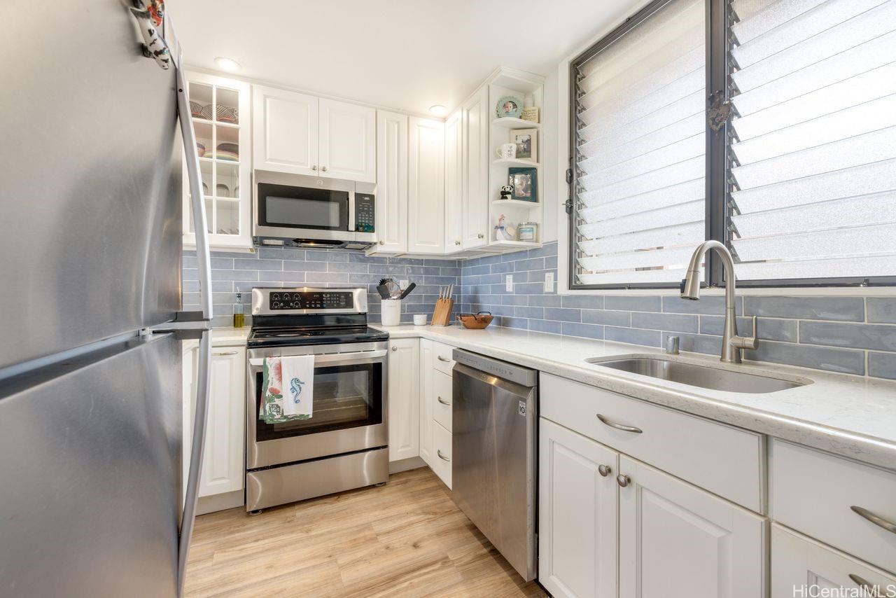 ポインシアナ・マナーへようこそ。4階にあるこの最高級の住居では、快適さと利便性が融合しています。 開放感あふれるリビングエリアは、アーチ型の天井と窓を備えており、豊かな自然光と心地よい通風を取り込み、明るく居心地の良い空間を作り出しています。 プライベートなラナイから、木々の梢の静かな景色をお楽しみください。 この入念に設計された2ベッドルーム・2バスルームの住宅には、改装済みのキッチンとバスルーム、全室に敷かれた高級ビニール床材、そして両バスルームのタイル張りの床が備わっています。 2つ目の寝室には、組み込み式のマーフィーベッドが備わっており、使い勝手がさらに良くなっています。 その他の特長として、駐車場内に屋根付きの駐車スペースが2台分と、便利な場所に設置された収納スペースがあります。 共用施設には、プール、バーベキューエリア、エレベーター3基、クラブハウス、および常駐の管理人が含まれます。 有名なカイルアのビーチやショッピング、レストラン、アウトドアアクティビティまで、すべて徒歩圏内――これこそが、島暮らしの醍醐味です!